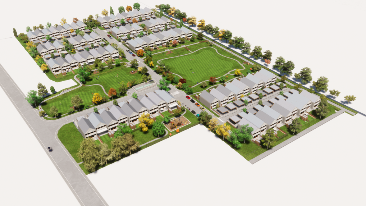 The neighbourhood will have landscaped common areas for socializing and safe playground for children. Parking spaces will be provided, and the neighbourhood will have no traffic.
