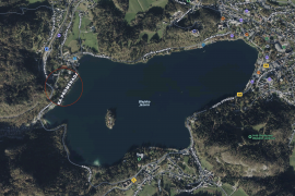 Edinstveno zazidljivo zemljišče v mirnem okolju s pogledom na jezero in otok. Zemljišče ima že izdelan in odobren projekt ter gradbeno dovoljenje za gradnjo vile.
