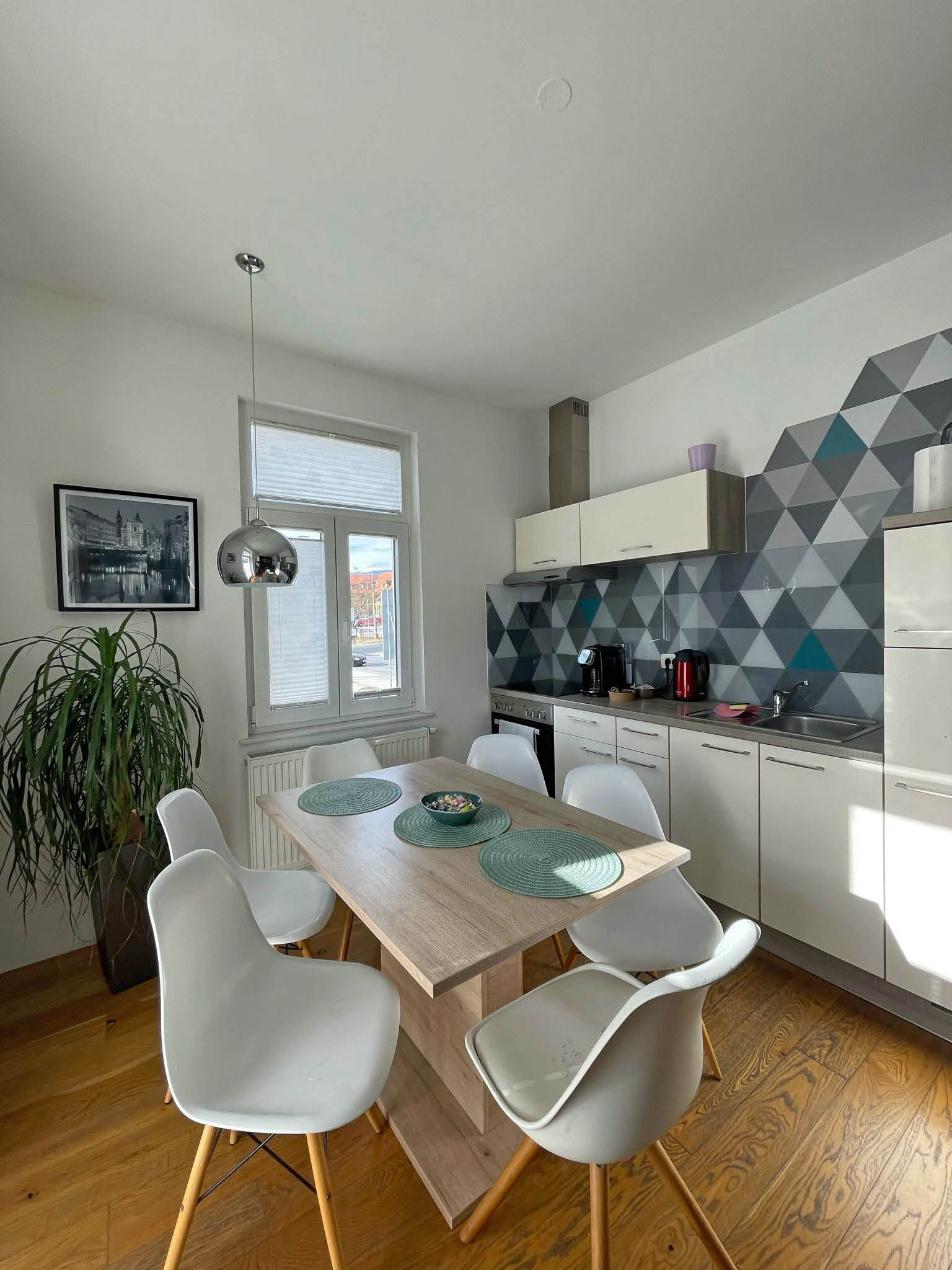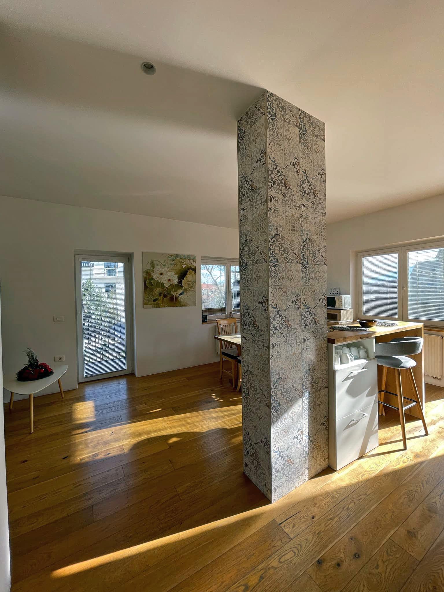 - Spacious, bright open-plan living area with kitchen, dining space, and living room