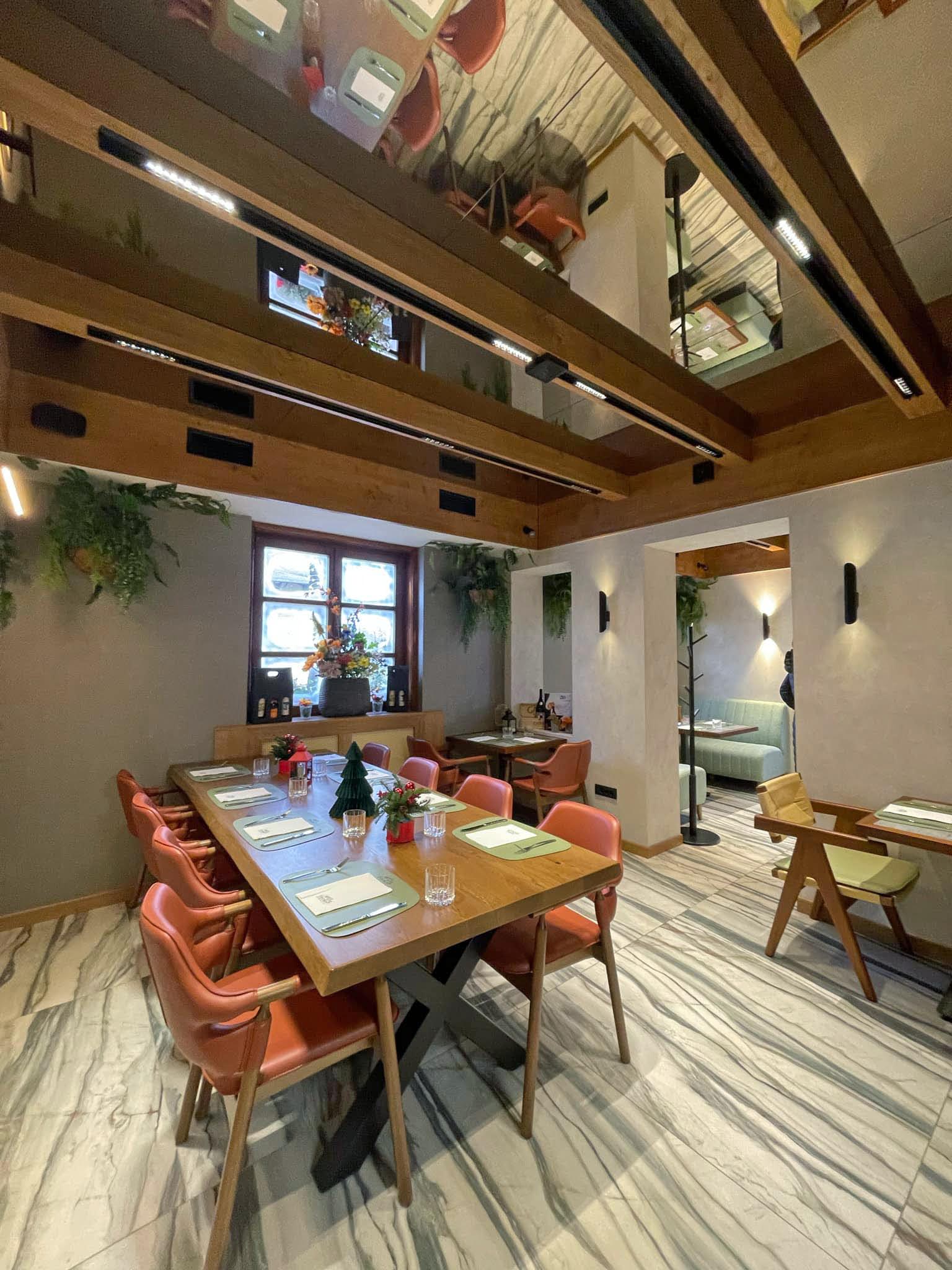 The restaurant underwent a complete renovation in 2024, with special emphasis on premium craftsmanship and design excellence. Original windows were carefully restored, while the authentic stone flooring preserves the building’s historic character and prestige. Guest parking is provided next to the property.