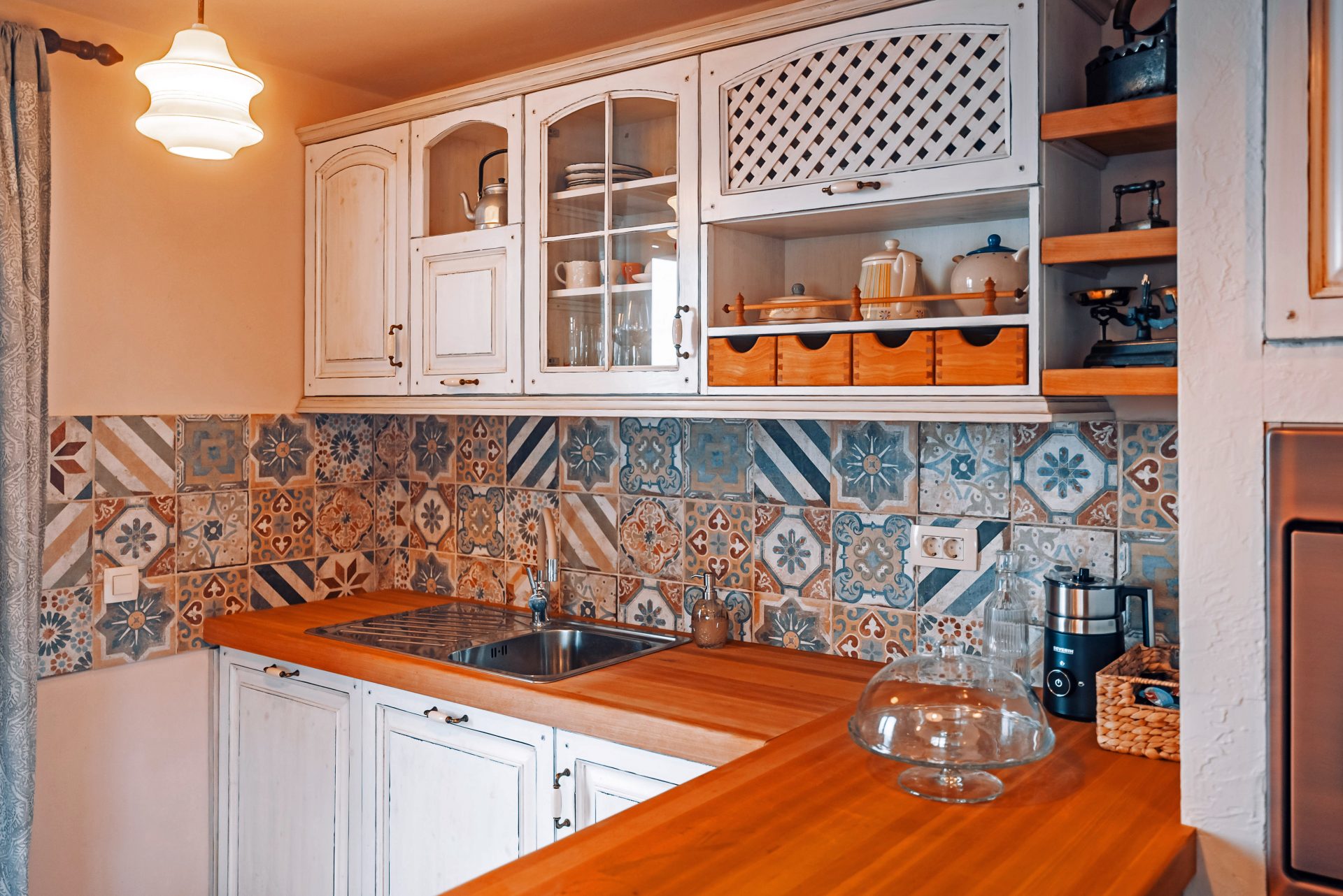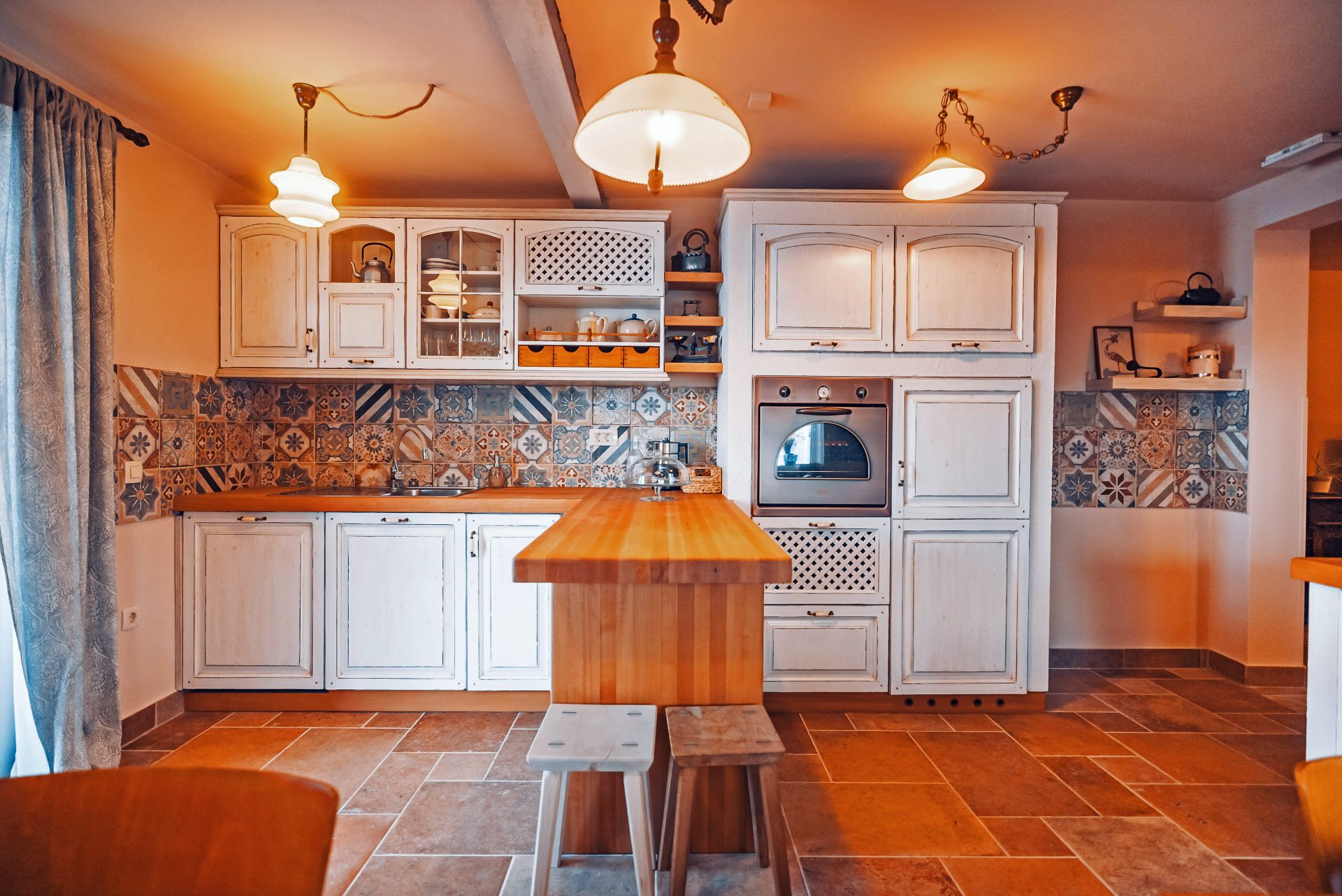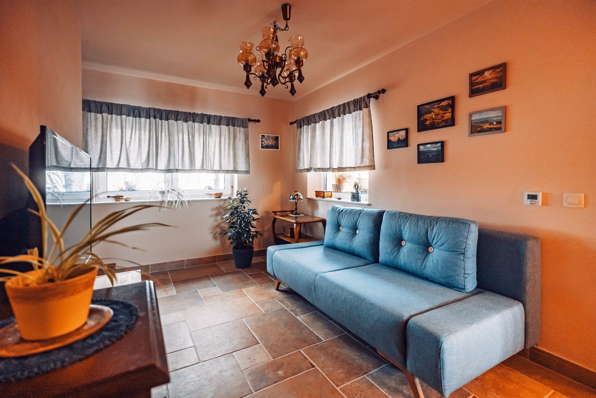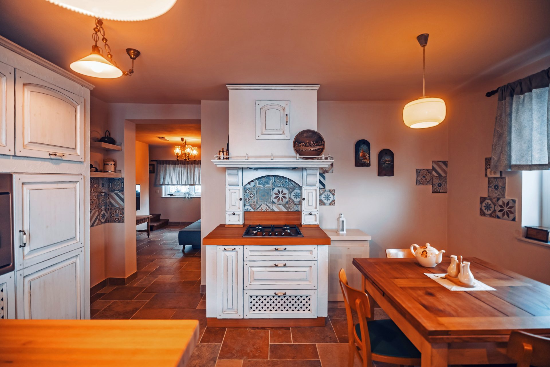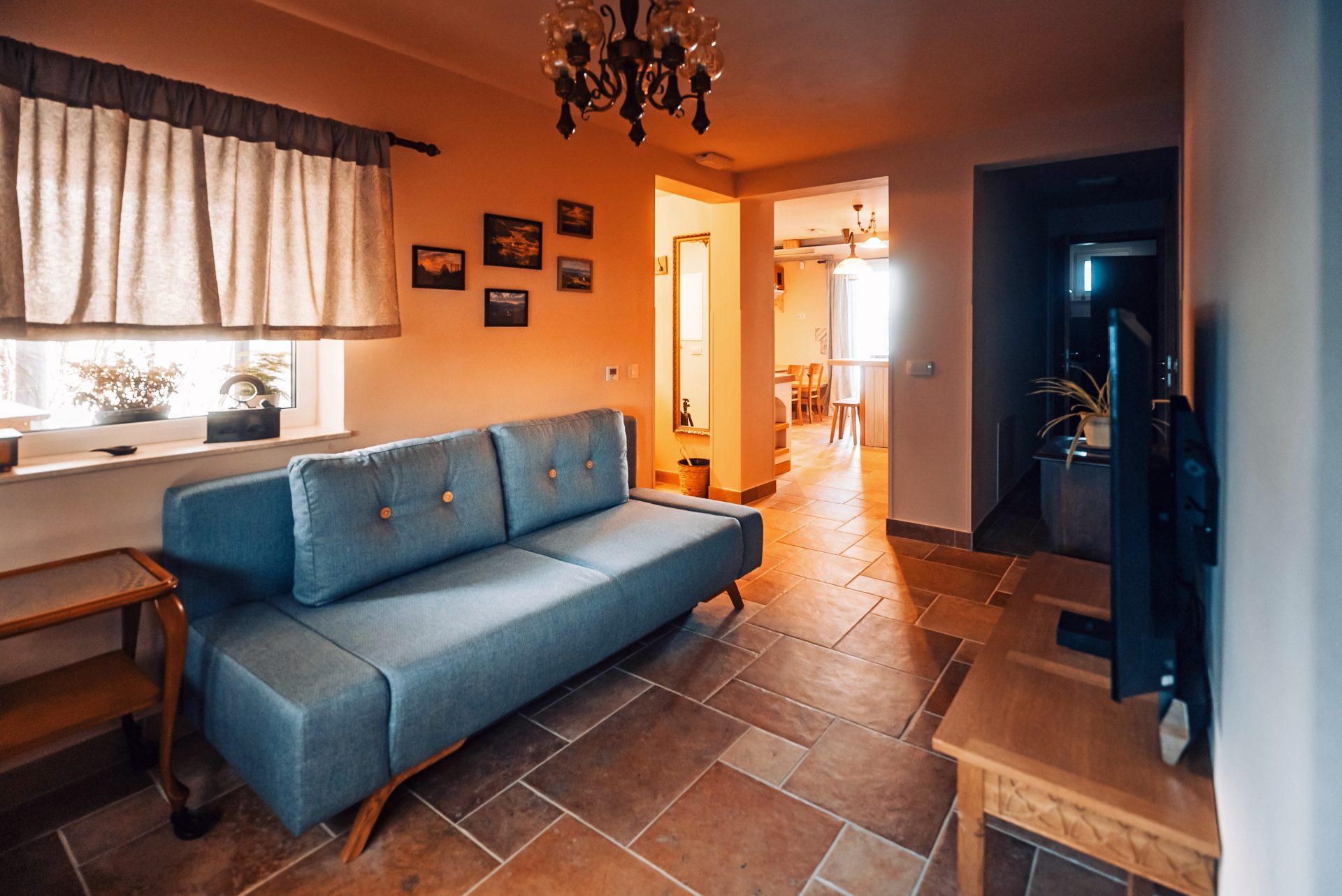 The third one boasts one comfortable bed and warm furnishings made of natural materials. The finishing touch is provided by the restored old pattern, which conjures up a pleasant homely atmosphere and the feeling.