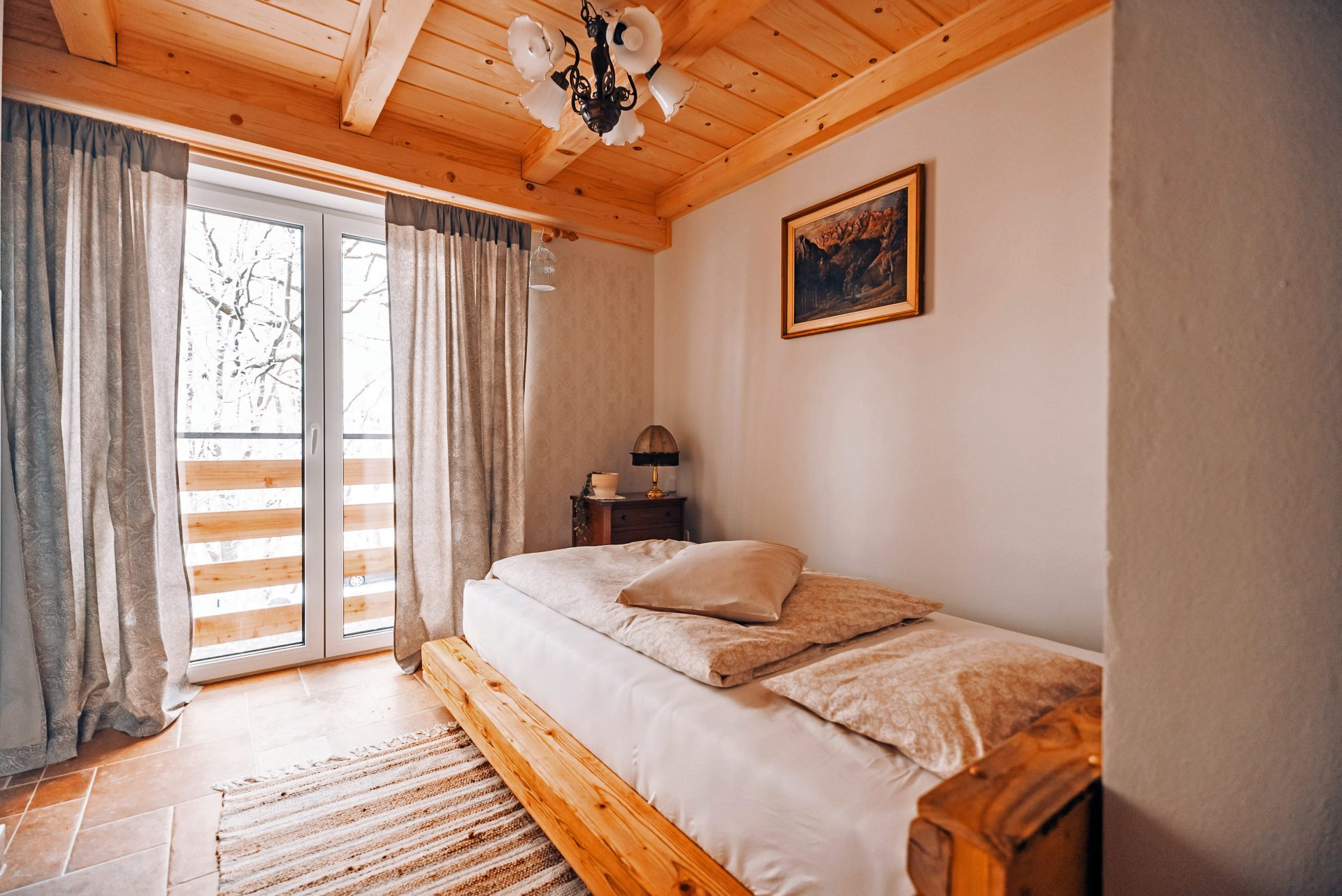 Even the smaller rooms (3), which have a single bed, do not lag behind their bigger sister in terms of homeliness, and with their restored old pattern, they conjure up a homely atmosphere and the feeling that time has stopped. The rooms have a shared bathroom, toilet and a balcony with a view of the beautiful Šmartinsko lake.