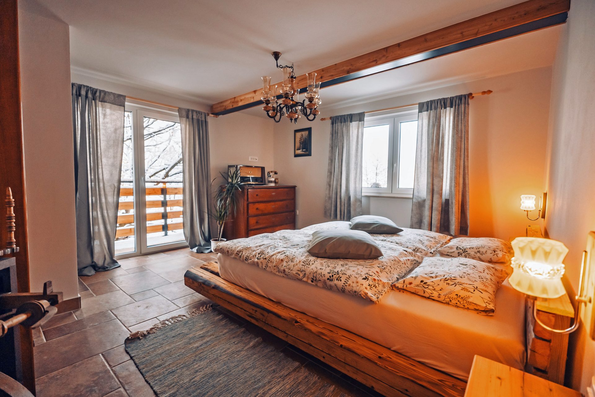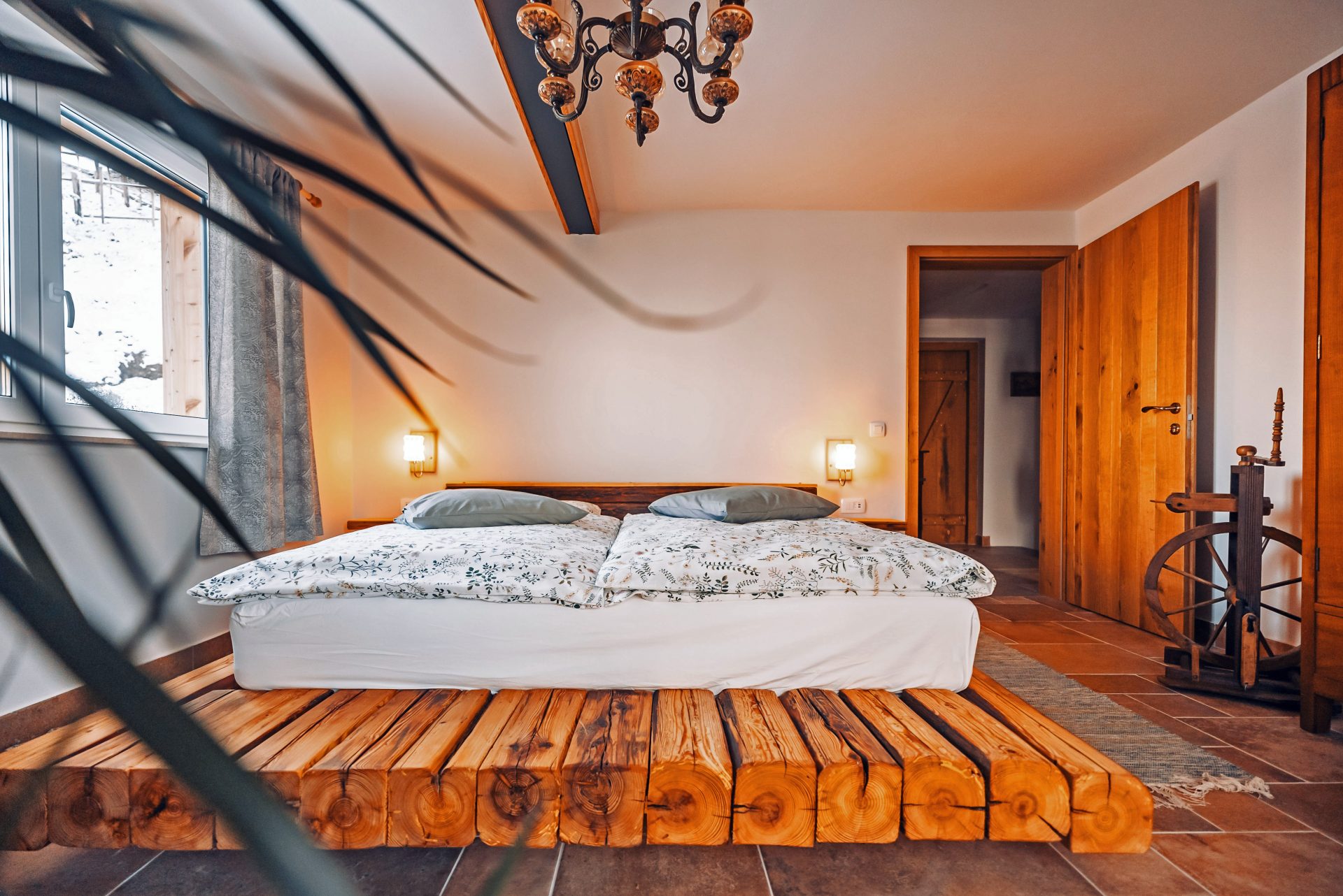 In the largest room you’ll find a comfortable double bed and several pieces of authentic rustic furniture that will make you feel like you’ve stepped back into the 19th century.