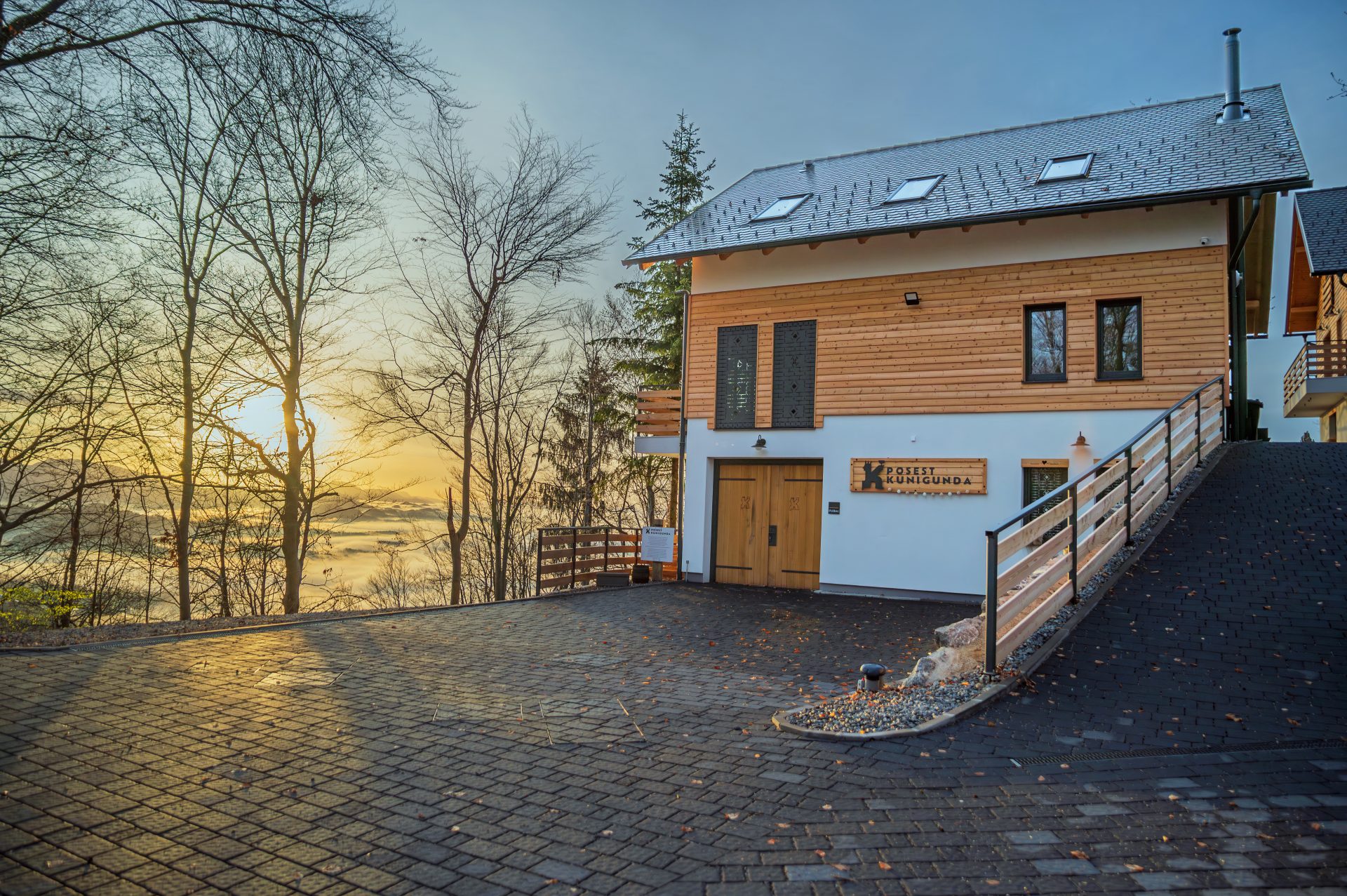 The estate lies approx. at 545 m above sea level with south and south-east position, which provides lots of sun light all through the year. It has 7.246 sqm of land, an oasis in the middle of the forest.