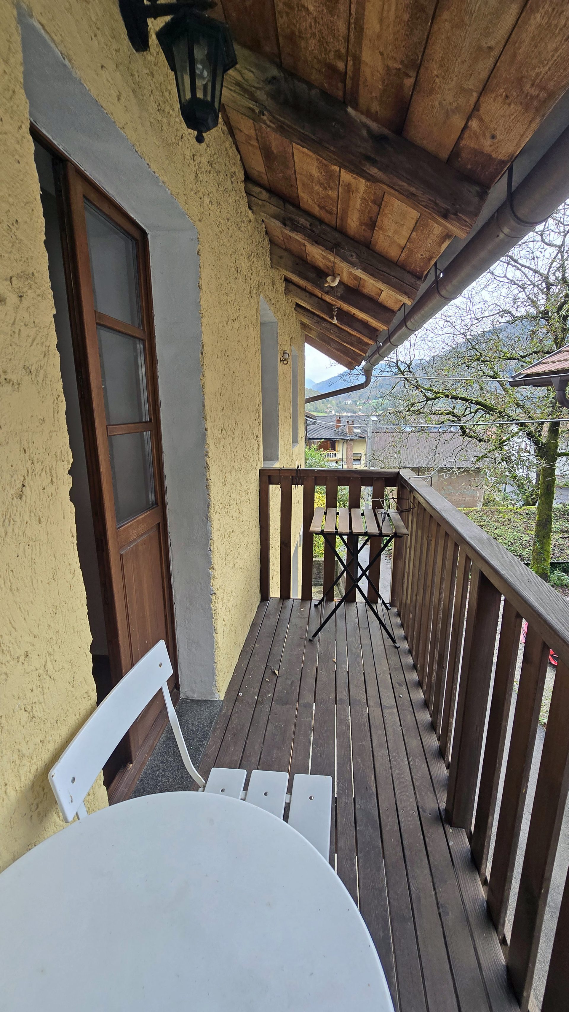 - Upstairs: hallway, balcony, and two bedrooms with picturesque mountain views