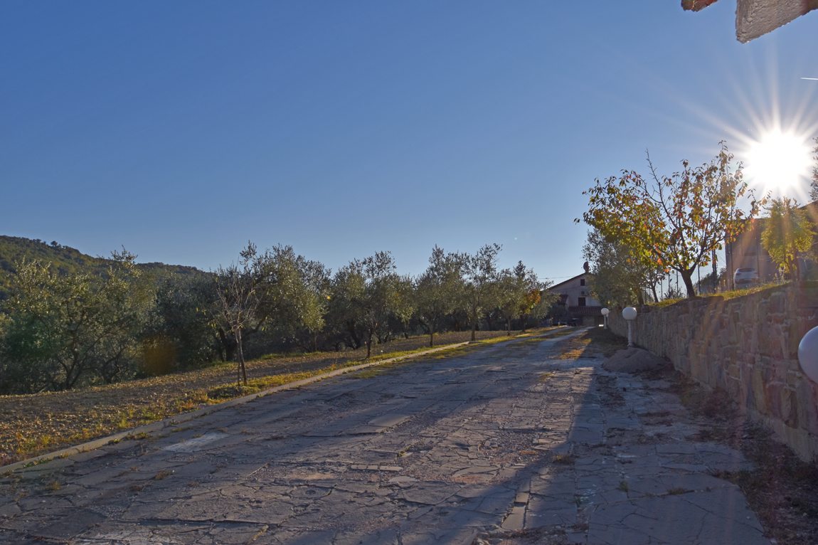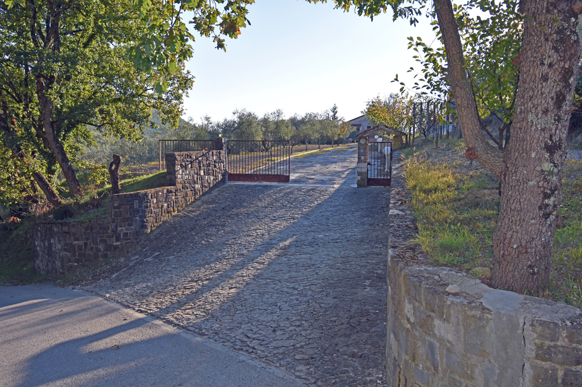 Access to the building is by a paved road, while the fields are served by several secondary unpaved roads.