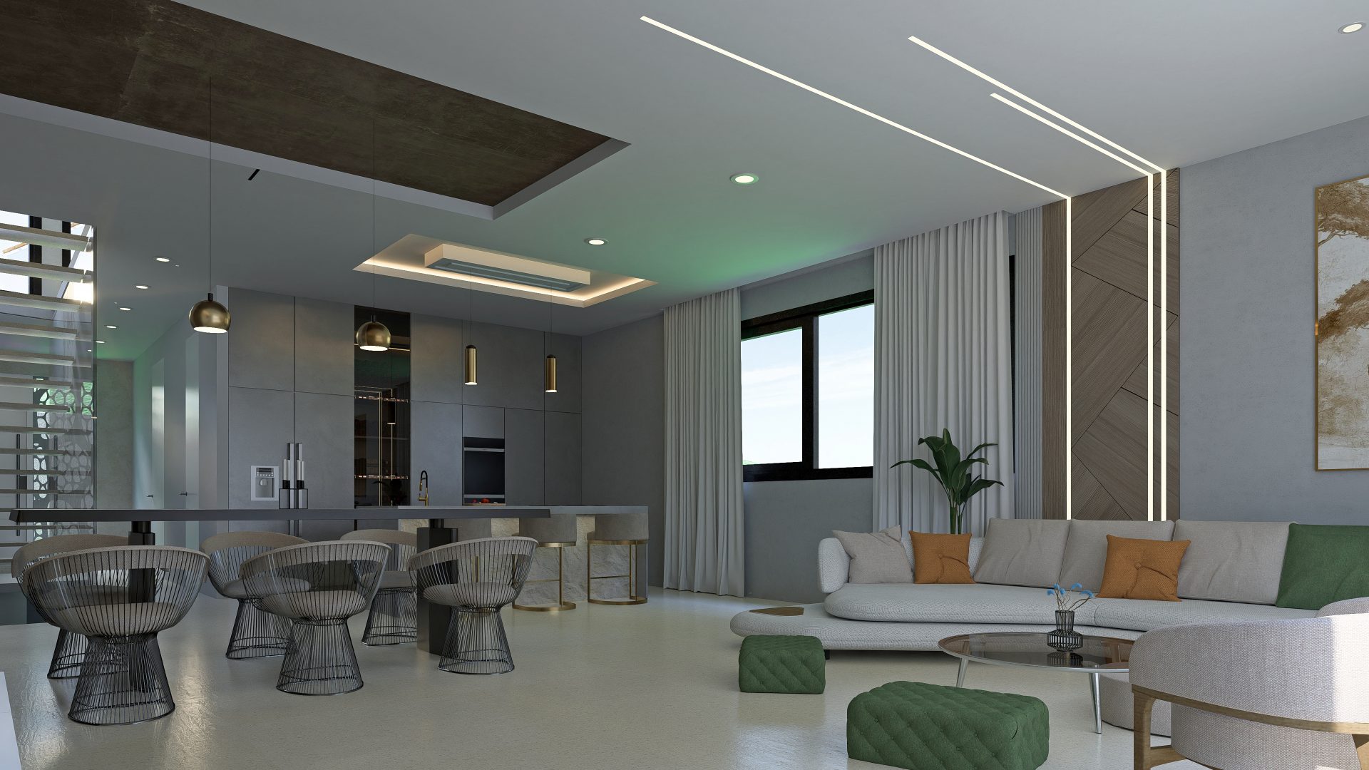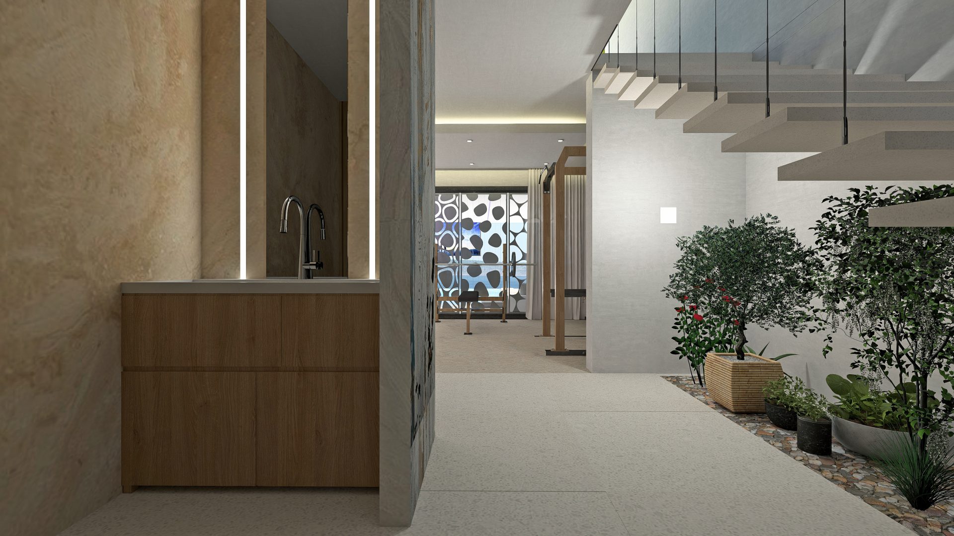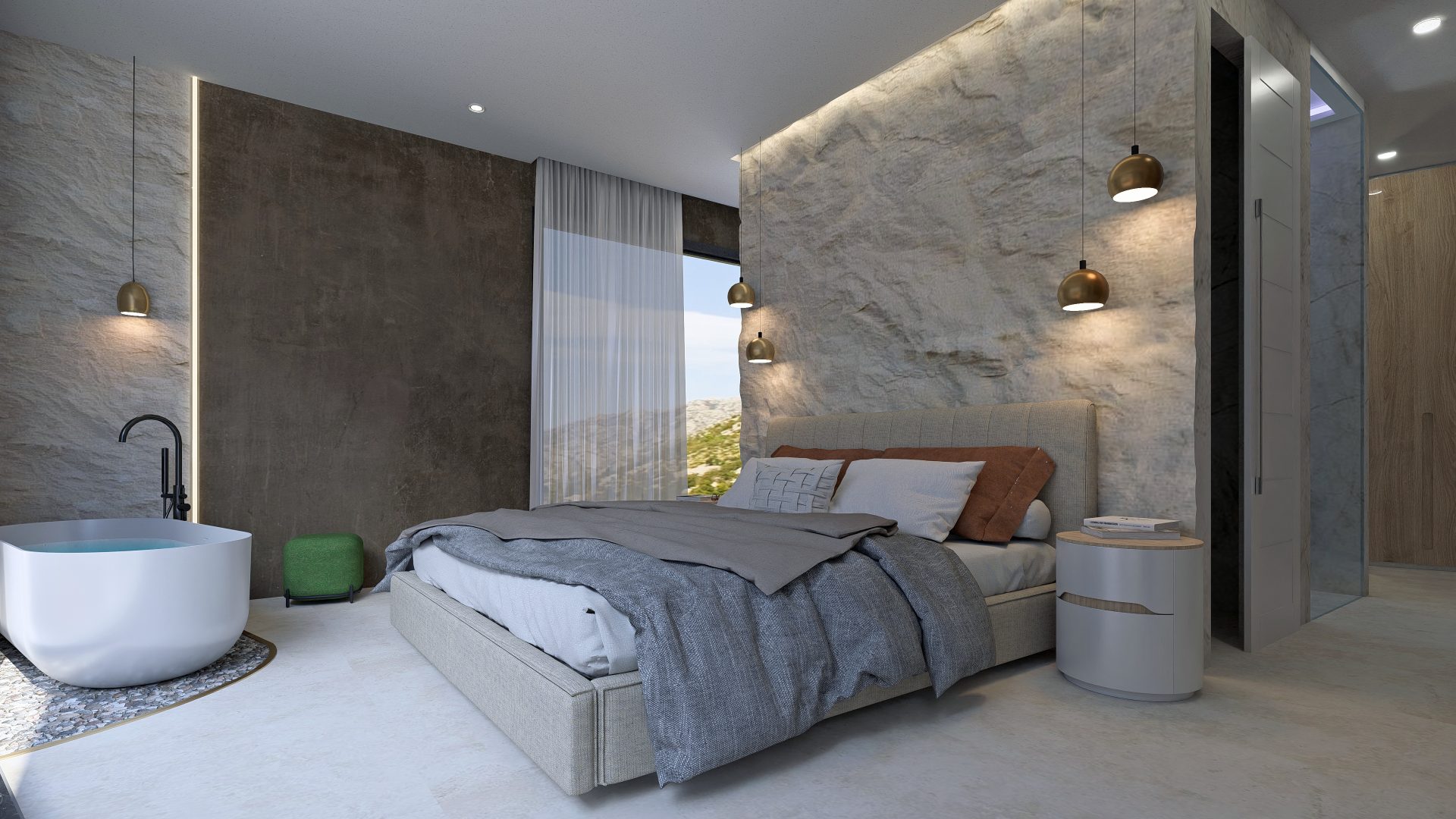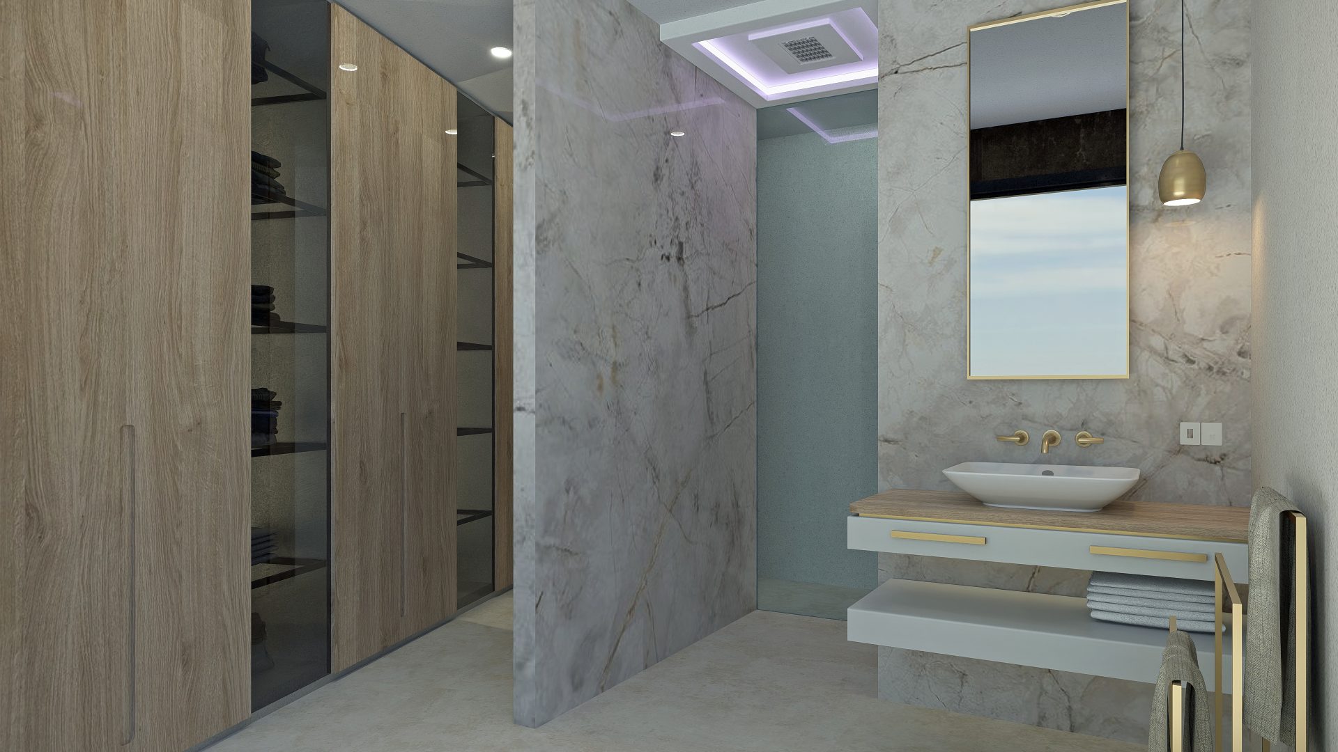 - Two Master rooms (30 m2 and 38 m2) with open bathrooms, walk-in showers, and wardrobes