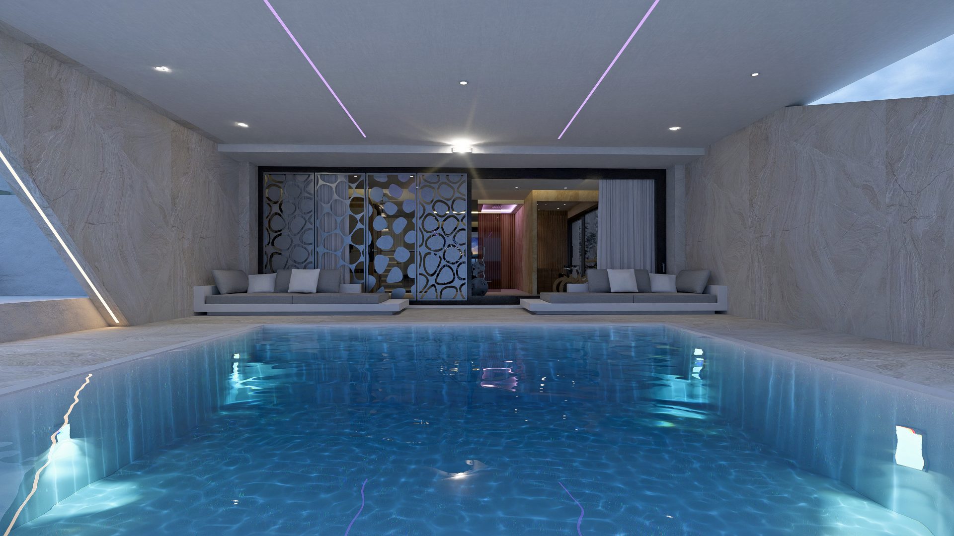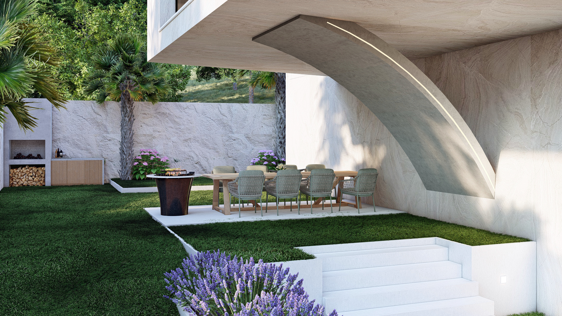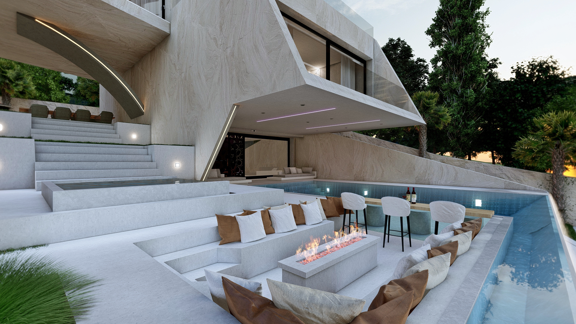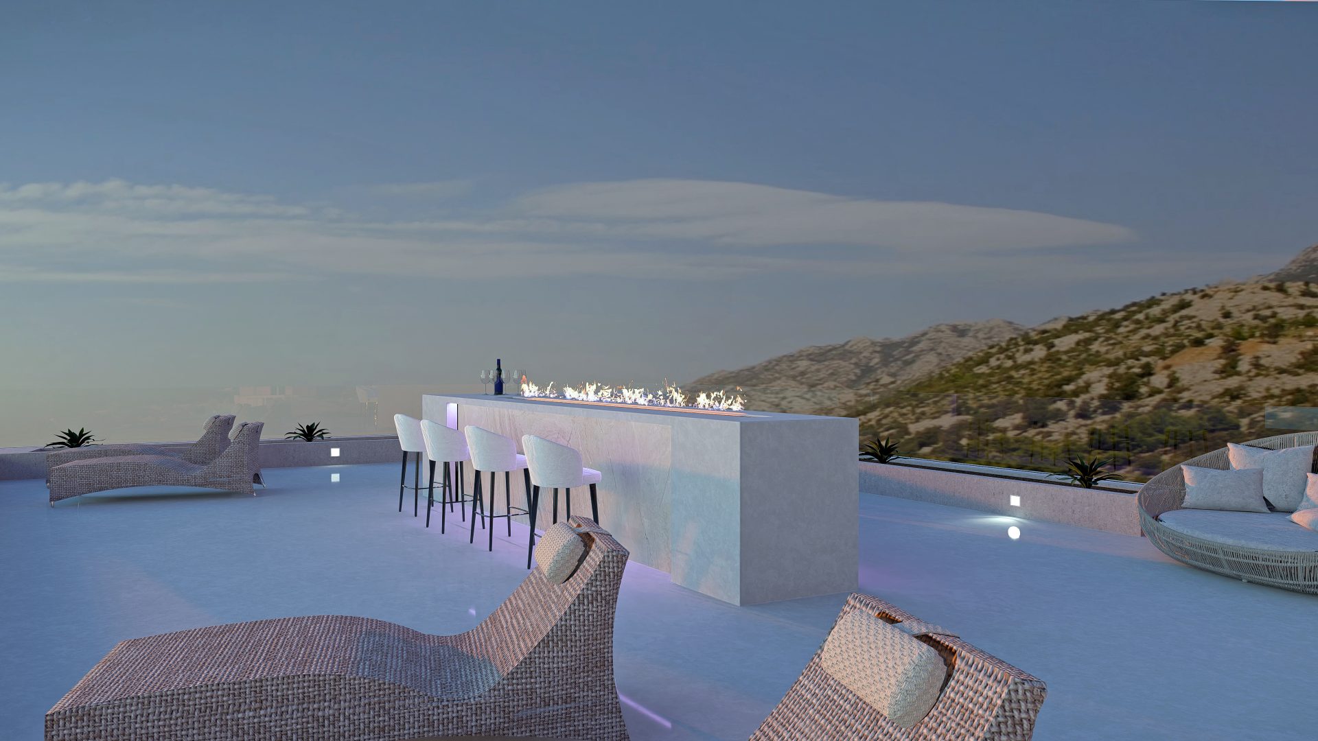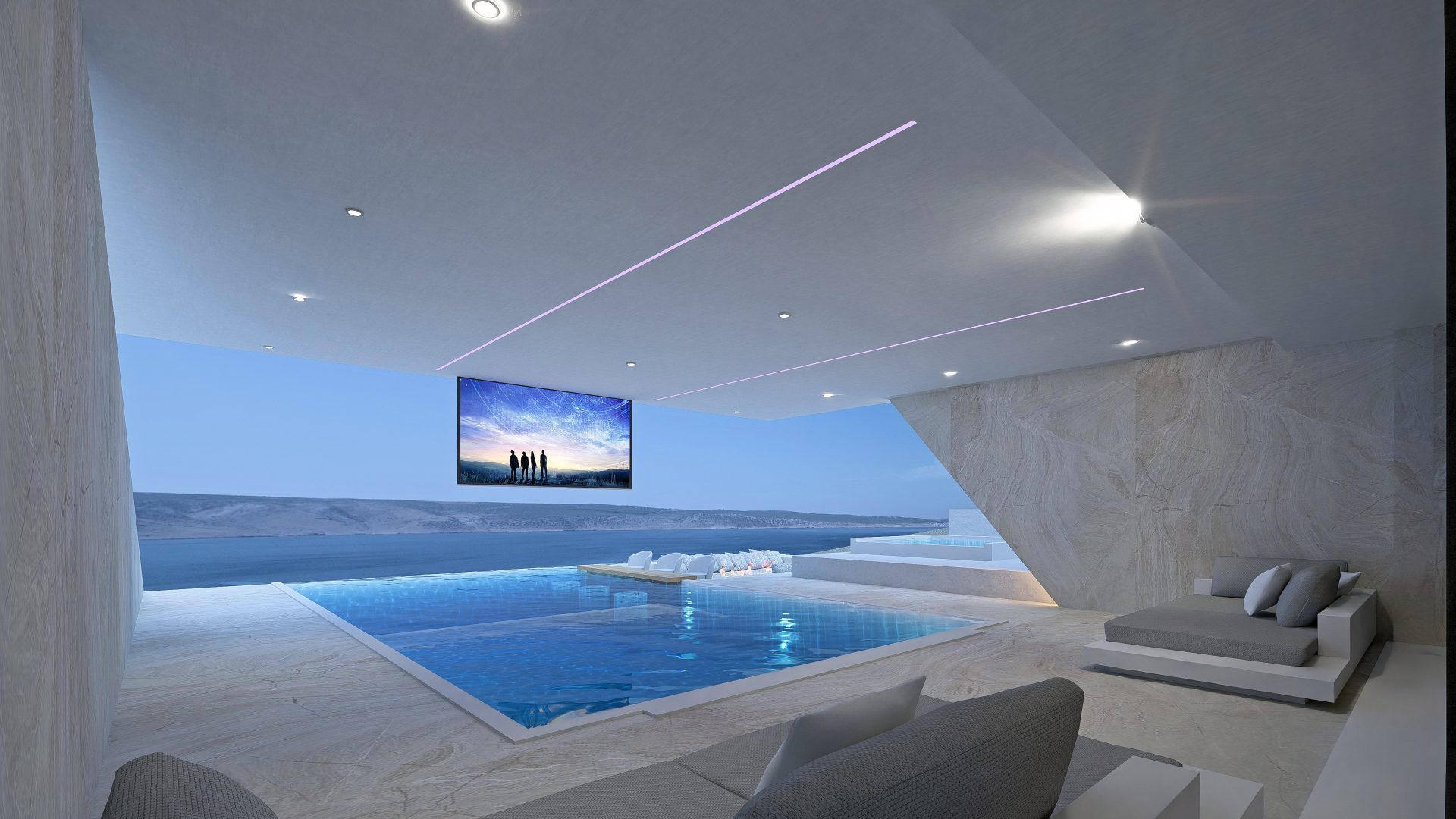 - Outdoor cinema on the terrace with an infinity pool open to sea and landscape