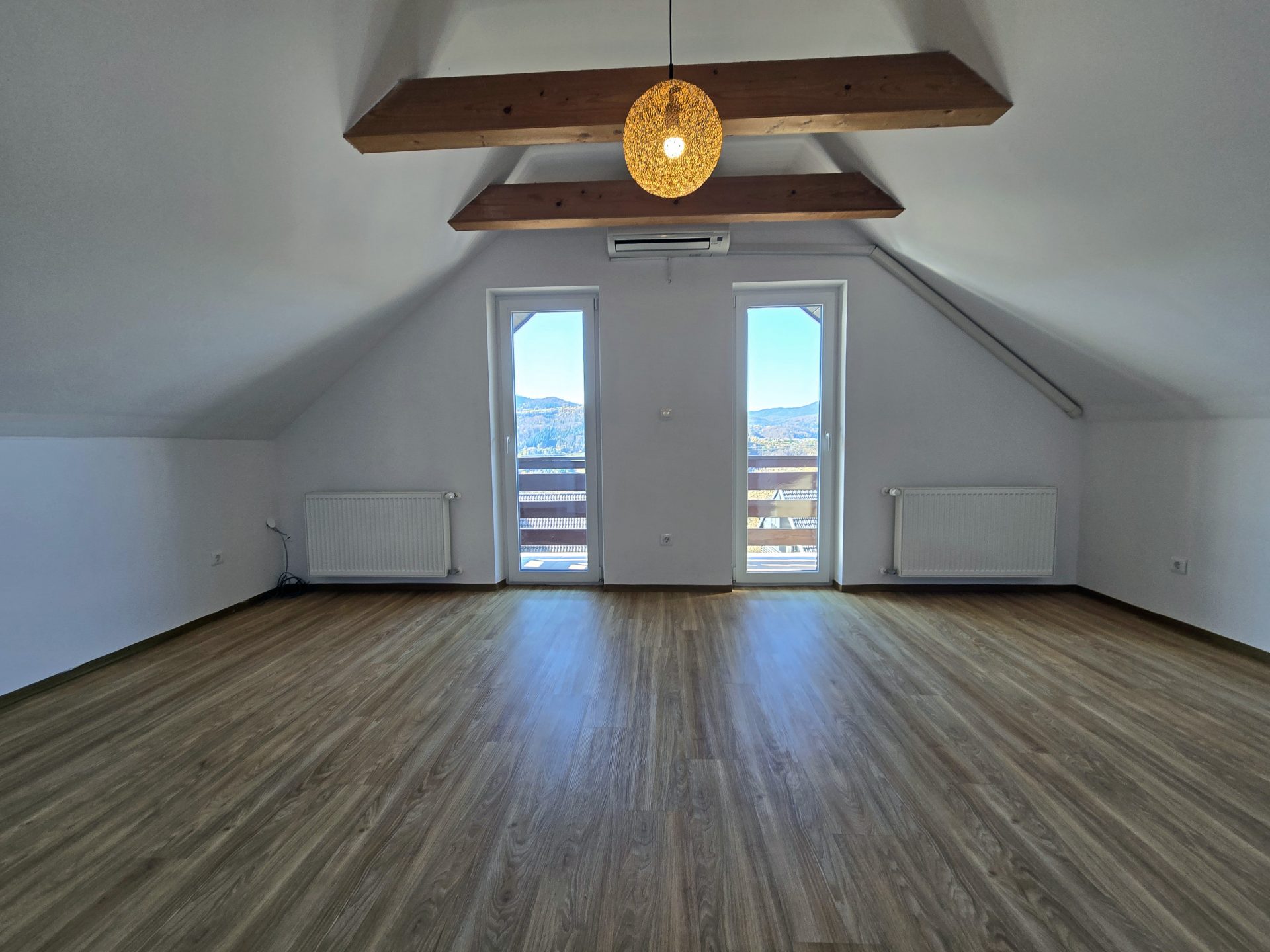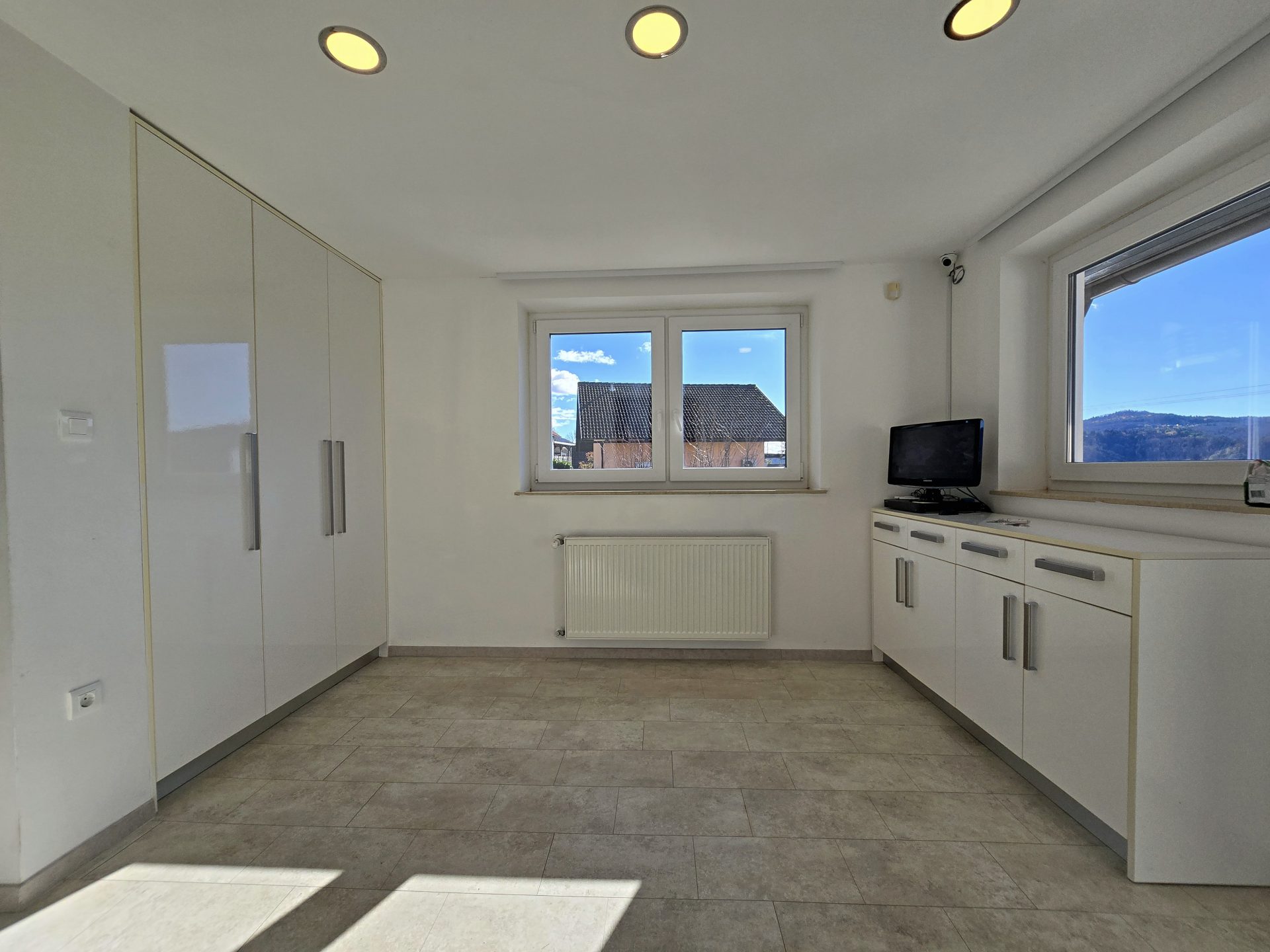 The house is spread across three levels. The ground floor comprises a garage for one vehicle, a larger multi-purpose room suitable for a gym, hobby area, or guest suite, a separate WC, and a boiler room. On the first floor, which also serves as the main entrance to the house, there is a welcoming entrance hall leading into a bright and airy living room with dining area and access to a spacious balcony. This level also includes a fully equipped kitchen with pantry, a bedroom, and a bathroom with shower.