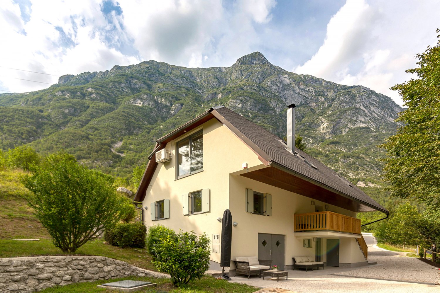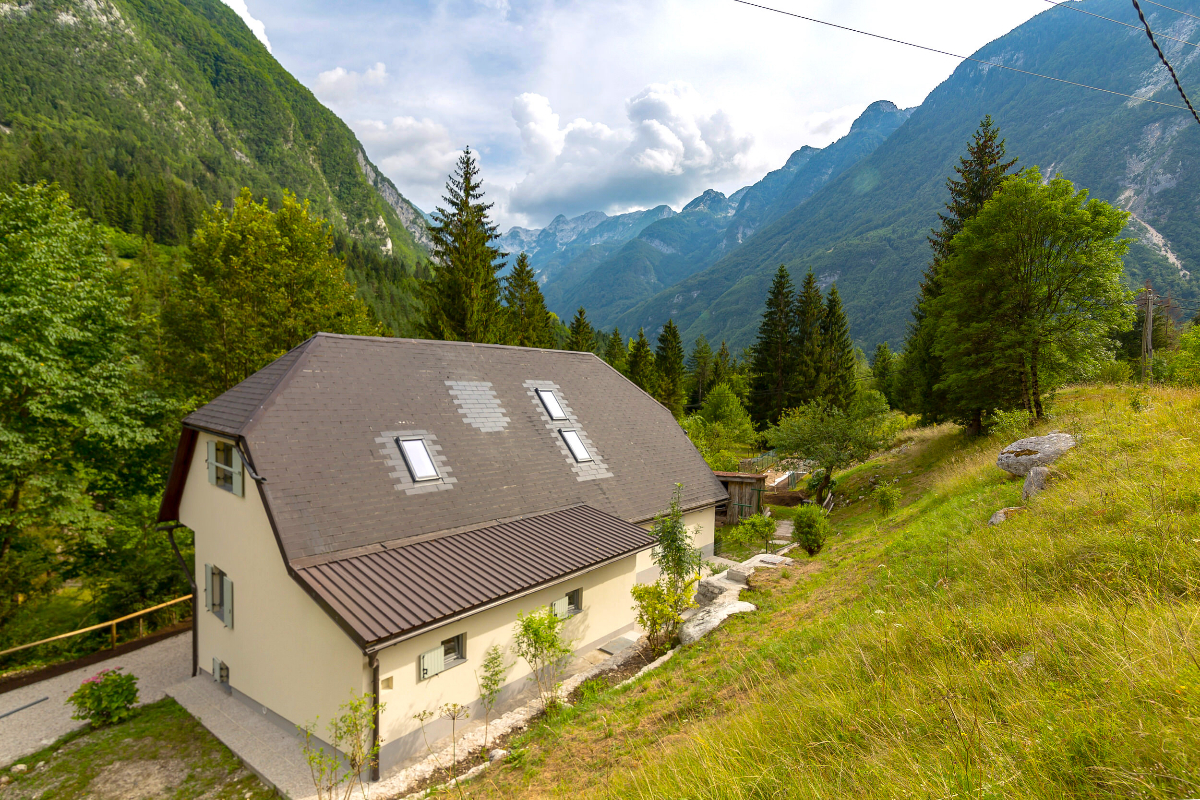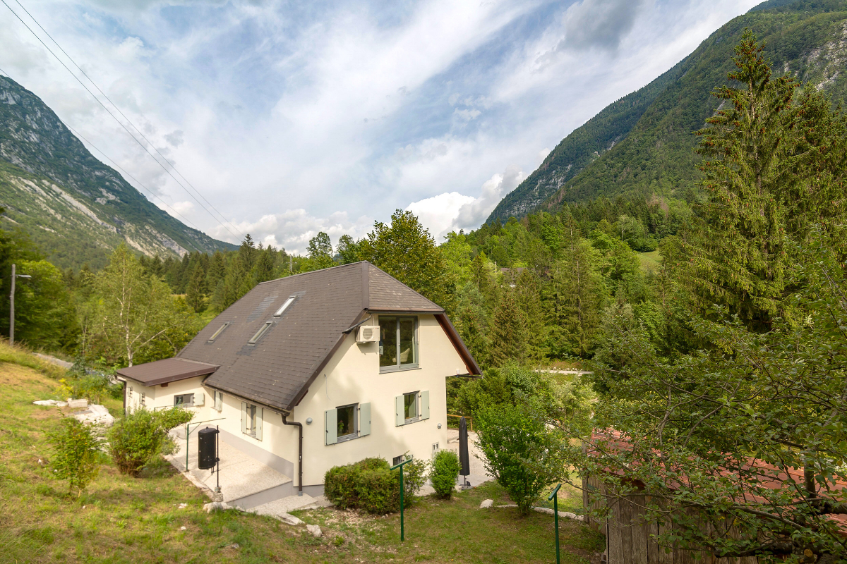 A fantastic luxury house that has the Soca River in its back garden.