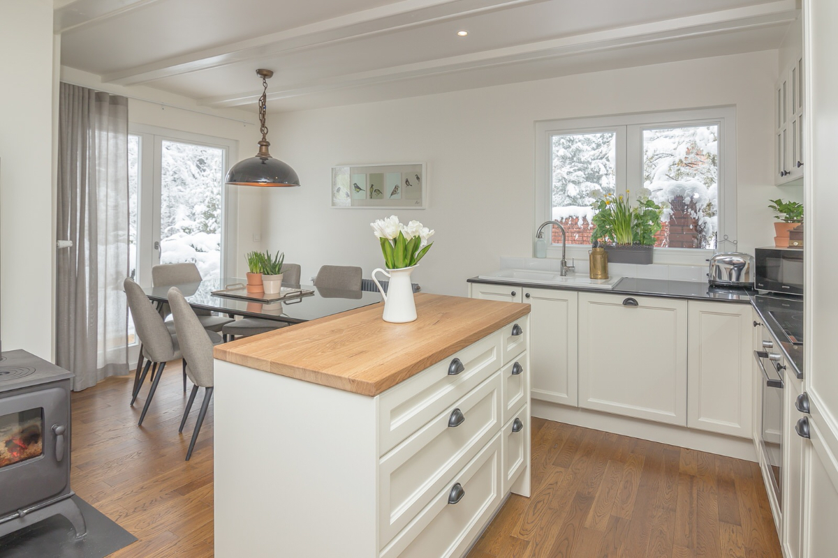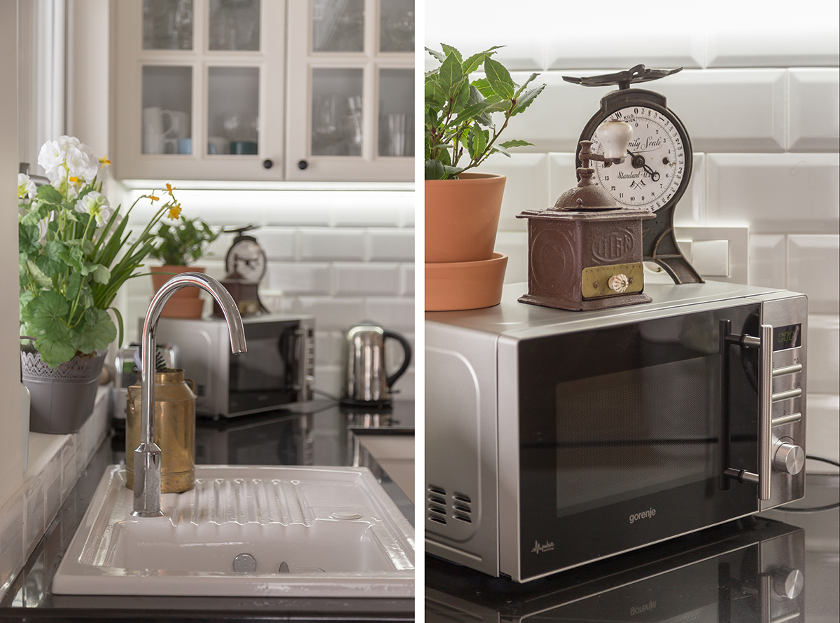 - Kitchen appliances: Dishwasher, oven, induction stove, microwave, kettle, toaster.