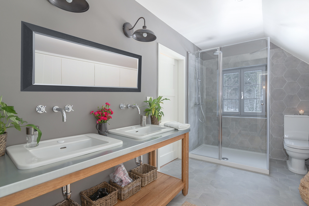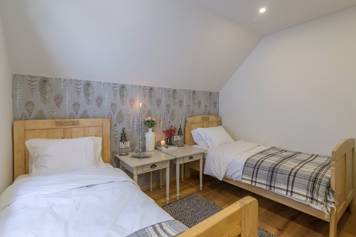 There is a large main bedroom with a large ensuite bathroom with large shower. A further bedroom on this floor with two single beds.