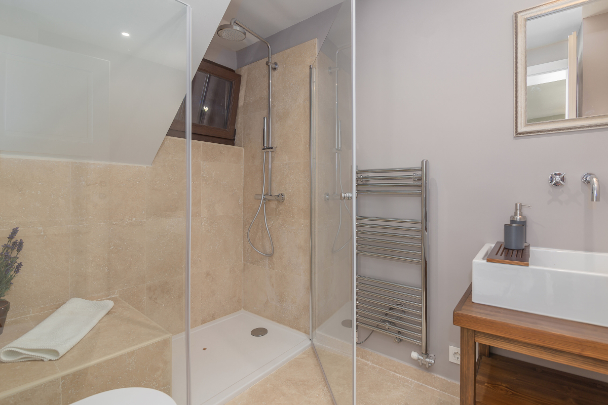 The house has with solid wood floors and Natural Stone. Offering Three bedrooms (2 air-conditioned double bedrooms and 1 twin) with one bedroom ensuite with large shower. Second bathroom has bath and shower.