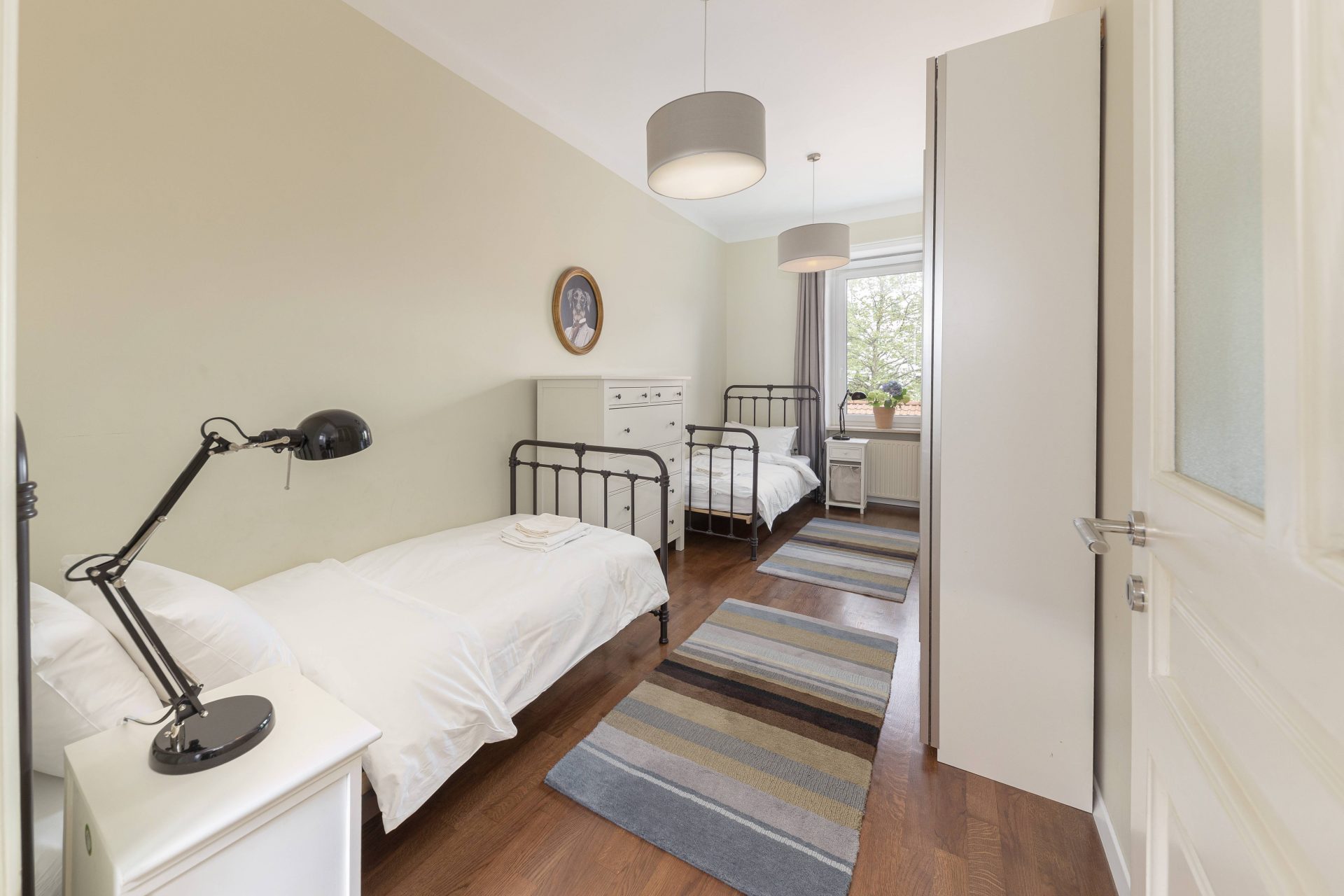 "The accommodation is superb. The rooms are big and very clean. The bedroom with two beds is also suitable for adults. I am 170 cm tall and the bed was good for me. The other bedroom has a very large bed and a high French type. The living room with the kitchen is large and spacious. Everything is available although we didn't have to use almost anything from the kitchen. The bathroom has a bathtub with a shower and a toilet. Separately, there is another wc. Shampoo, conditioner, soap, extra toilet paper were left. There is also a hairdryer. There was also an umbrella for use. Everything we needed was in the accommodation. It was quiet. The apartment is very clean and tidy. The furniture is clean." (5 out of 5 )