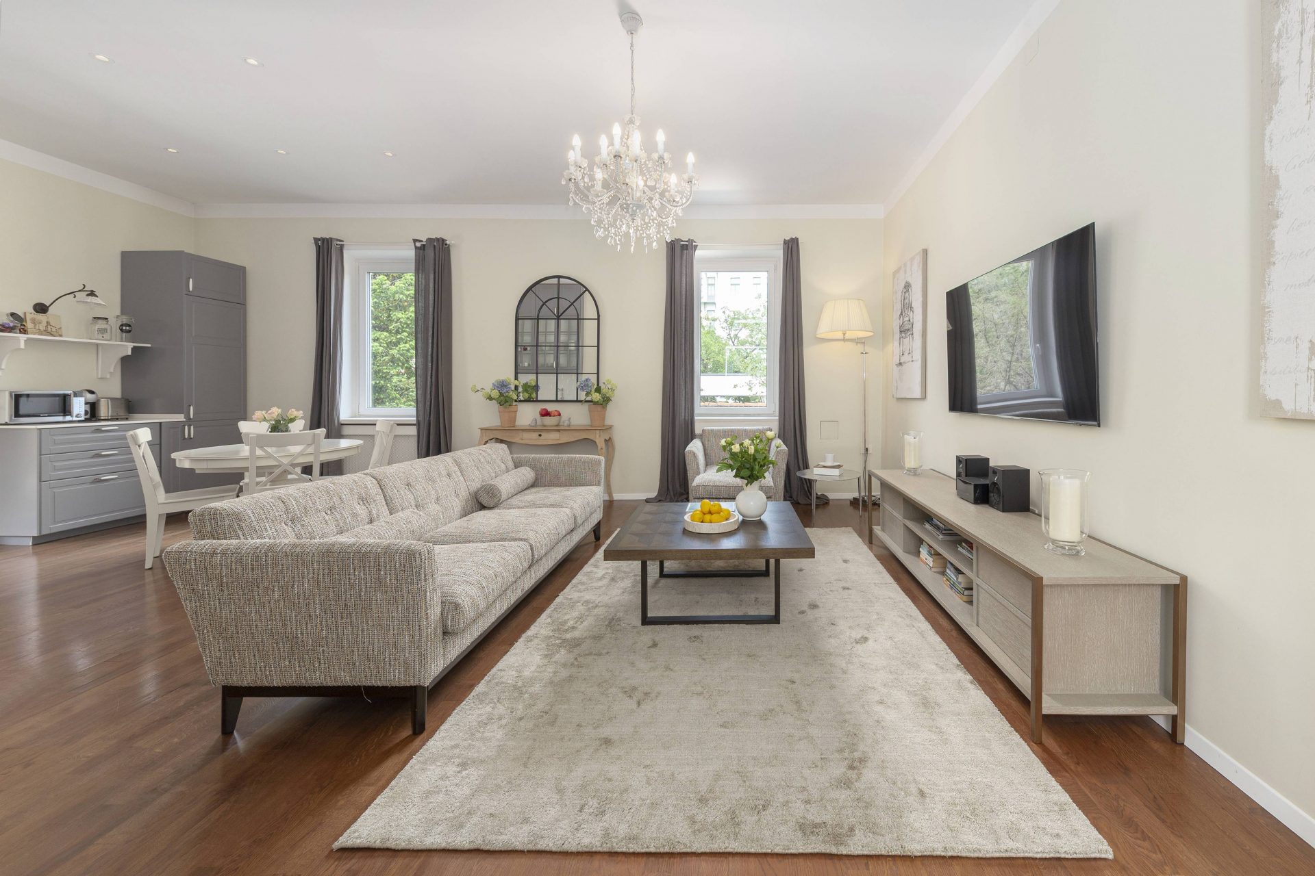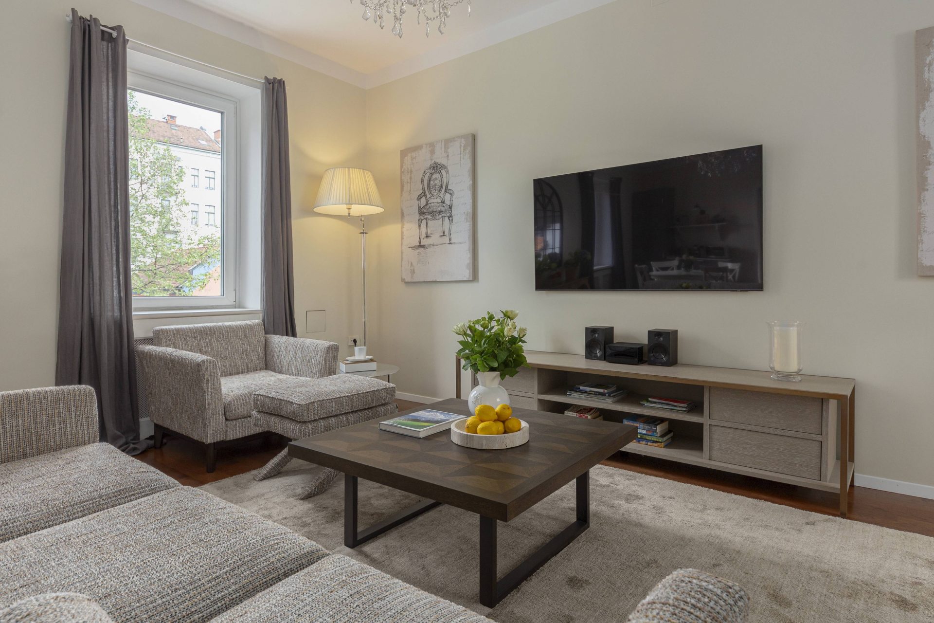 The apartment is newly renovated and offers a luxury stay in Ljubljana.
