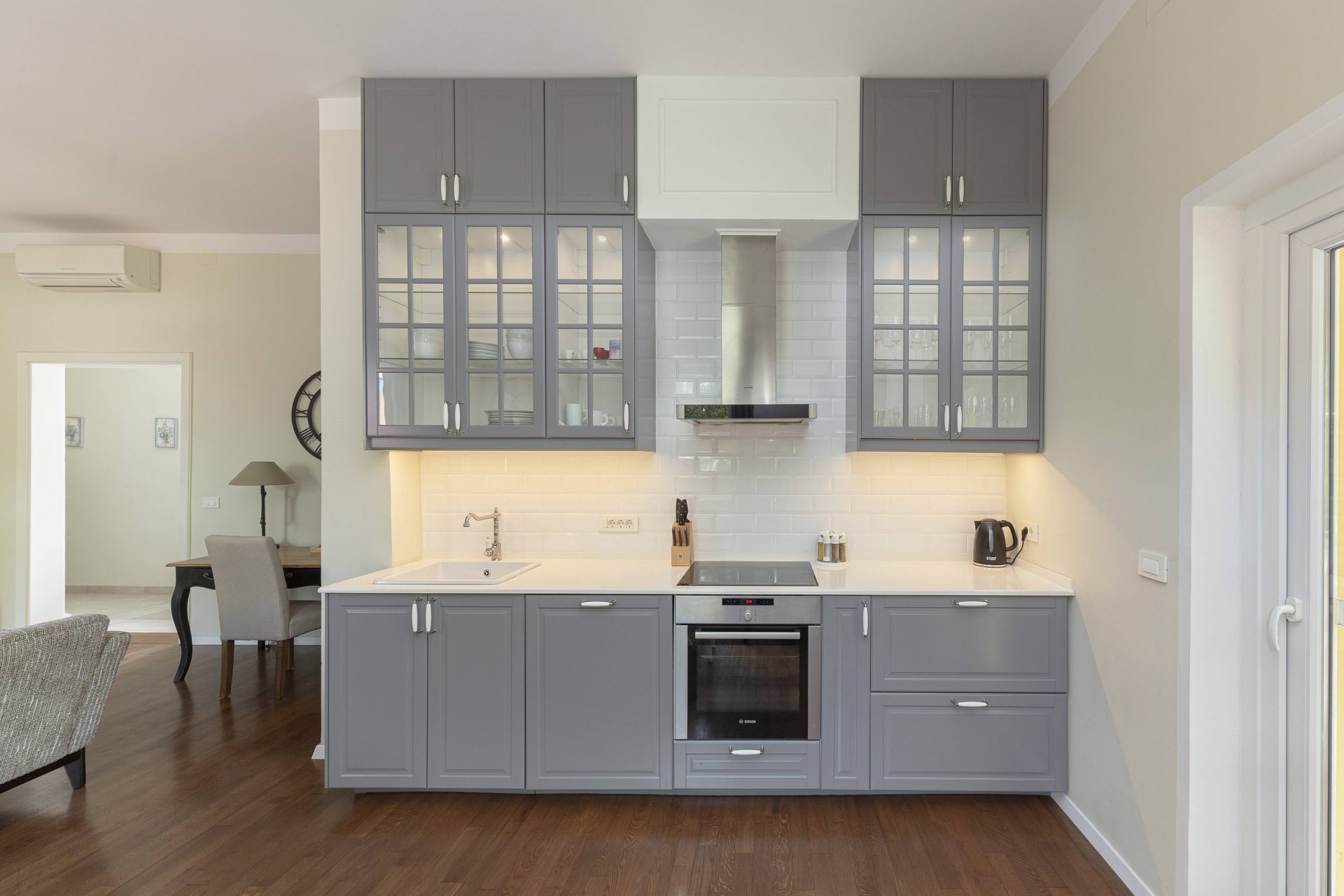 - Kitchen appliances: Oven, stove, microwave, dishwasher, toaster, coffee machine, kettle