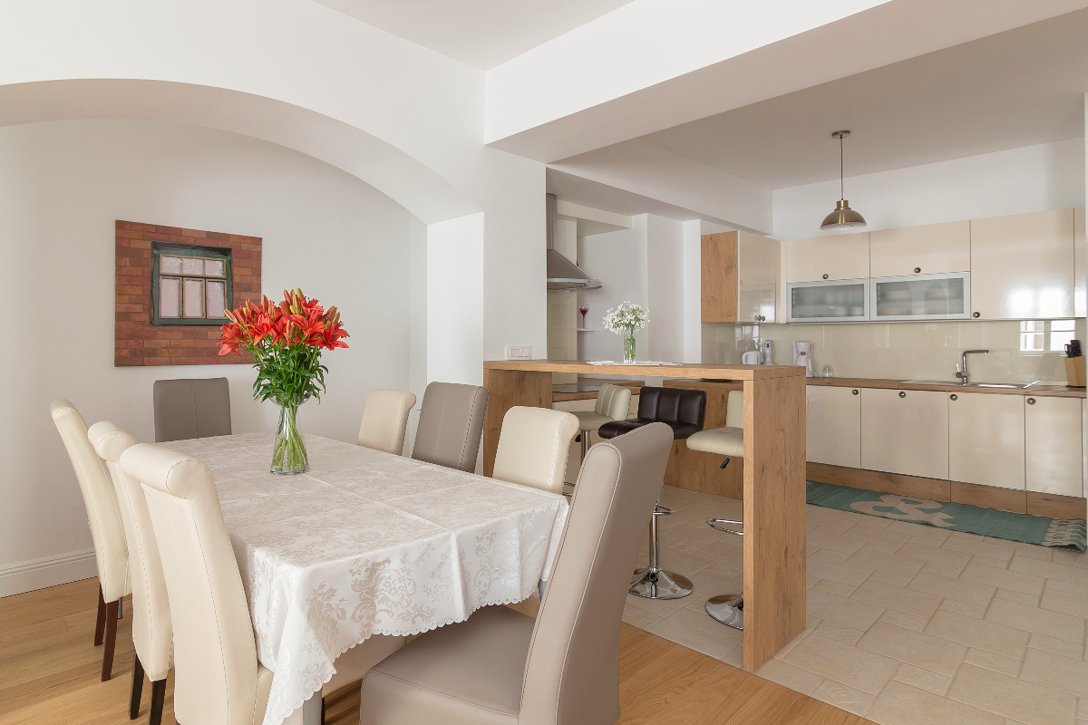 "We loved our stay here! The apartment is located in a very central part of Ljubljana's Old Town, close to the Central Market and funicular up to the Castle. The apartment is easy to access, with wide stairs and an elevator, which was helpful for our group that included two young children and my elderly mother. The interior of the apartment is spacious and has been carefully renovated. The lounge looks out over the street and adjoins a large open-plan and (extremely) well equipped kitchen. We even managed to make soup using ingredients from the nearby market. Although the street hums with restaurants and people, we found the bedrooms were all very quiet and peaceful. The beds were comfortable and we slept well. Everyone in our group loved the accommodation and would recommend it to others." (5.0 out of 5 )