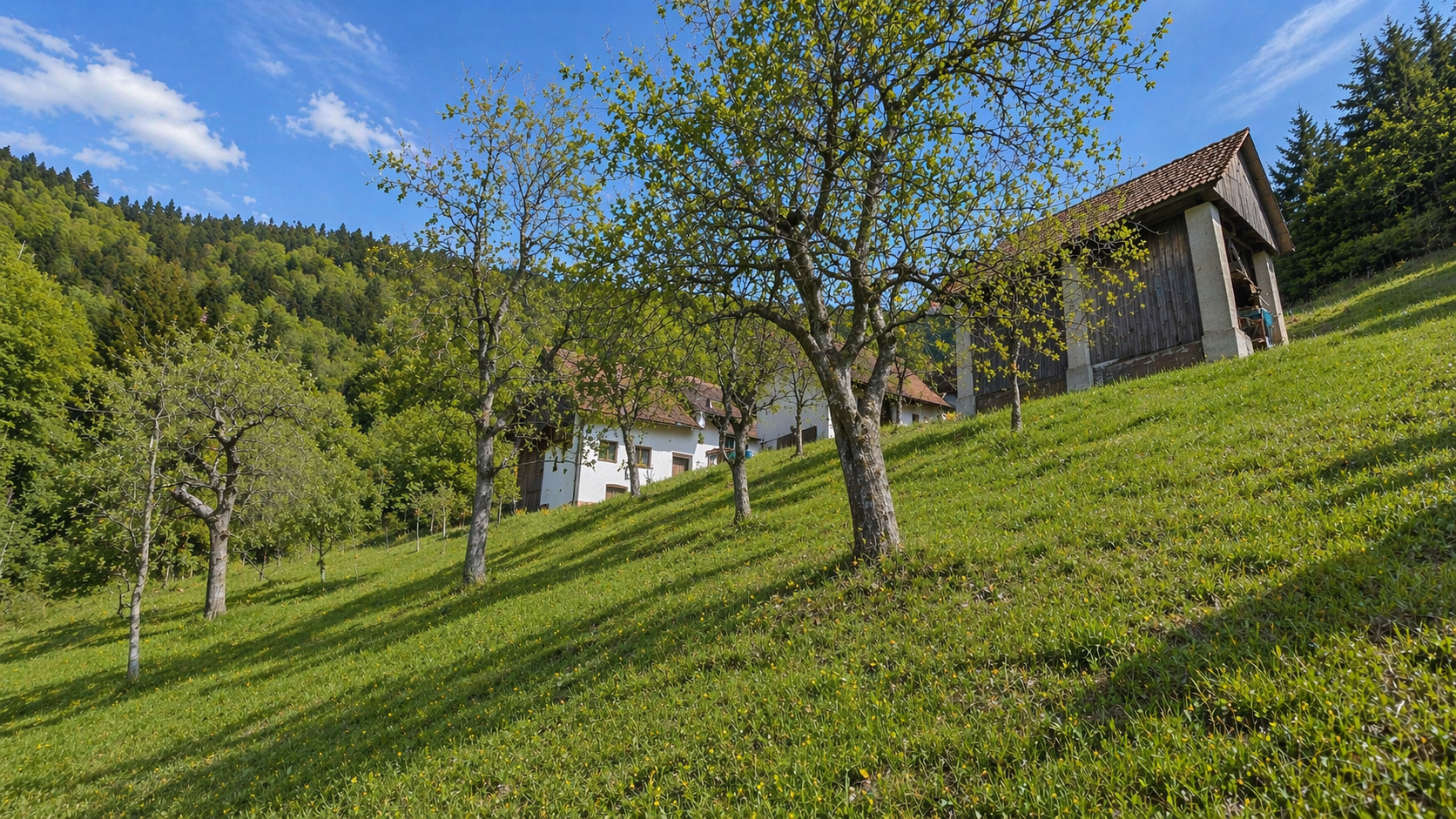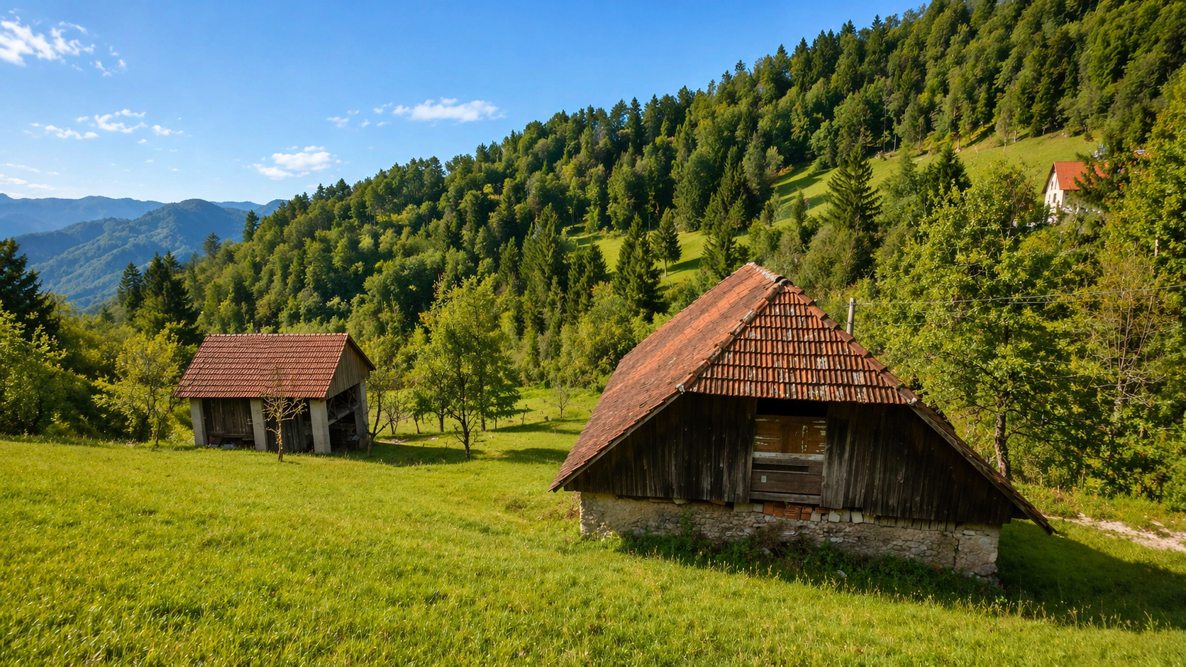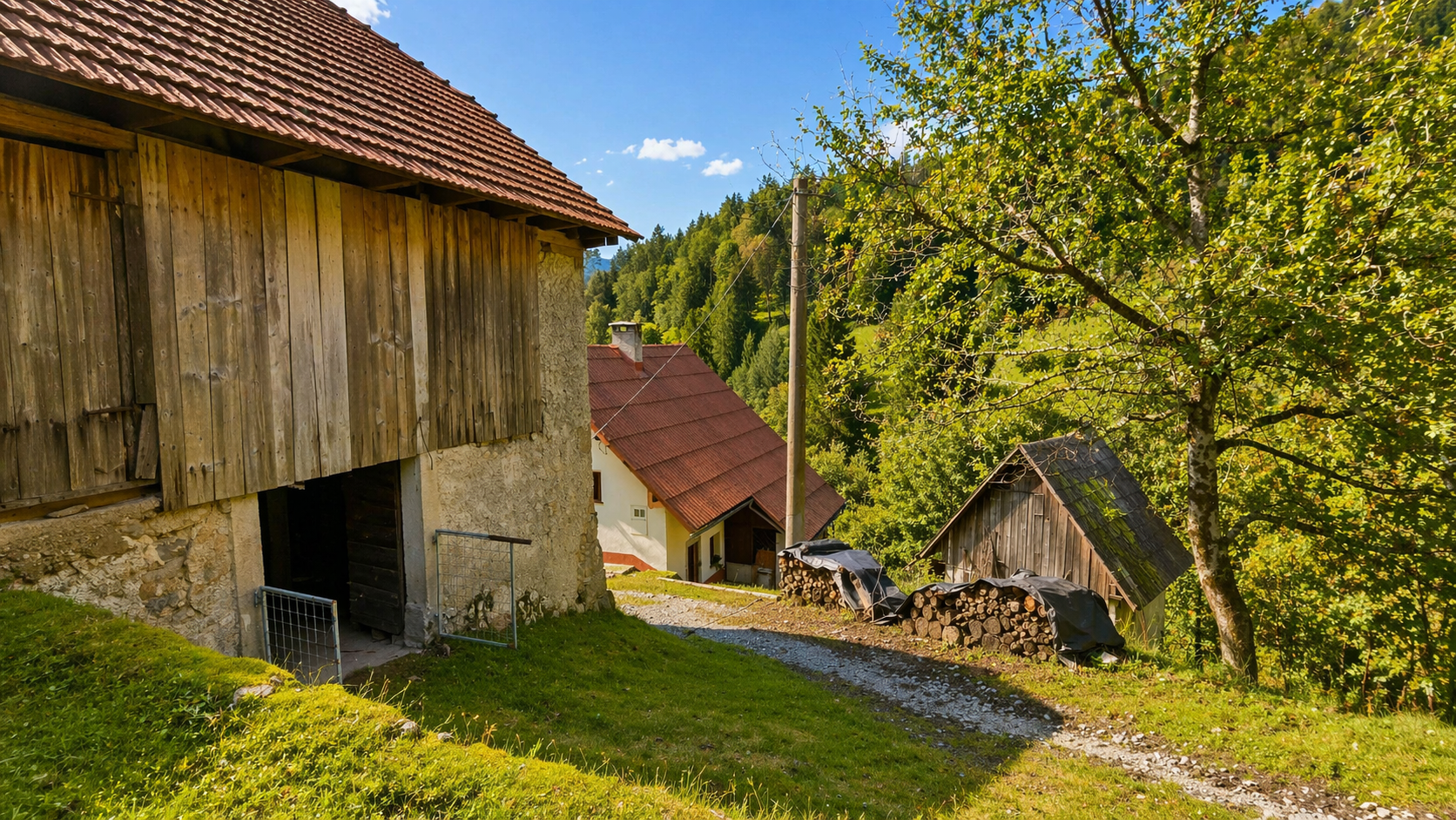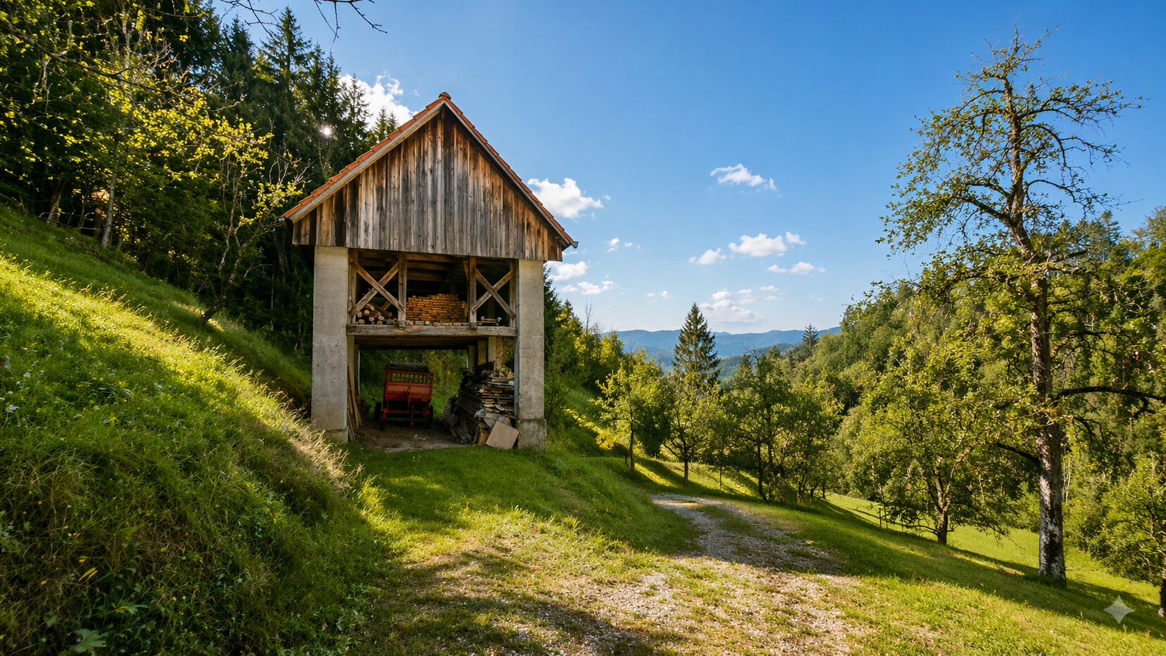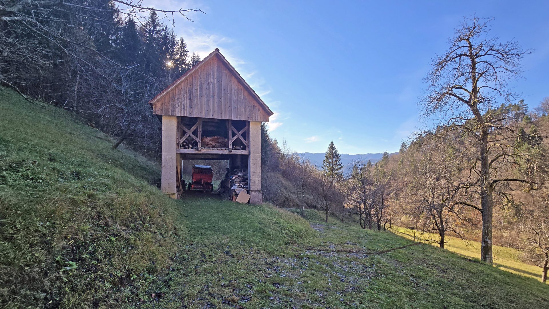 In an idyllic natural setting above Spodnja Idrija, a unique and peaceful estate is for sale, covering a total area of 13.8 hectares (137,933 sqm) of meadows and forest.