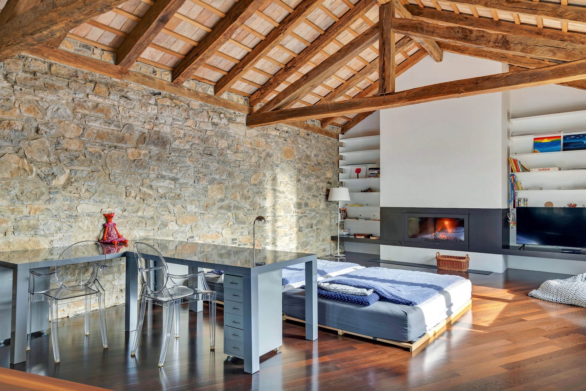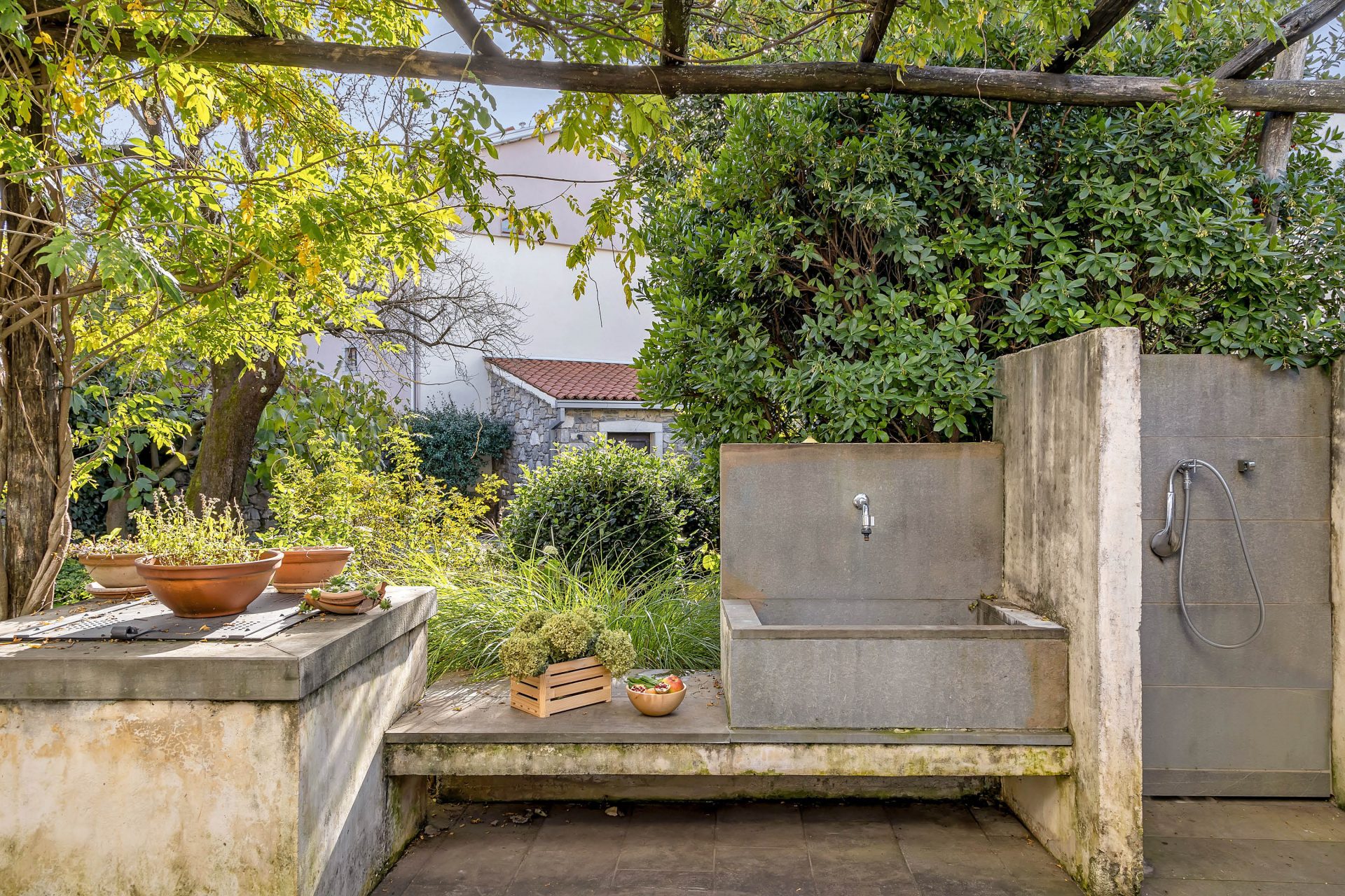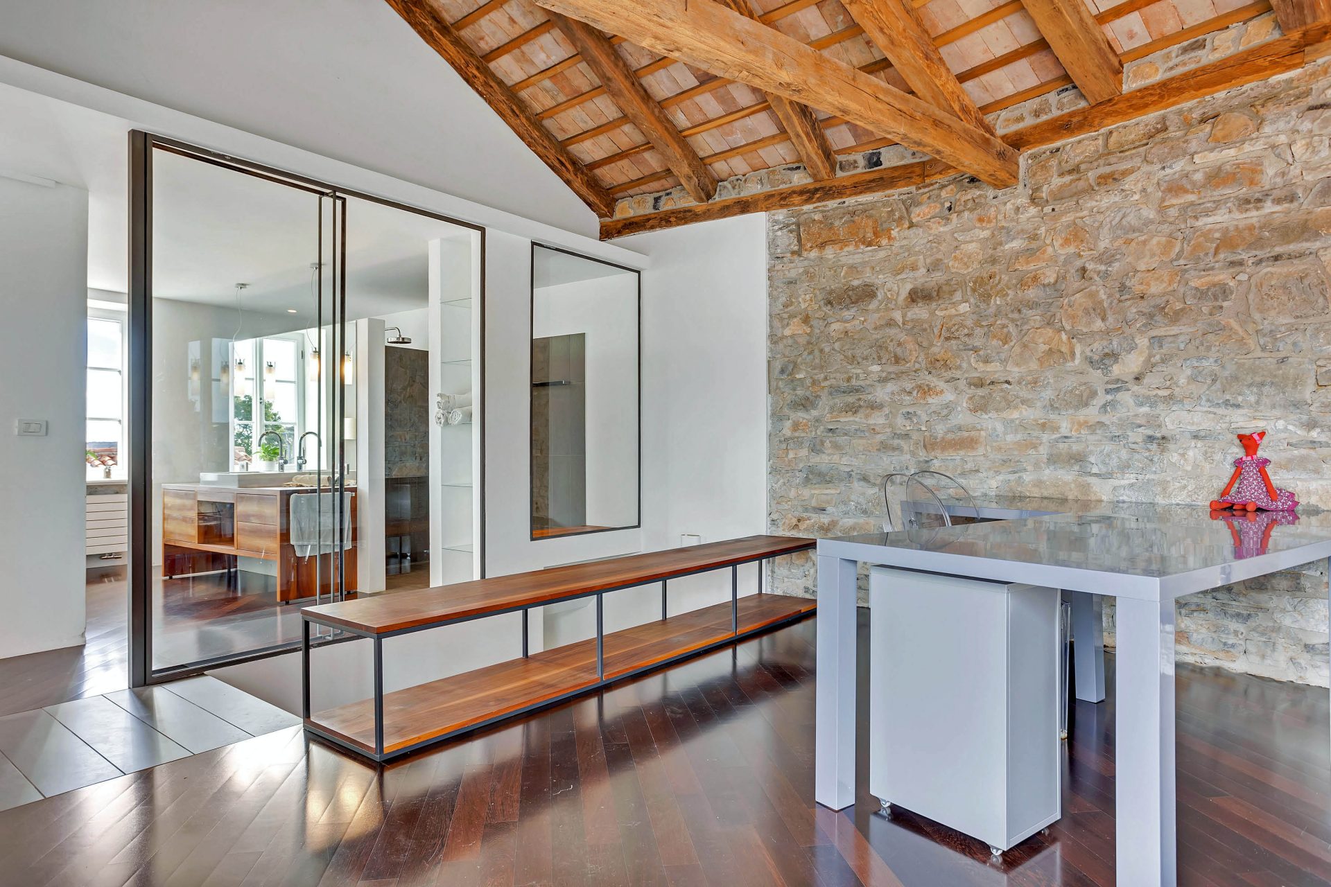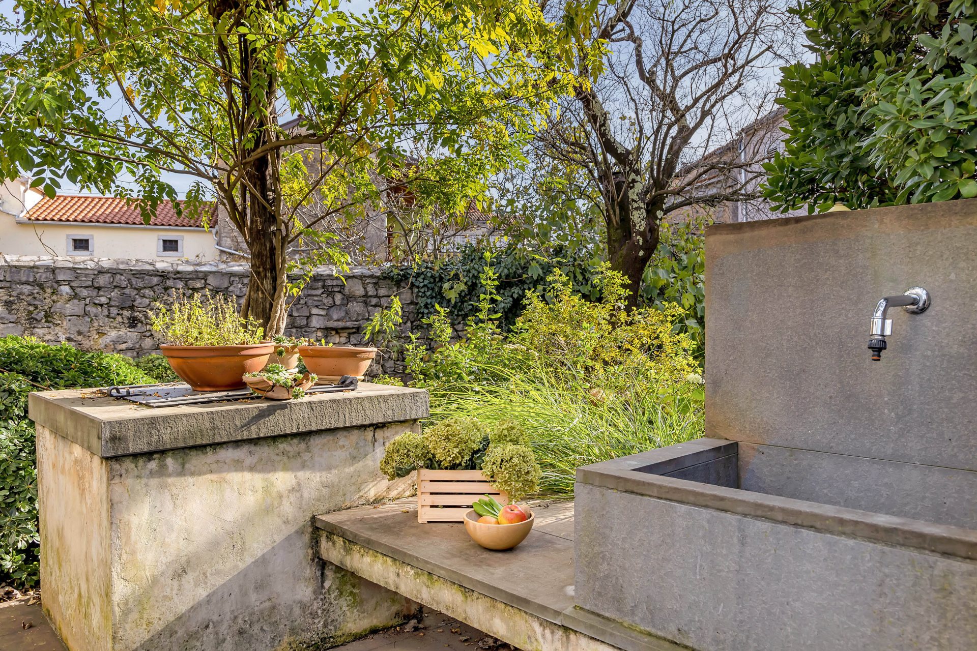 The house was completely renovated in a typical style for this area. The materials used are of high quality – a combination of various materials such as solid wood, glass, ceramics and stone.