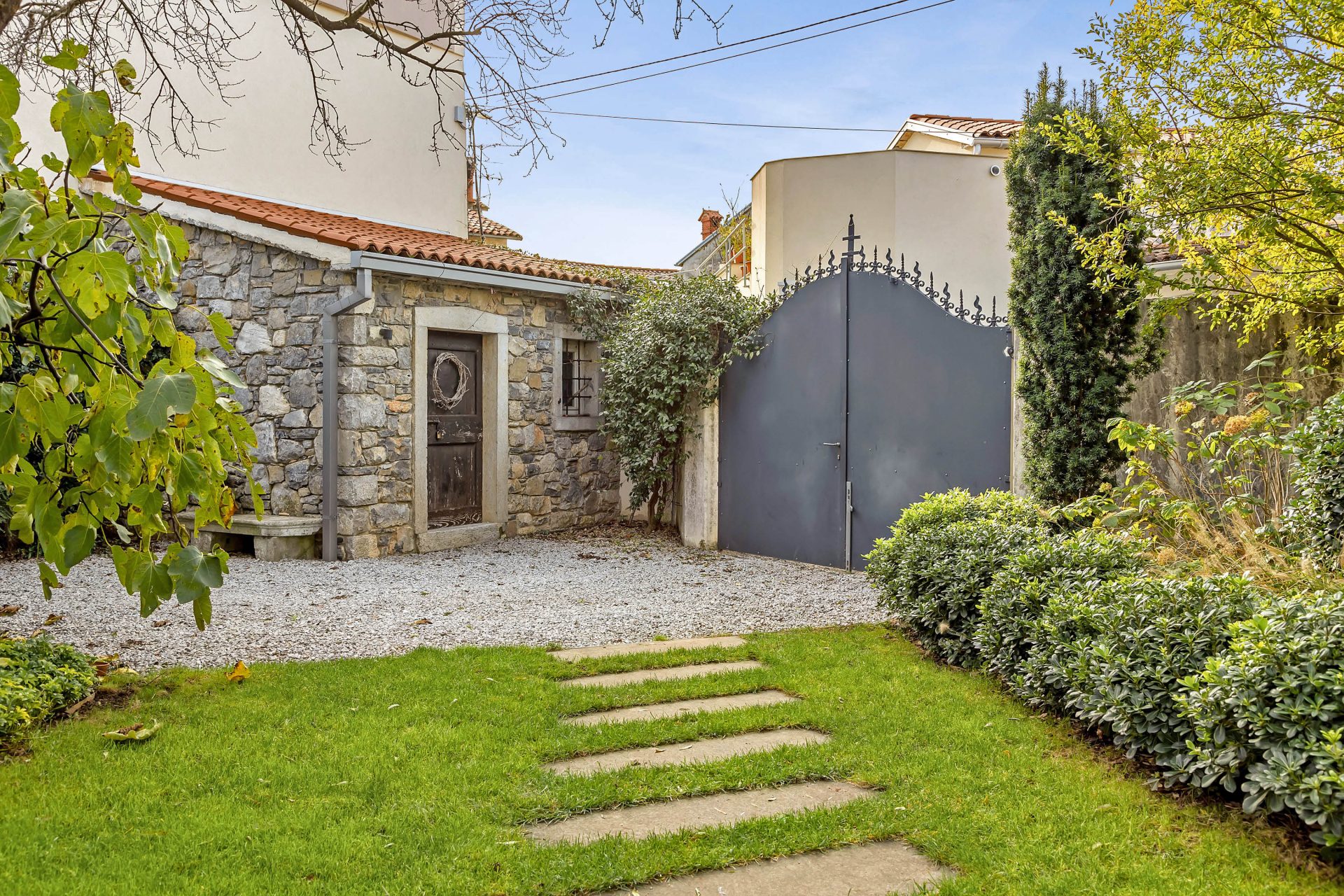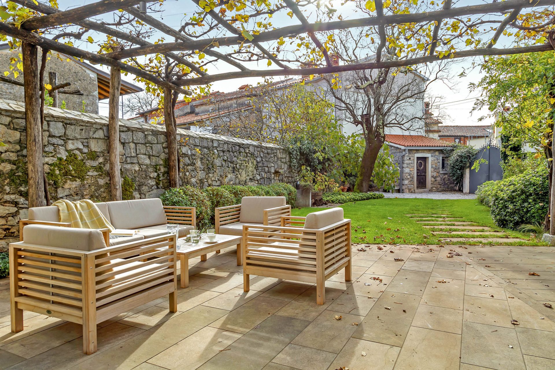 This is a completely renovated stone house located in the wine region of Slovenia with a terrific, green garden that offers lots of shade in the summer.
