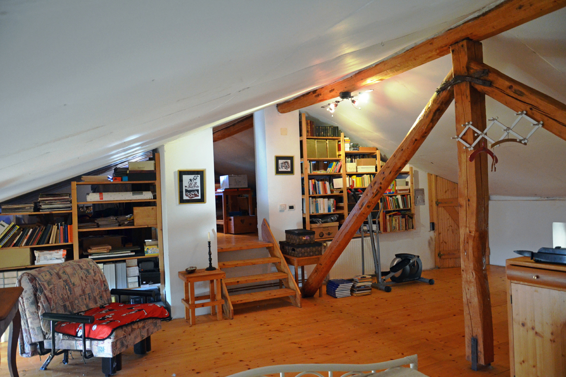 The attic part extends over the entire part, which also has a standing height where there can be an office or additional bedrooms.