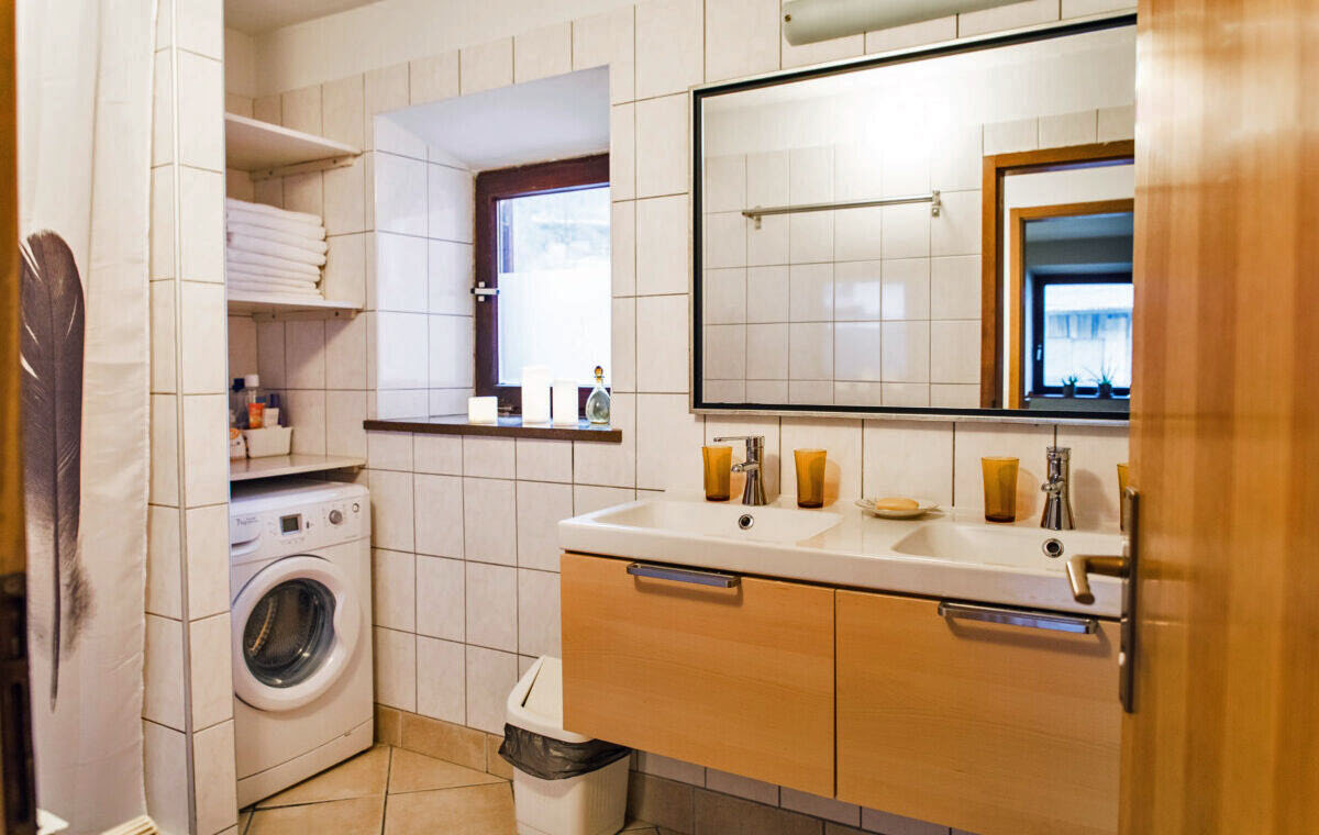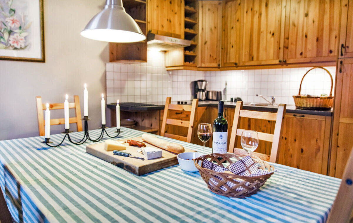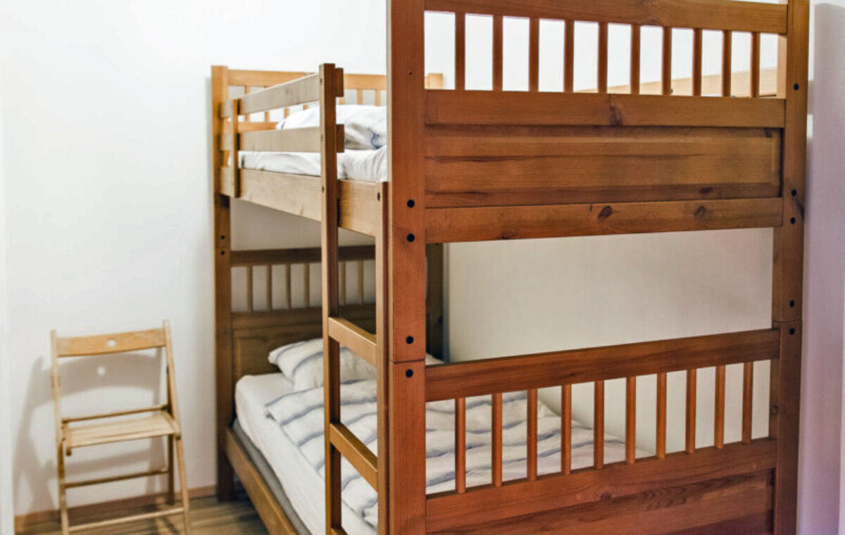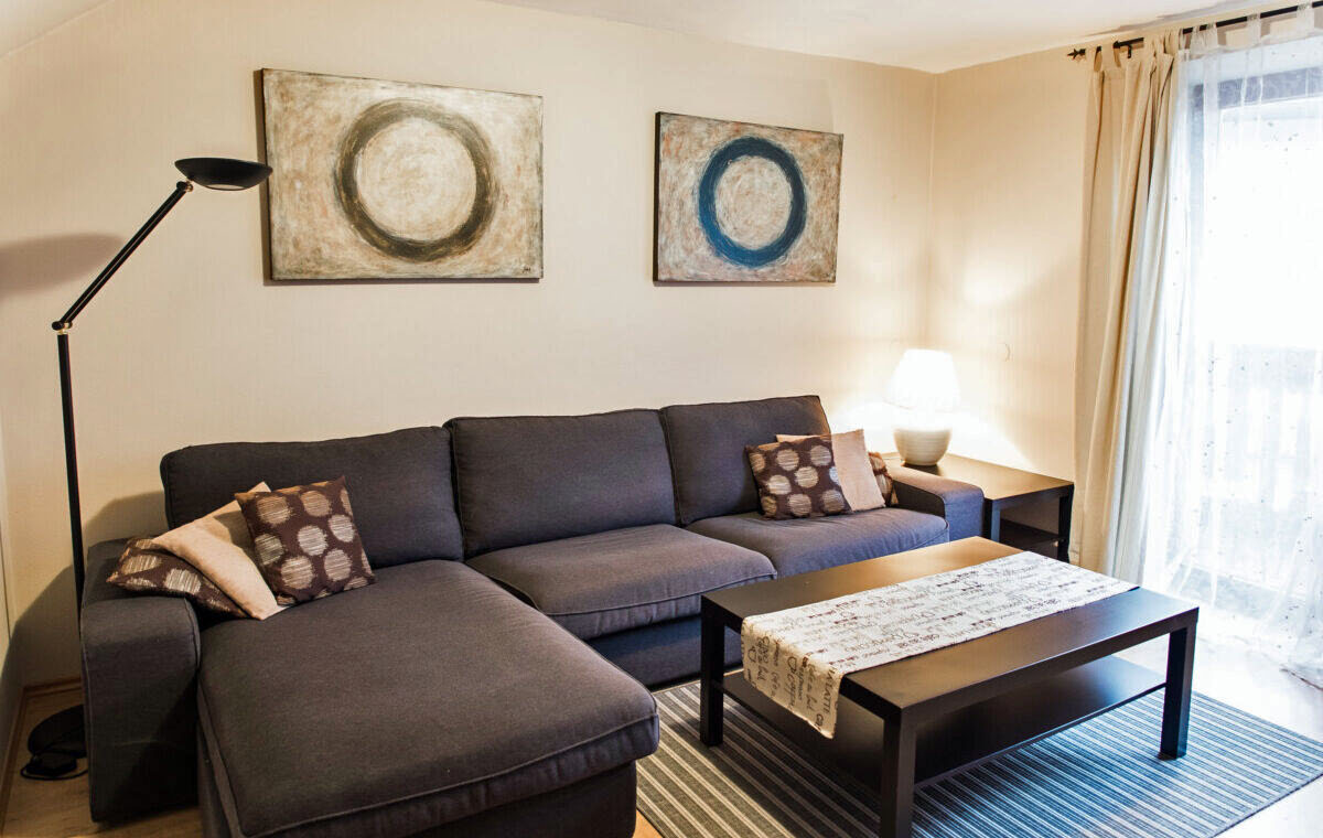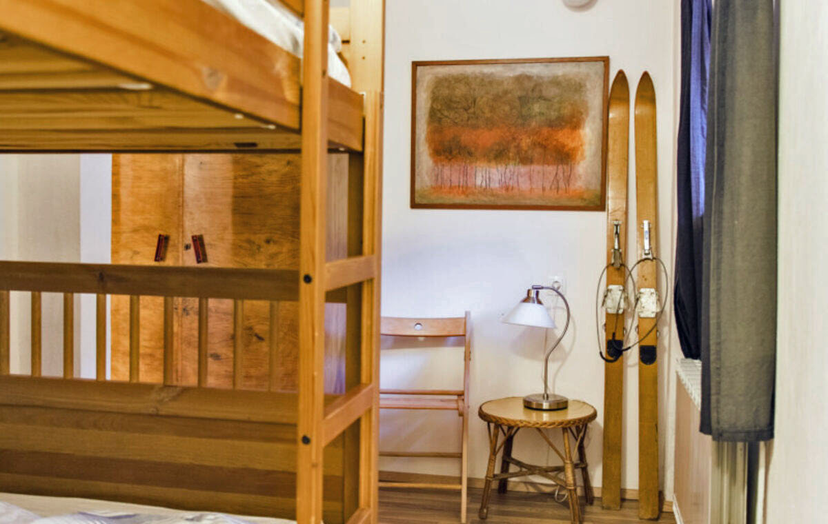 The first bedroom is equipped with a double bed, the second has a bunk bed. The apartment has a large comfortable living room with a TV and a sofa bed that can sleep two people. It is connected to the dining area and a fully equipped kitchen with all necessary appliances. There is also a washing machine in a separate room.