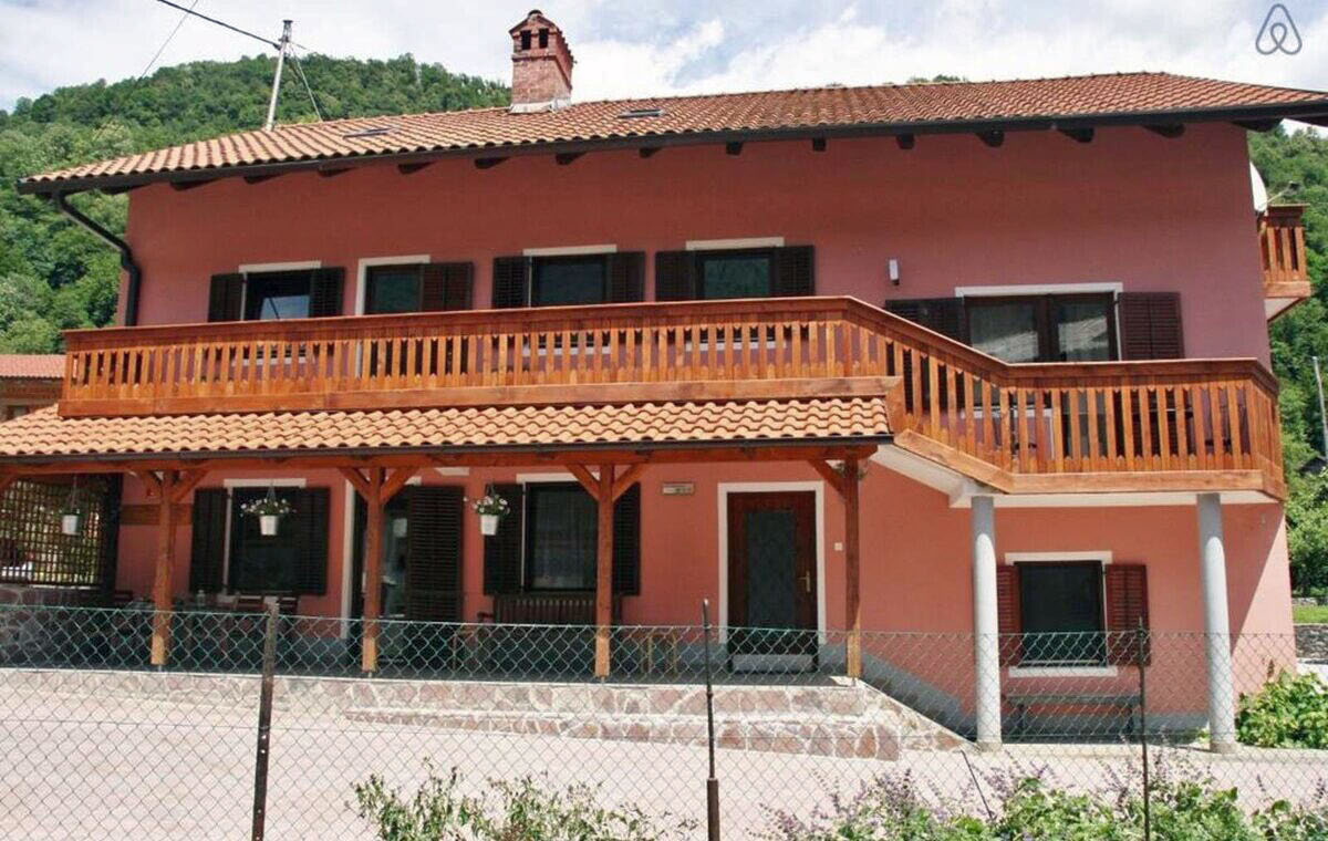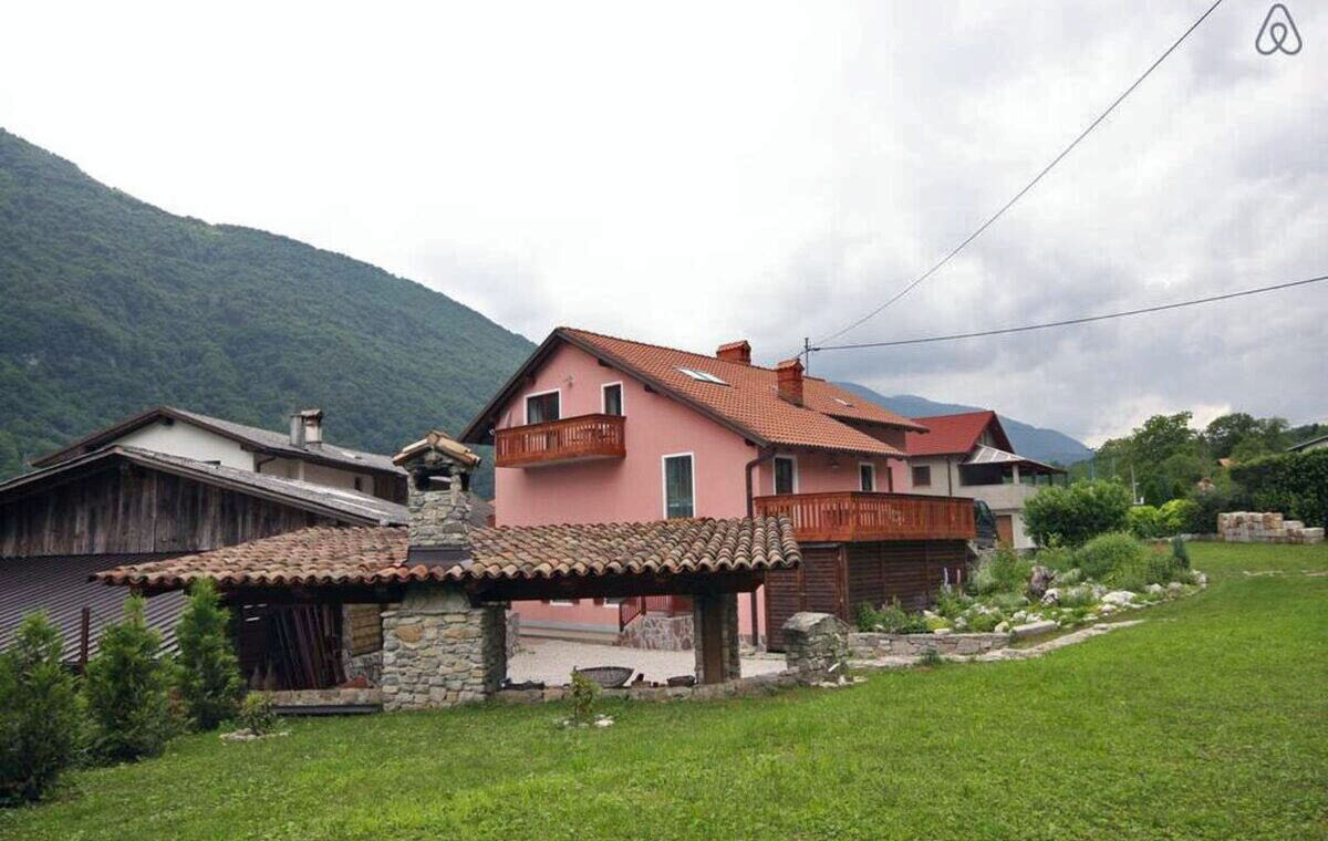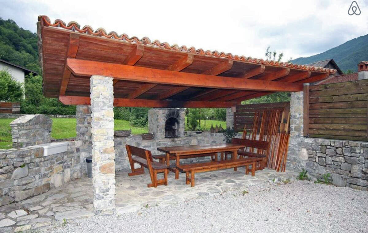 The surroundings are quiet and offer privacy. Excellent accommodation for families, hikers, nature lovers, kayakers, rafting enthusiasts, skydivers, fishermen, motorcyclists and winter sports enthusiasts. It is located in a quiet location in the village of Kamno, on the sunny side of the mountains. The beaches along the beautiful Soča River are only 300 meters away, and the Julian Alps with the Triglav National Park rise above the village. The towns of Kobarid and Tolmin with their restaurants, shops, museums and bars are only a 10-15 minute drive away. There is also a sports field, a bowling alley and a basketball court. Local residents and farmers in Kamno sell homemade cheese, yogurt, honey and other organic local products.