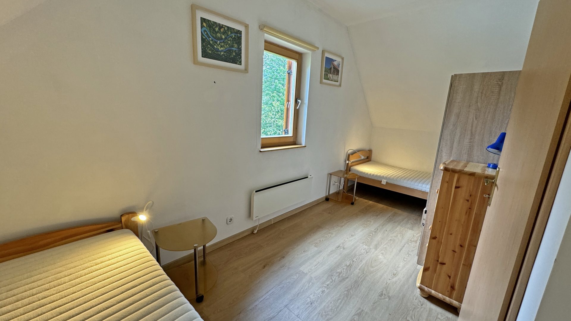 The cottage is situated in a quiet area with no traffic. Cars are parked away from the houses with pathways to the various houses. This house is first line towards the famous church and Lake Bohinj.