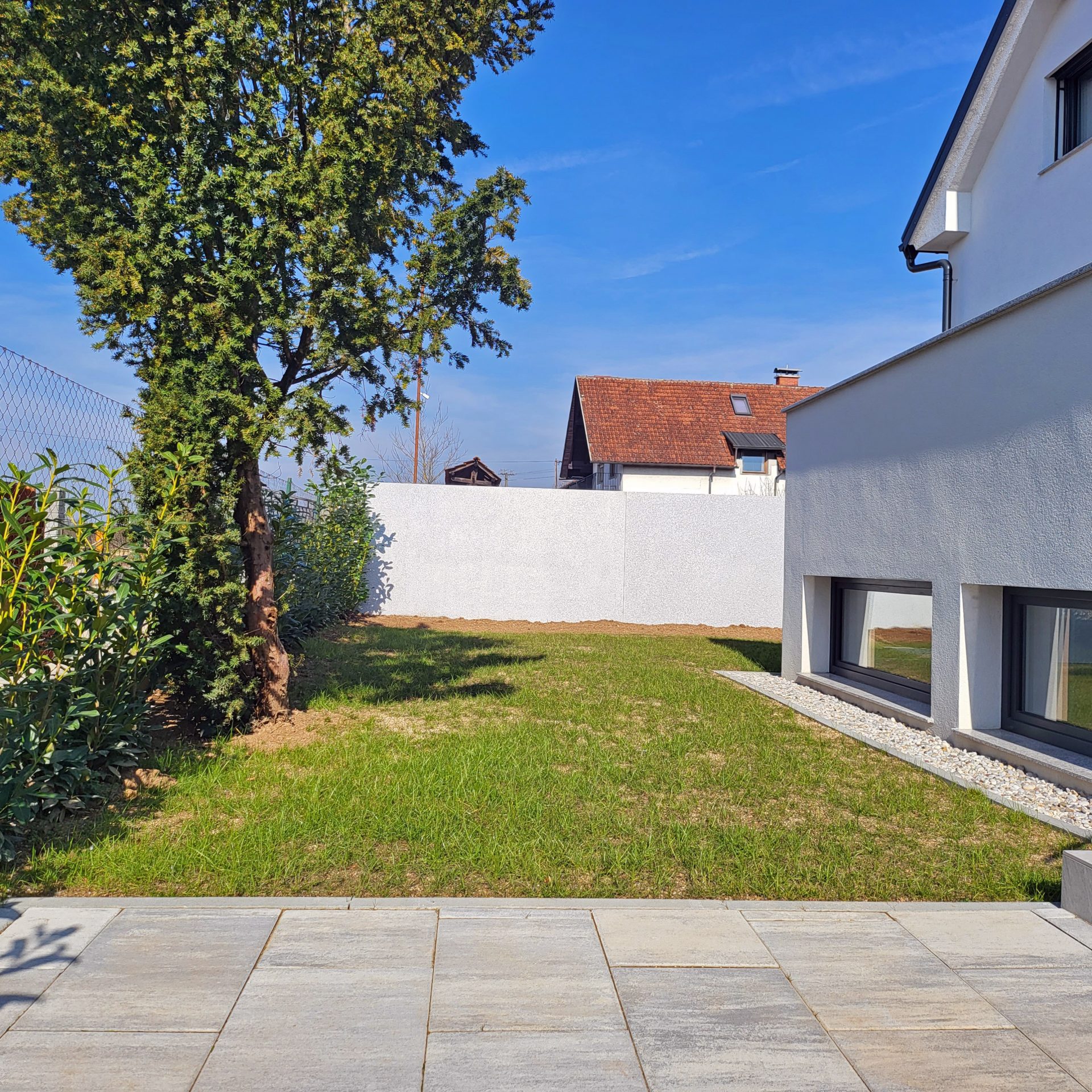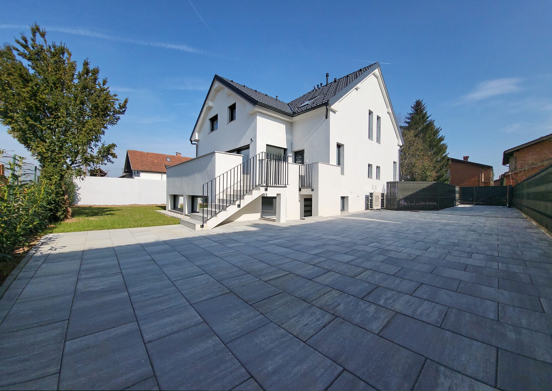 The semi-detached house has its own fenced yard with a modern patio door and mailbox post and intercom, three parking spaces and a green area. The twin is adapted to the modern pace of living, so that they offer the user everything he needs for a high quality of living, while at the same time not burdening him with unnecessary space.