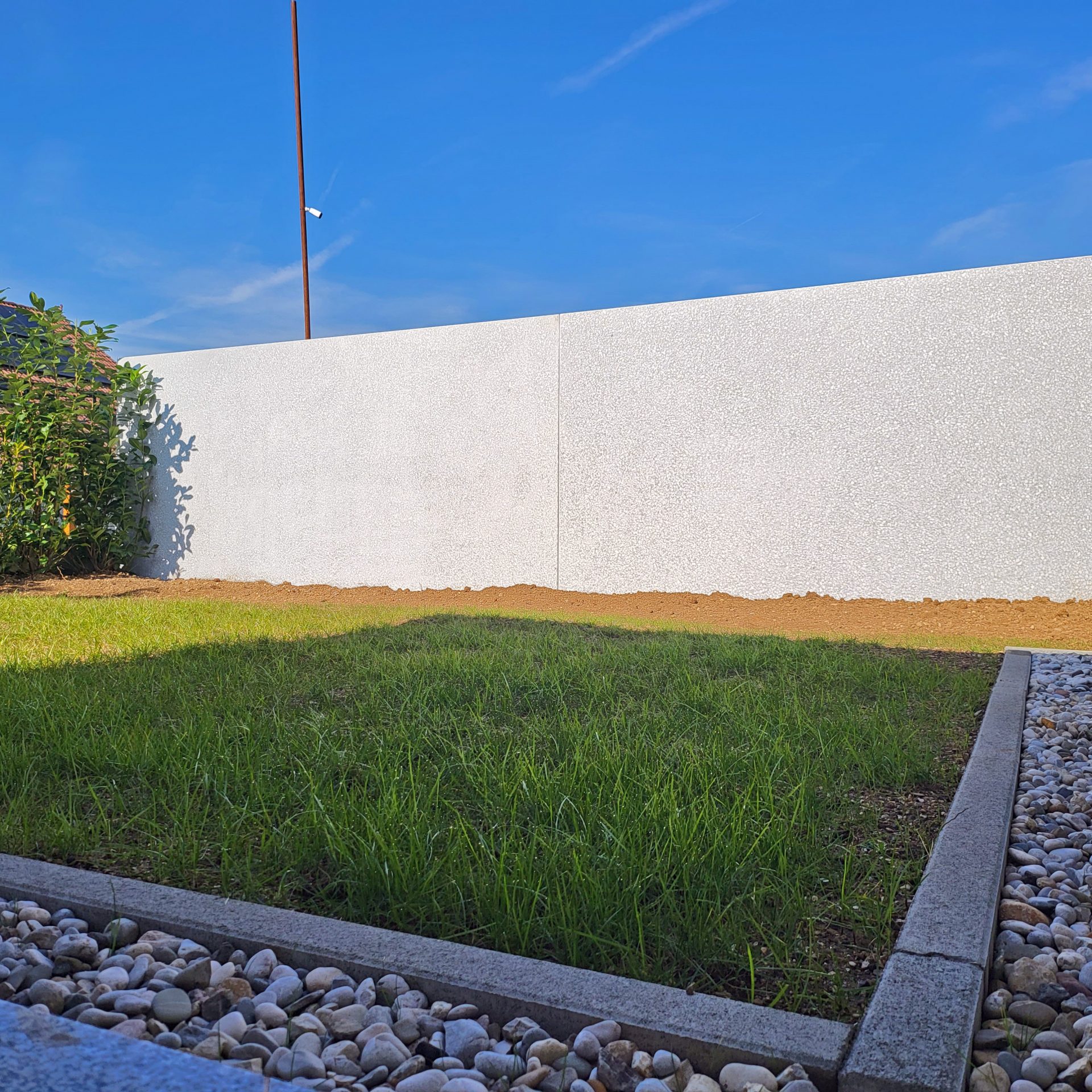 The land is surrounded by greenery (narrow-leaved laurel trees) and modern fences (concrete ground fence and panel fence), which allow for discretion and a sense of coexistence with nature. The fast growth of narrow-leaved laurels, which grow from 40 cm to 60 cm per year, will enable a quickly greening natural fence and perfect privacy.