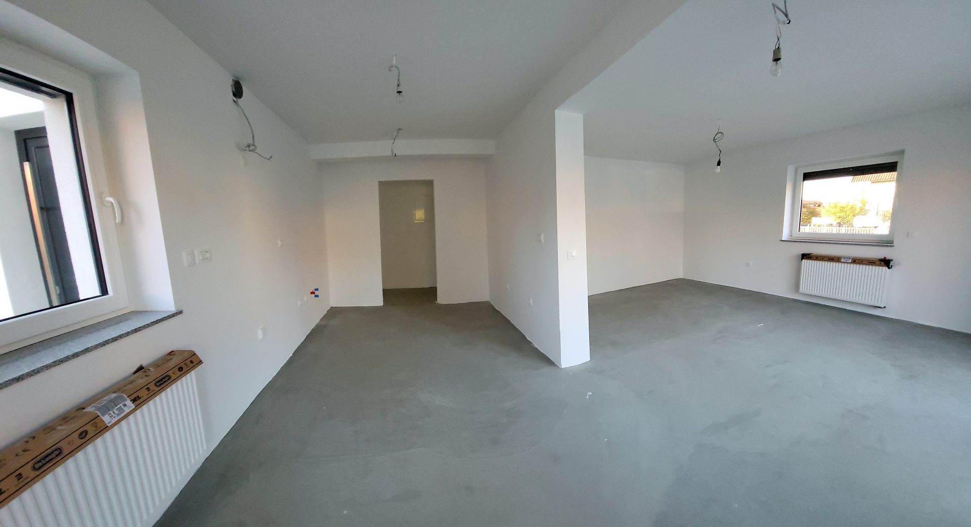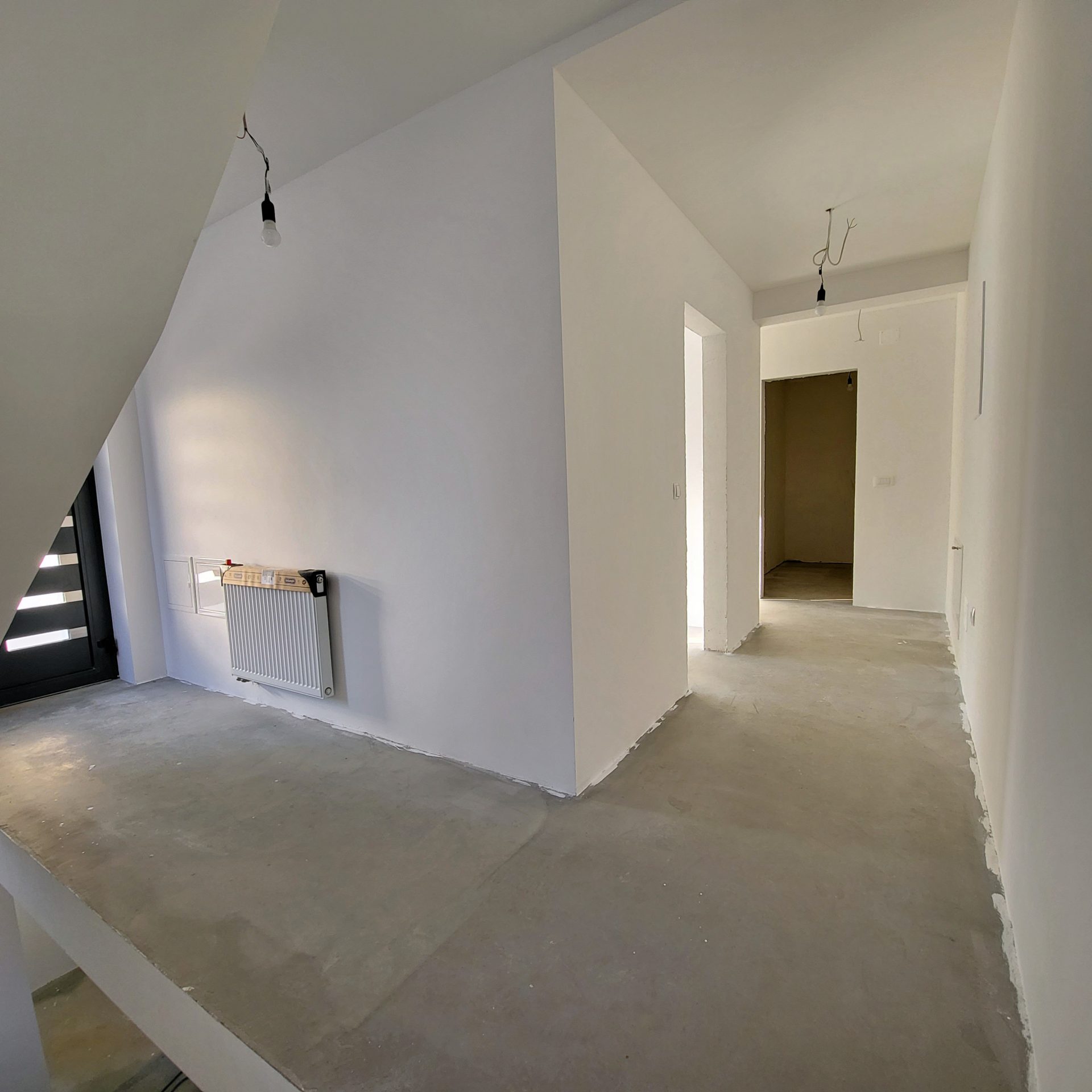 The building is being sold in the 4th extended construction phase. The house is made on a classic way, using brick as a material to build. The house does not yet have floor coverings (parquet, ceramics), interior doors and sanitary equipment, which allows the buyer to arrange the interior according to their wishes. The building already has a fine installation of electrical and mechanical installations. The walls are properly smoothed and painted in white colour.