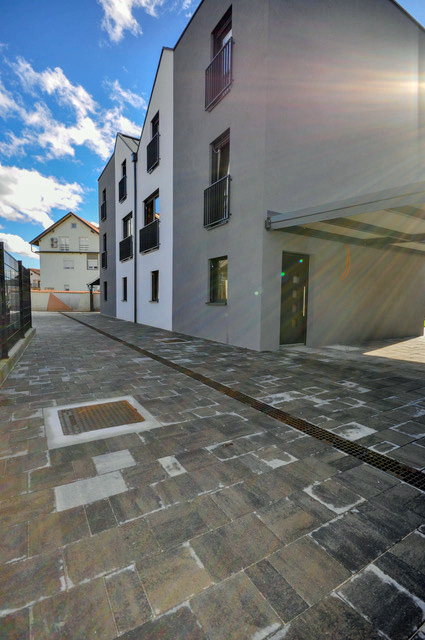 The surroundings of the semi-detached house are completed according to the conceptual design, which means neat and aesthetically attractive external surfaces.