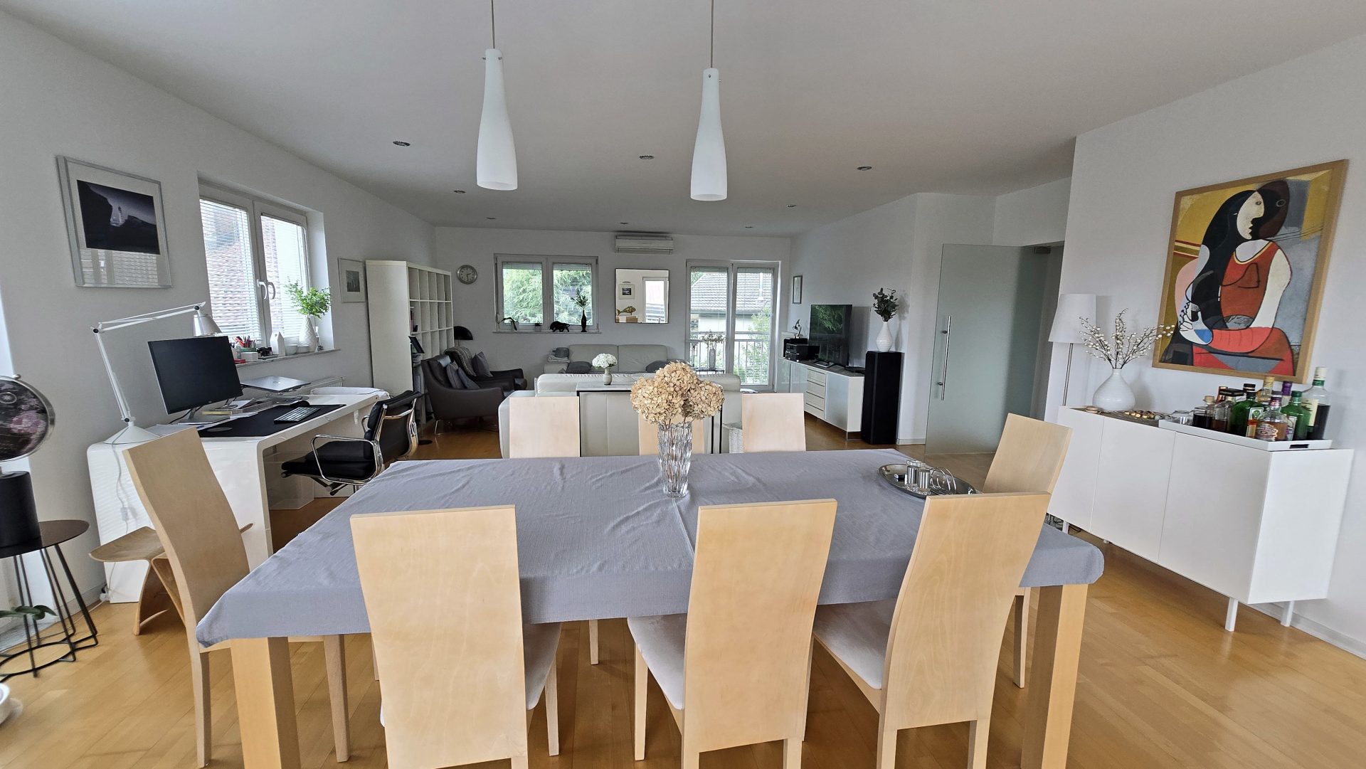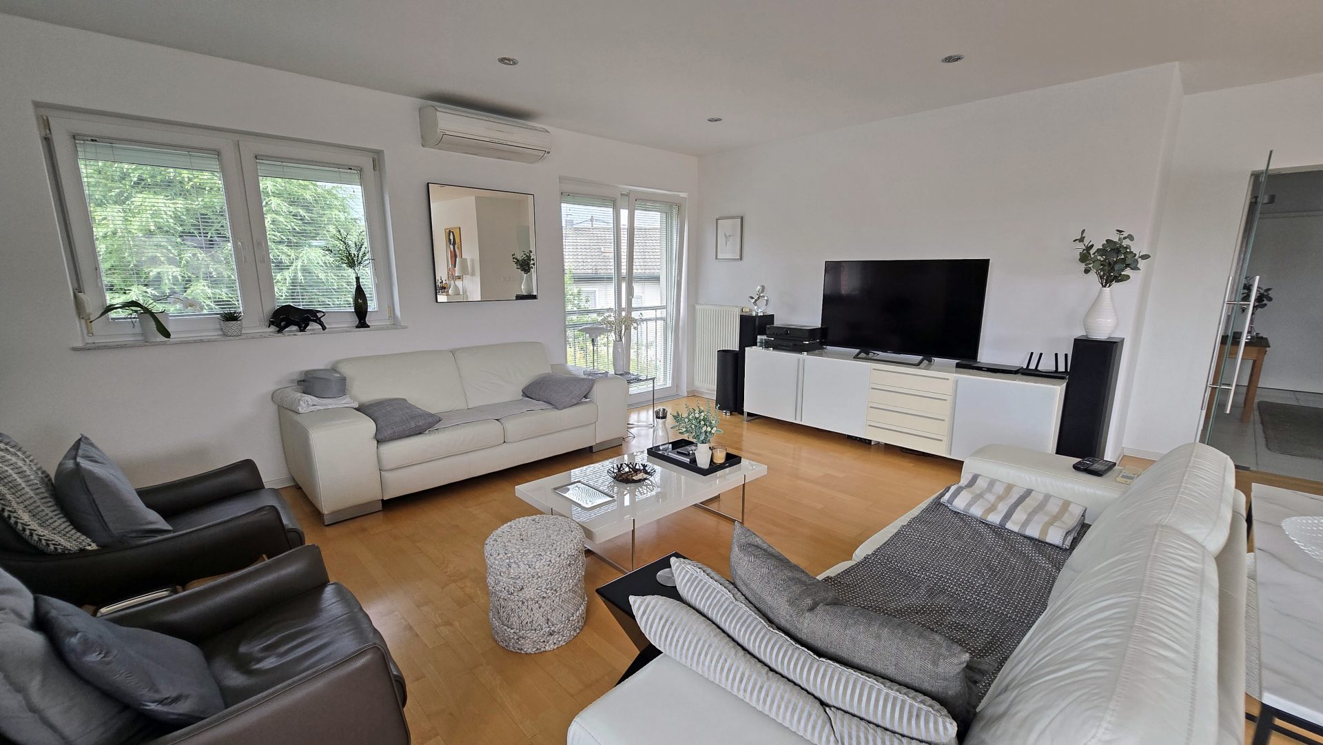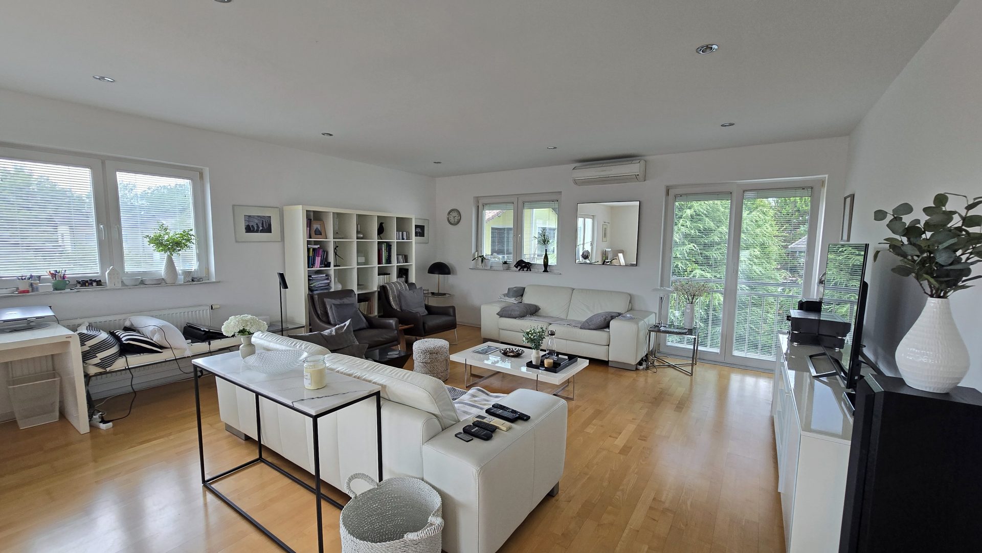 This apartment was fully renovated in 2006 and is being sold fully furnished. The furnishings include all major appliances (dishwasher, oven, fridge with freezer, stovetop), high-quality furniture, and air conditioning. All rooms are functionally furnished: the bedrooms have beds and wardrobes, while the living room includes a comfortable sofa and dining table.