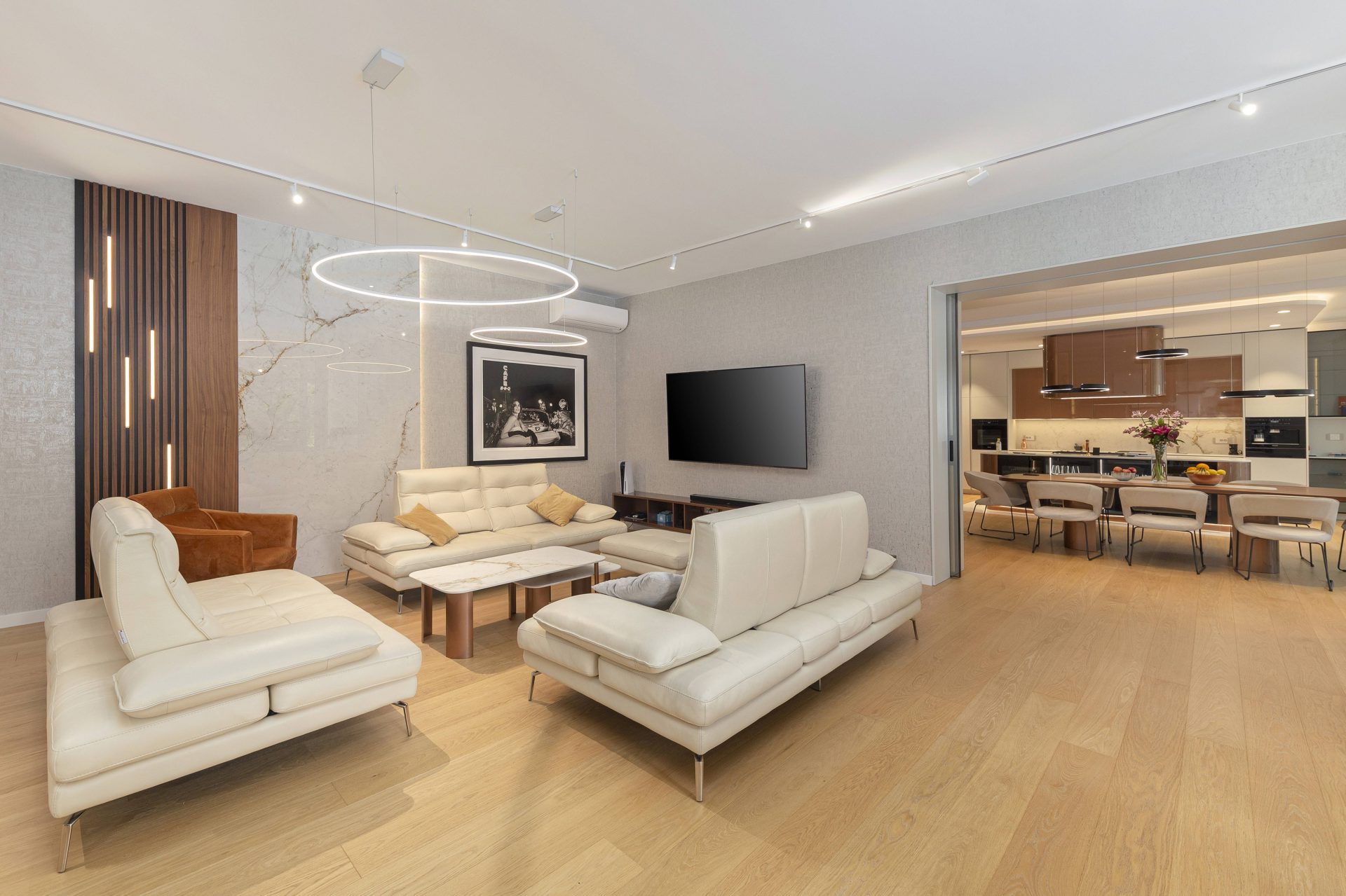 Situated in the sought-after Šumi Complex—one of the capital’s most prestigious residential buildings—this beautifully designed apartment offers 257 m² of interior living space and 31.5 m² of private balconies, delivering unmatched elegance and comfort.