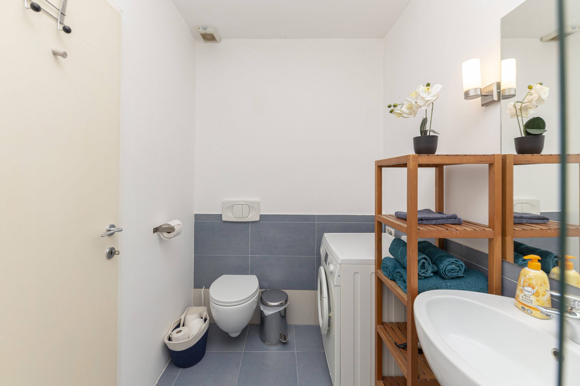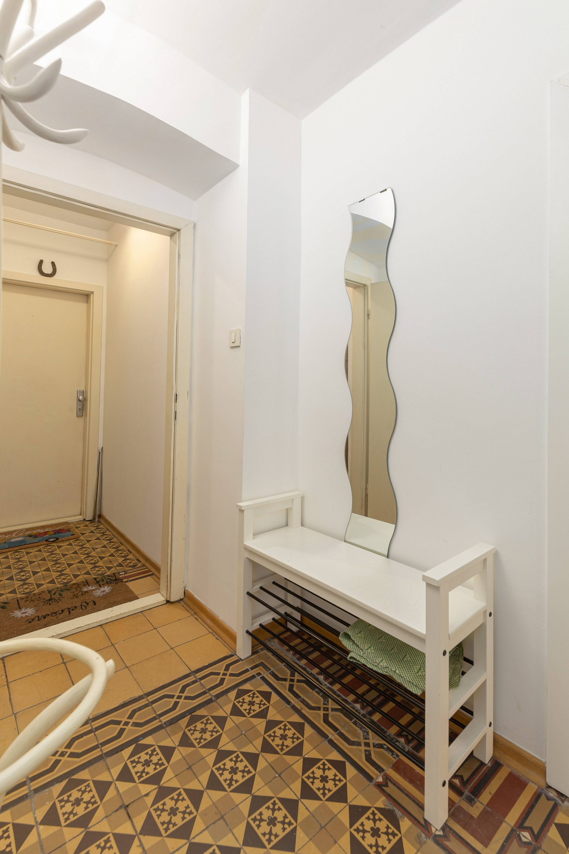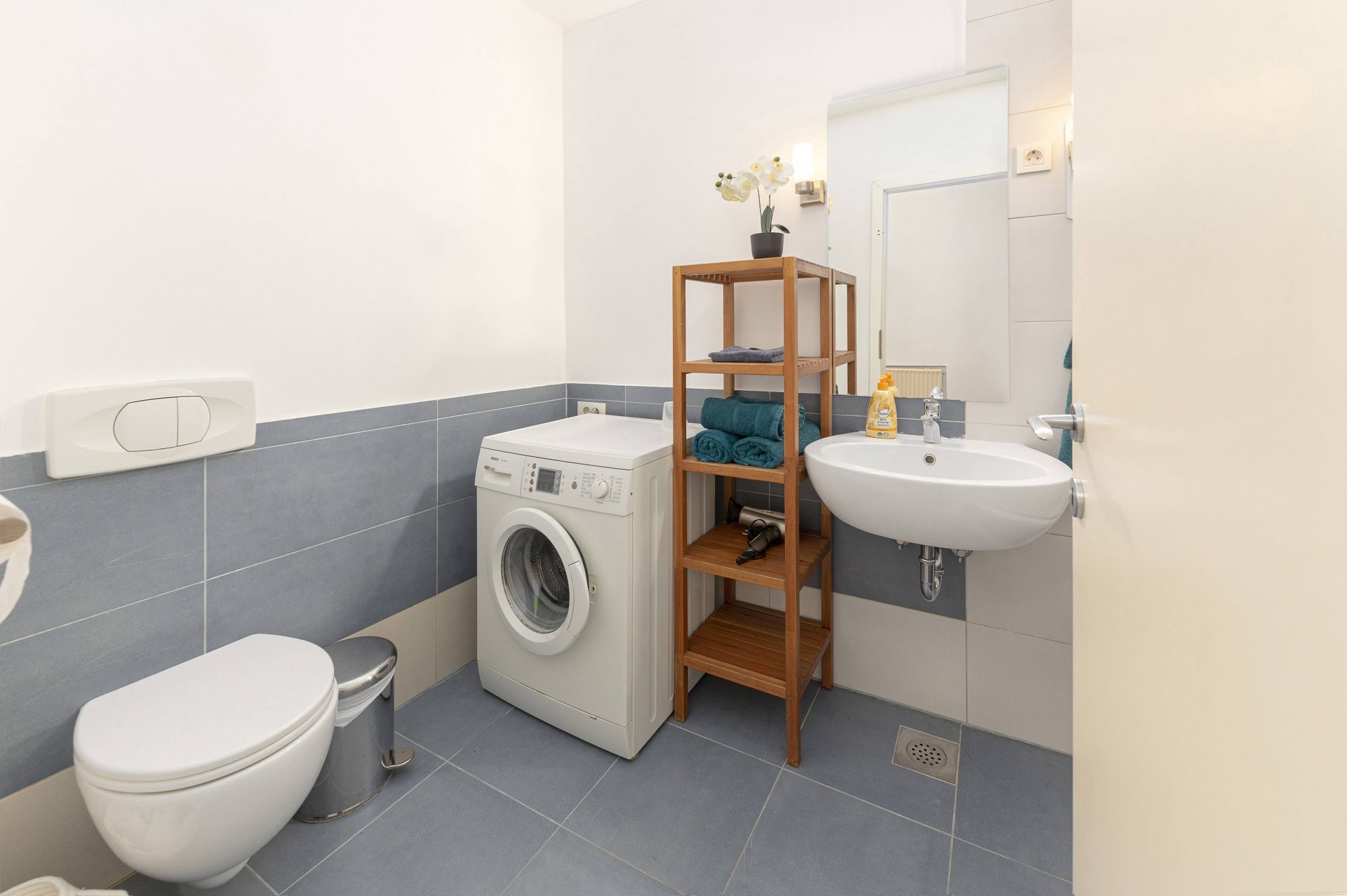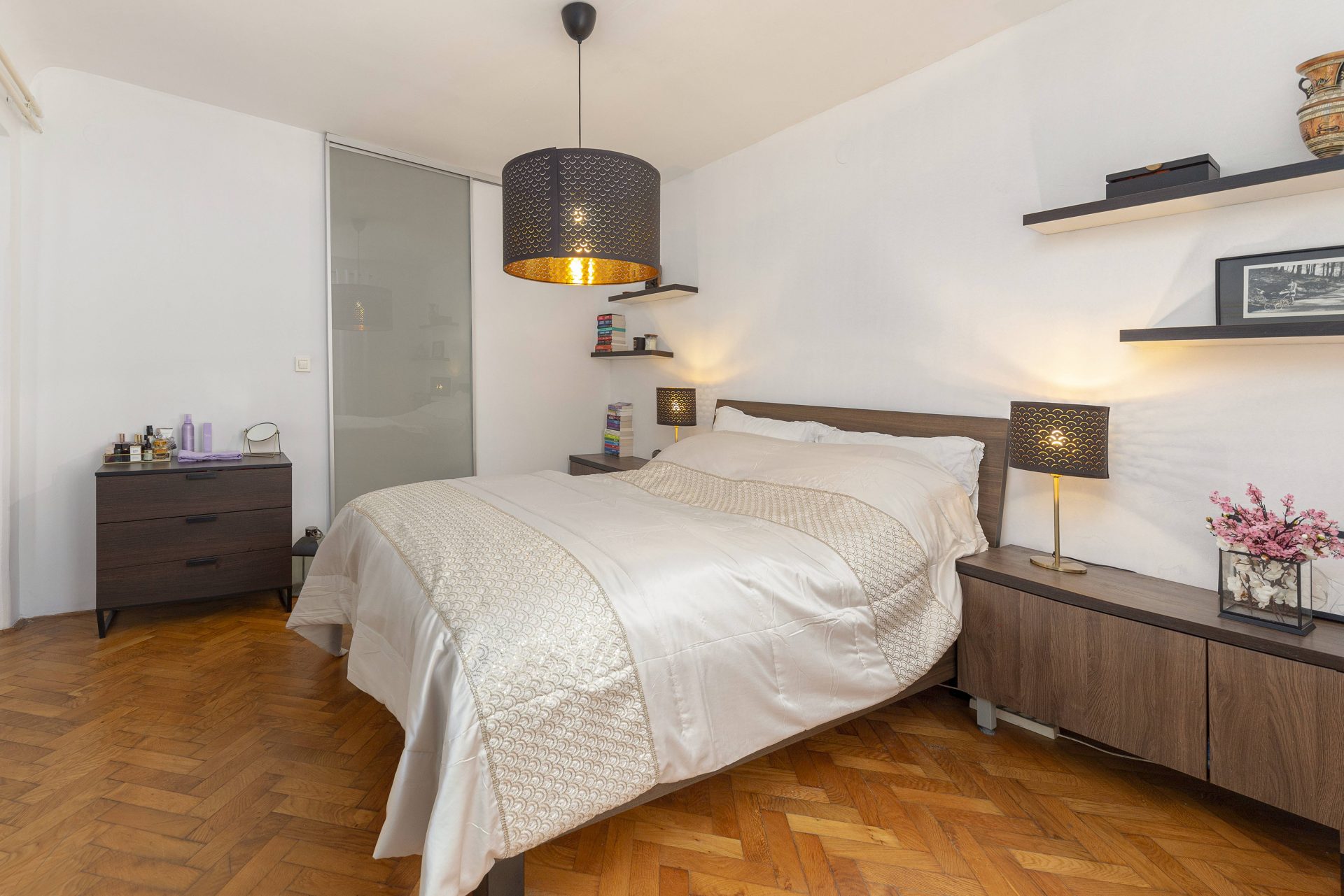 The smaller apartment is about 64m2 and comprises of a hallway, a well-sized kitchen, a large living & dining room. Off the living room is a lovely bedroom with direct access to a walk-in closet. Off the hallway are also a bathroom and a storage room. The living room and the bedroom overlook Gornji trg.