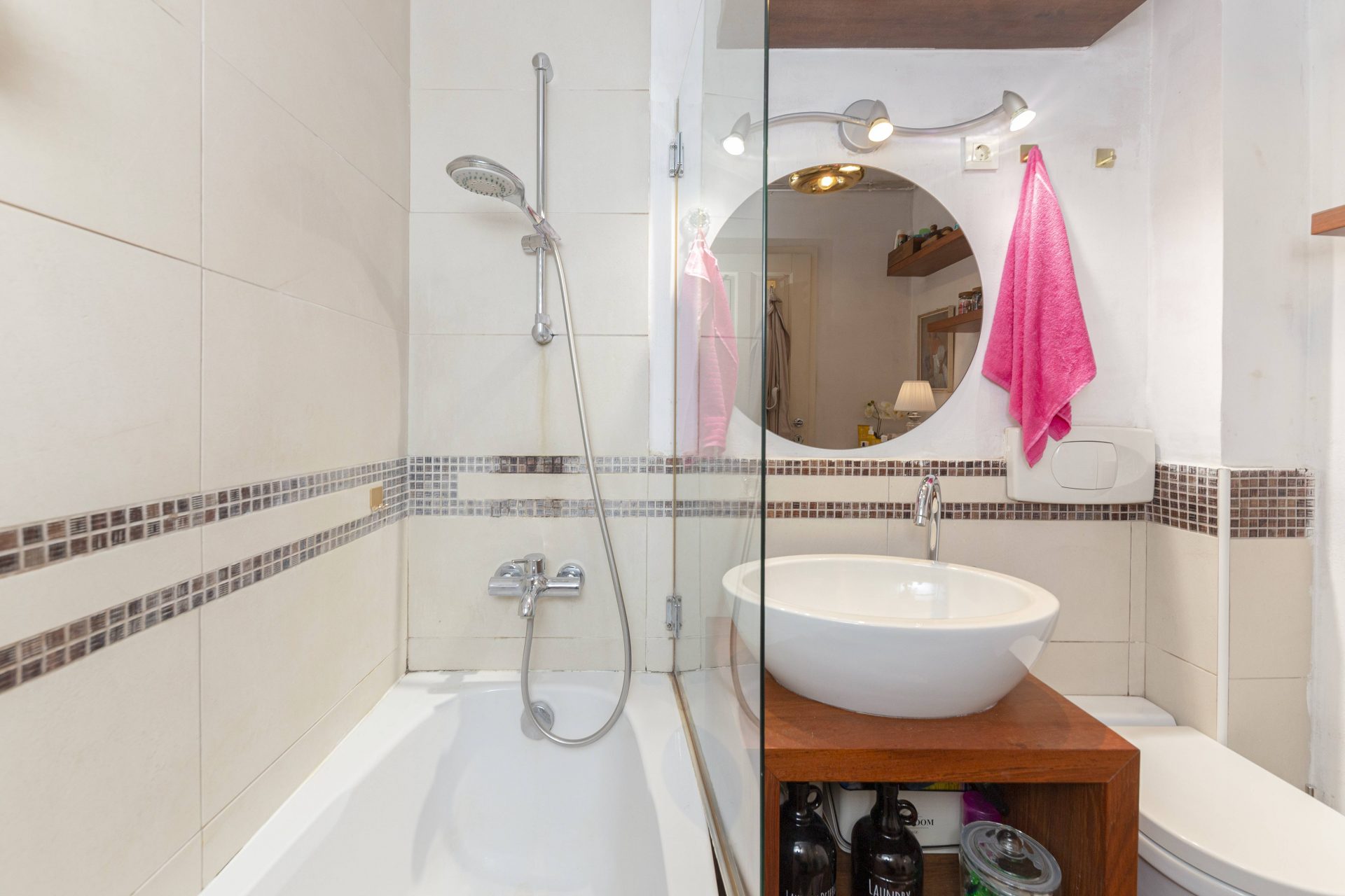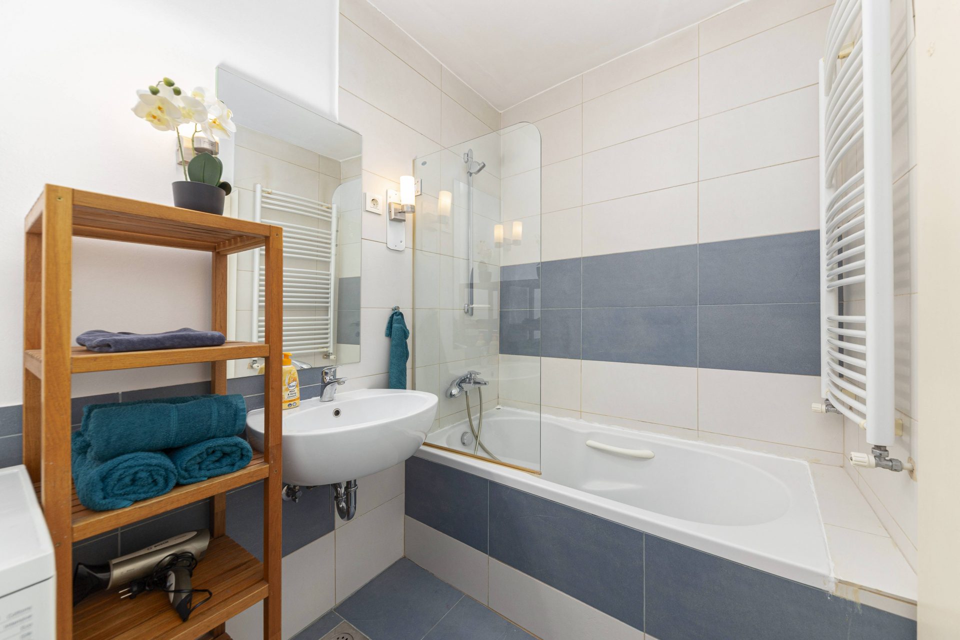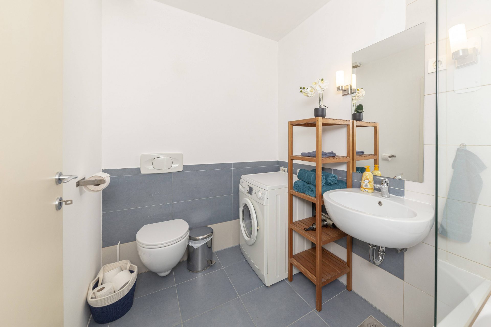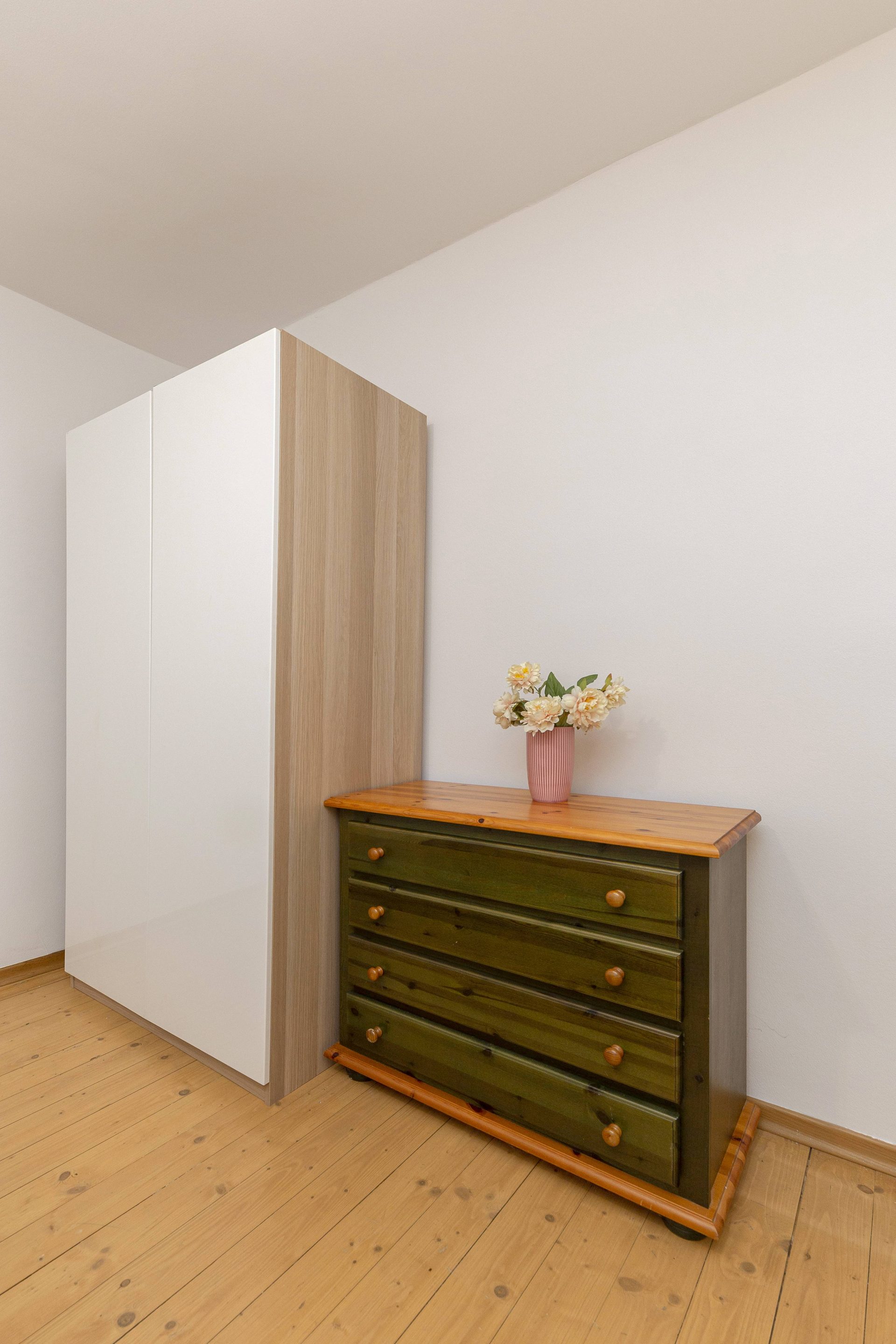 The smaller apartment is about 64m2 and comprises of a hallway, a well-sized kitchen, a large living & dining room. Off the living room is a lovely bedroom with direct access to a walk-in closet. Off the hallway are also a bathroom and a storage room. The living room and the bedroom overlook Gornji trg.