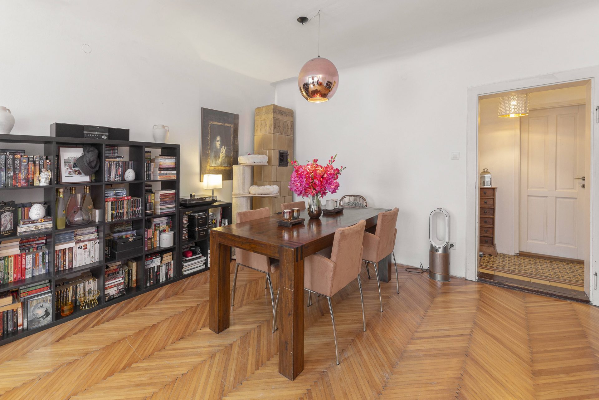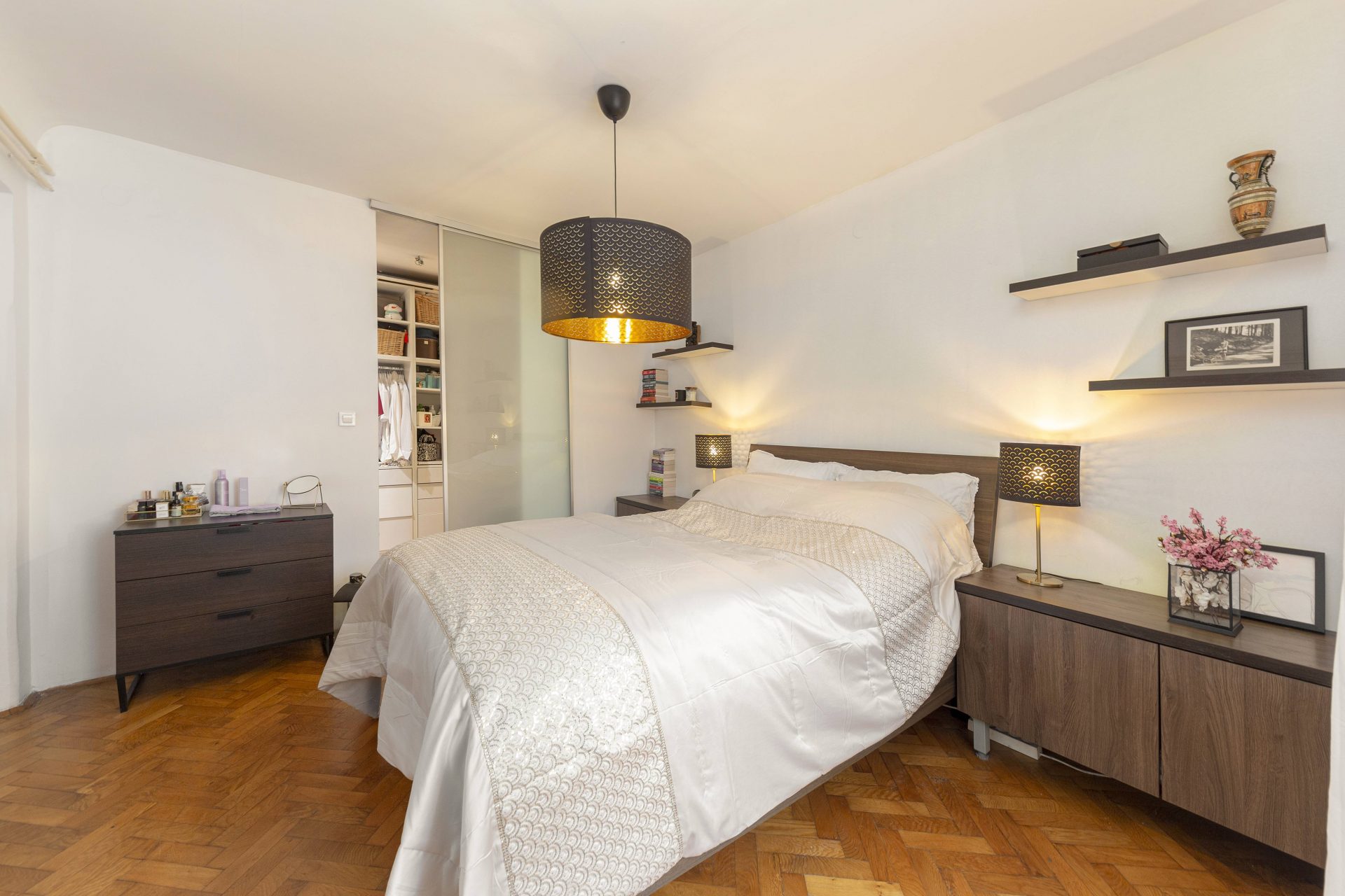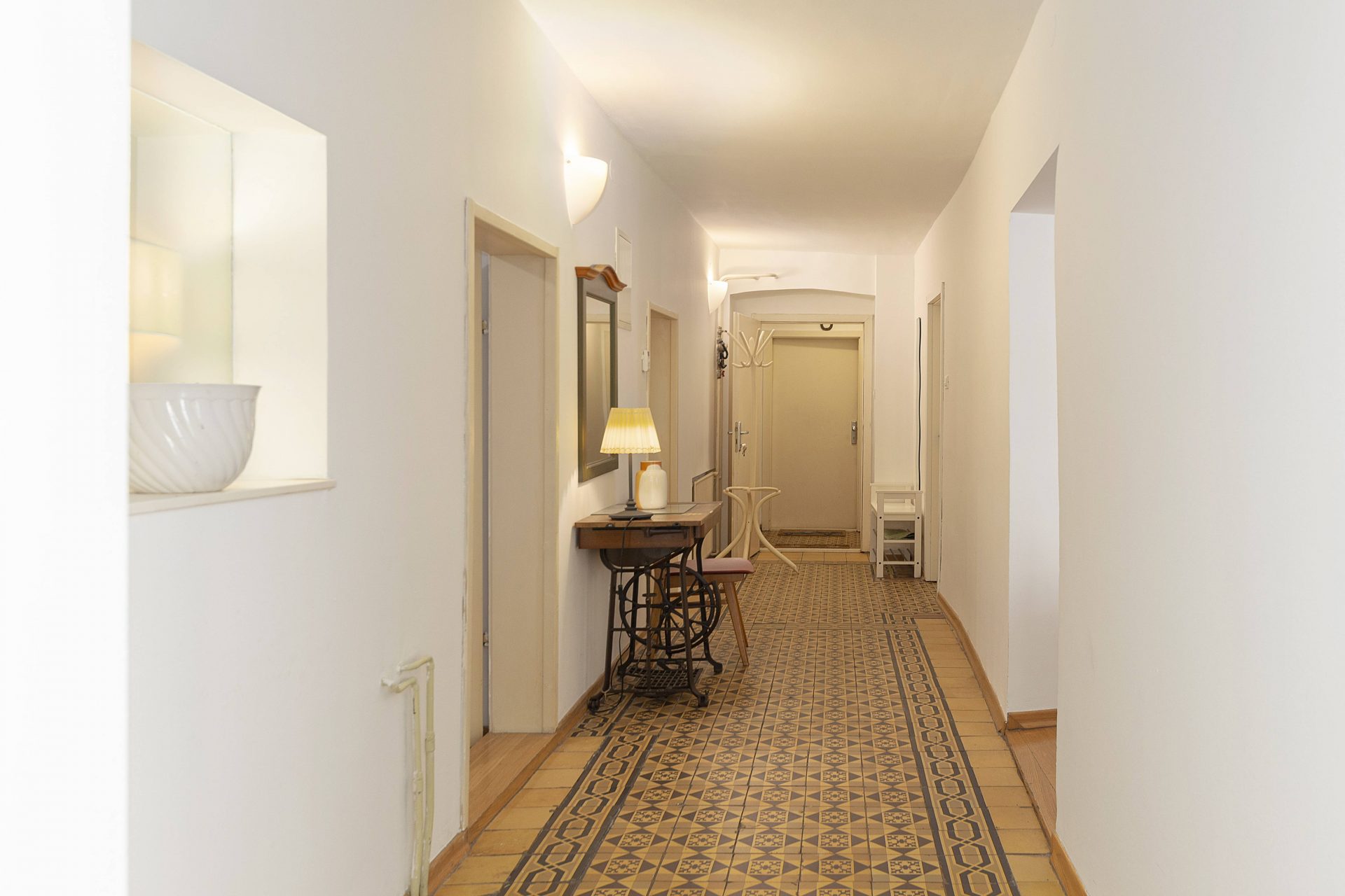 The apartment comes with a cellar of 12m2 on the ground floor. It sells partly furnished (both kitchens, one bedroom and walk-in closet). All installations were renewed in 2005, when the new windows with mosquito nets and roller shutters were also installed. City gas heating with its own gas furnace. High ceiling throughout. Possibility of obtaining the parking permit. If required, the apartments could be converted back.