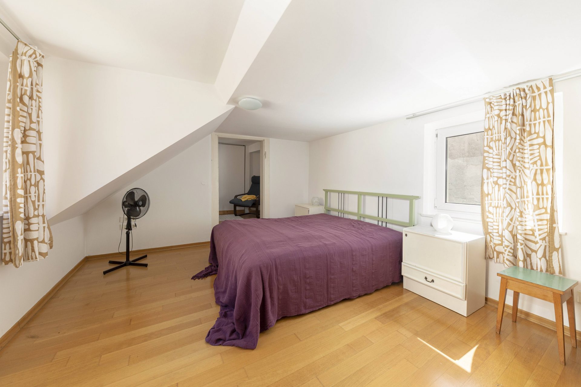 The apartment is spacious and bright and is spread over the whole second floor of the building. It is currently divided into two apartments with a communal entrance hall.