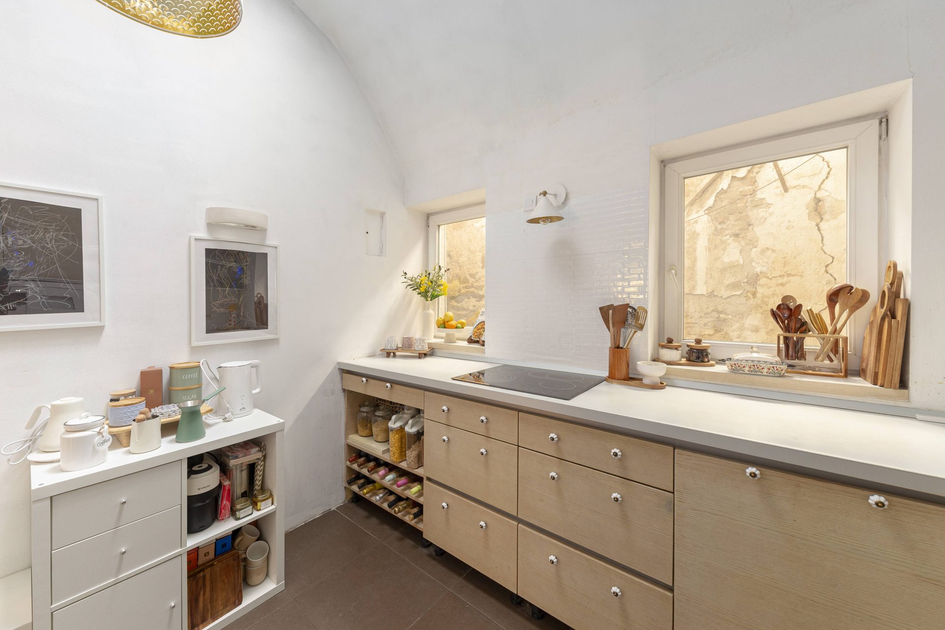 The larger unit is approximately 89m2 and comprises of a wide hallway, two spacious bedrooms, one with a lovely office niche, a lovely living & dining room and a kitchen.  Also in this part is a large storage room.