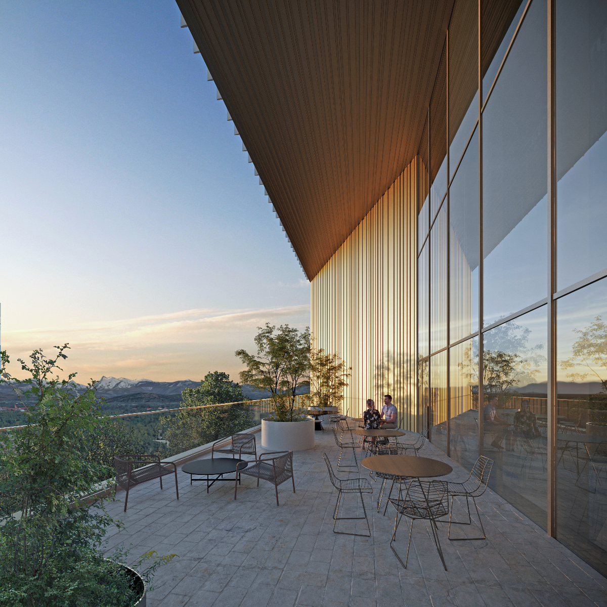 Terraces on the floors: On the 2nd and 6th floors there is a larger covered outdoor terrace, which is intended for all employees in business premises.