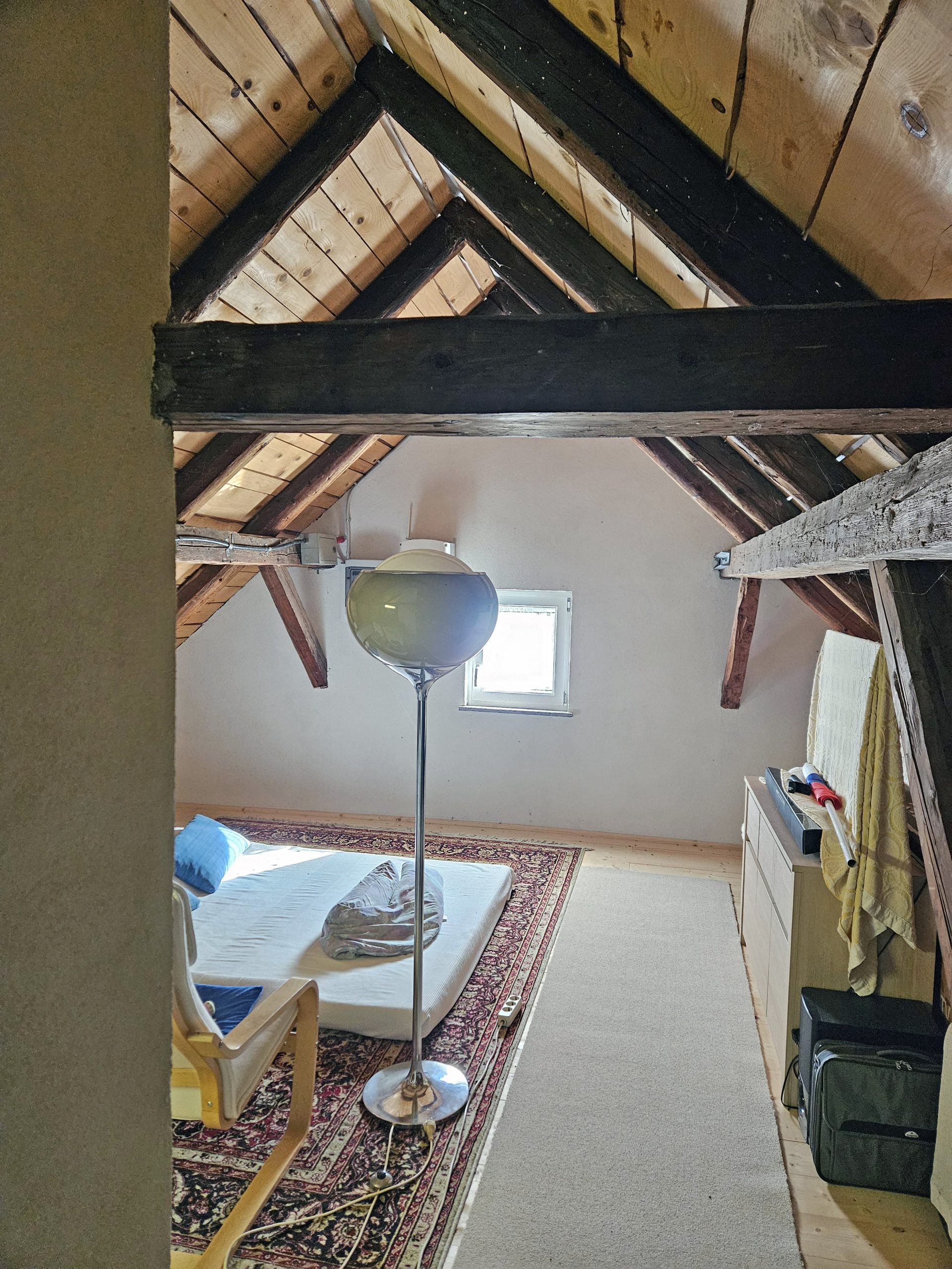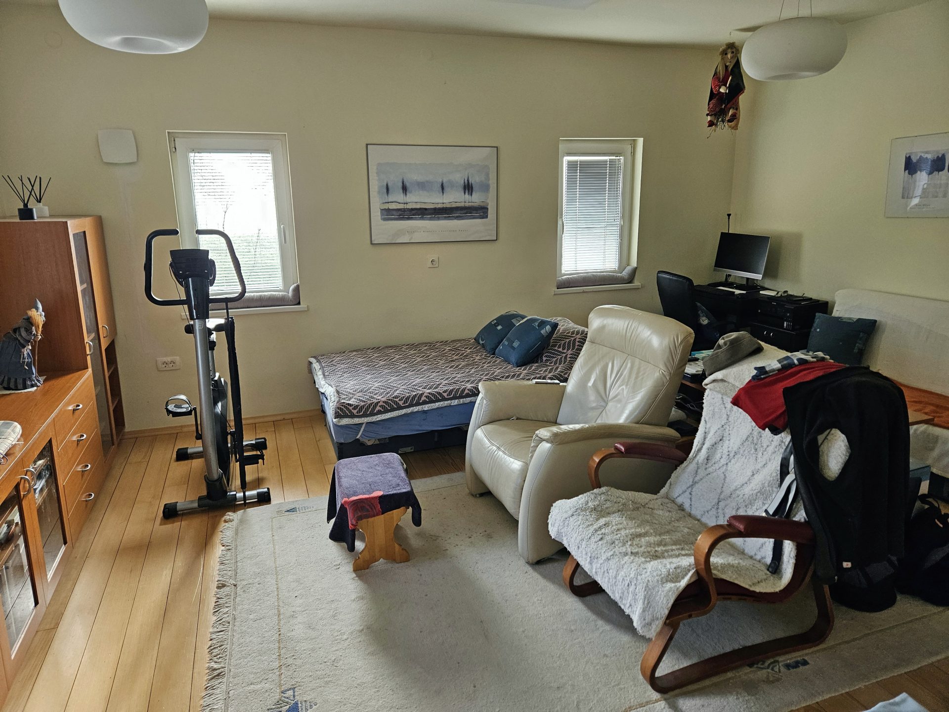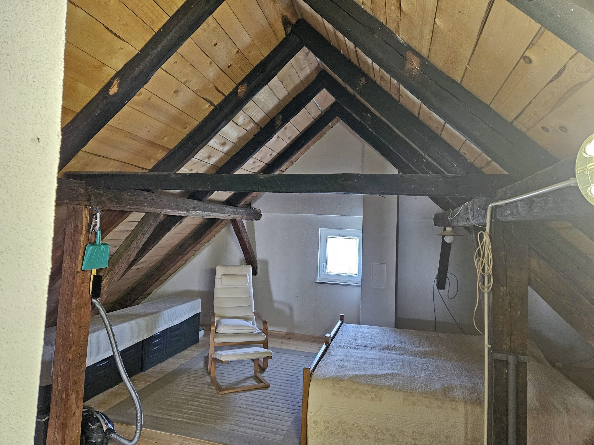 The ground floor includes a main entrance, hallway, a large living room, a kitchen with a dining area, a pantry, bathroom, and one bedroom. In the basement, you’ll find a spacious garage and two storage rooms, one of them is basically an utility space: laundry with shower.The attic offers potential for additional living space.