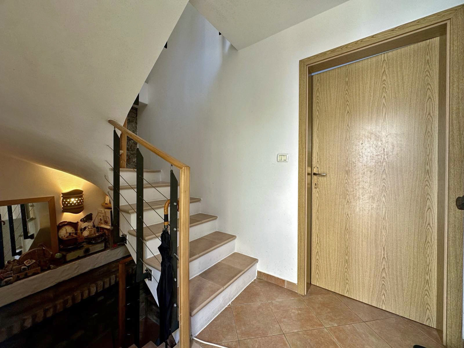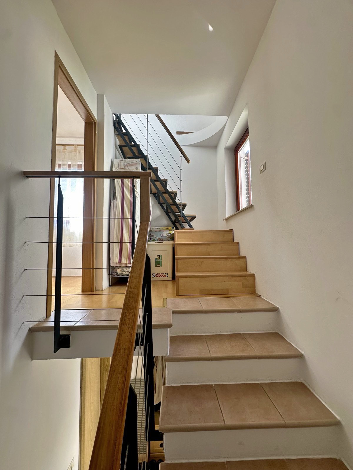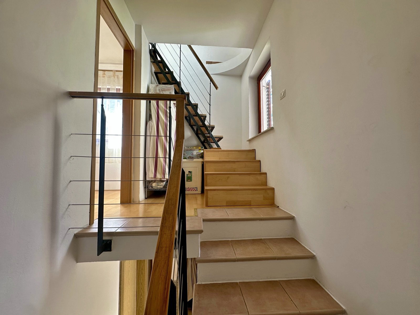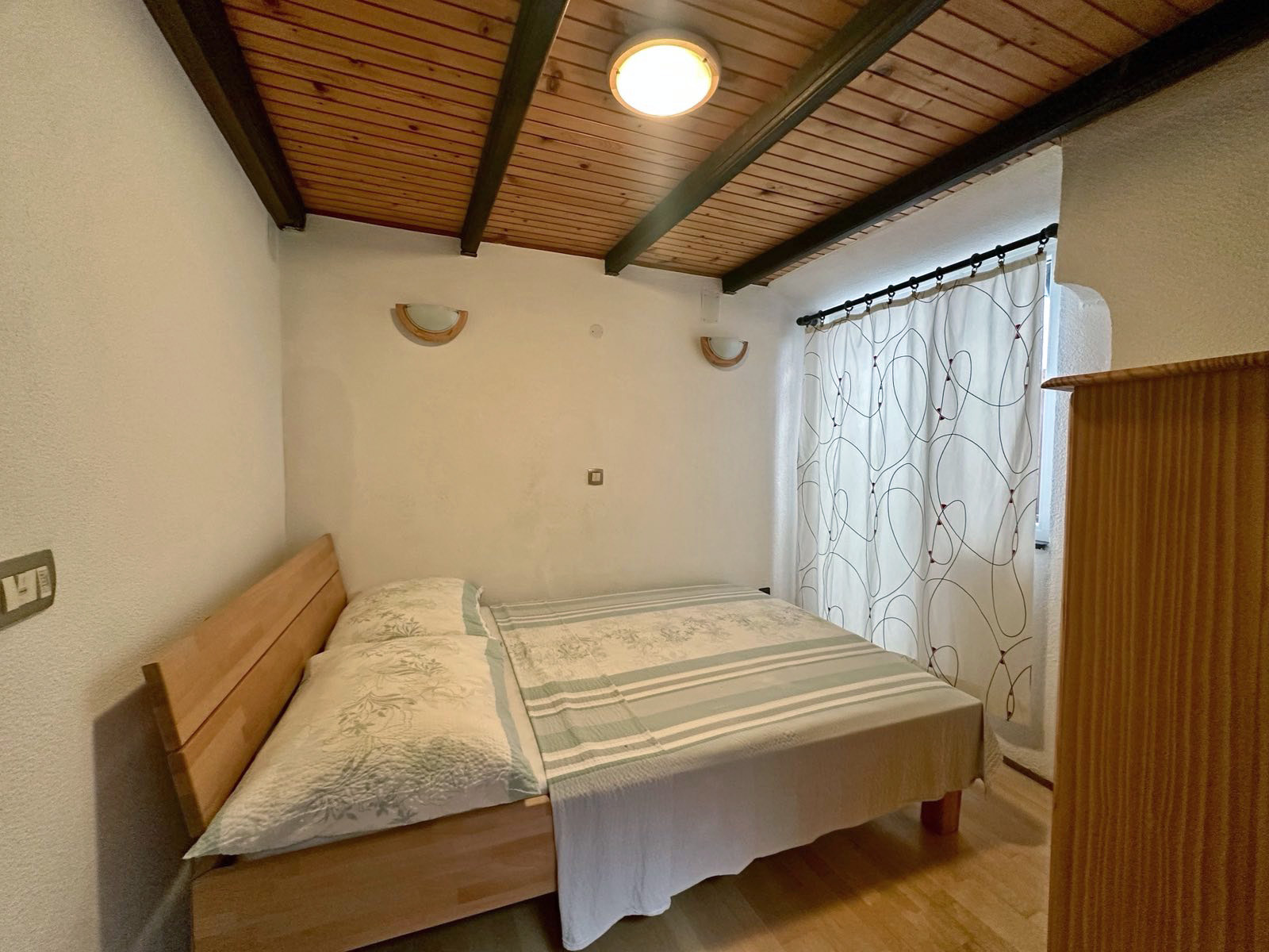 On the second floor there is a spacious bedroom connected to the terrace that offers great views of the red rooftops of Piran.