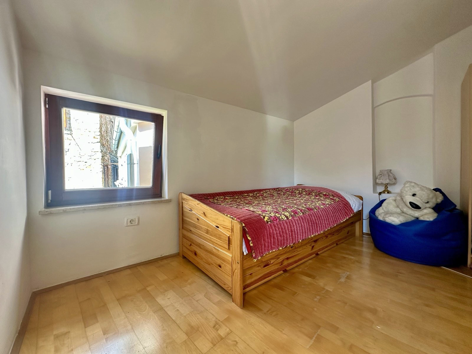 On the first floor there is a large and bright bedroom.