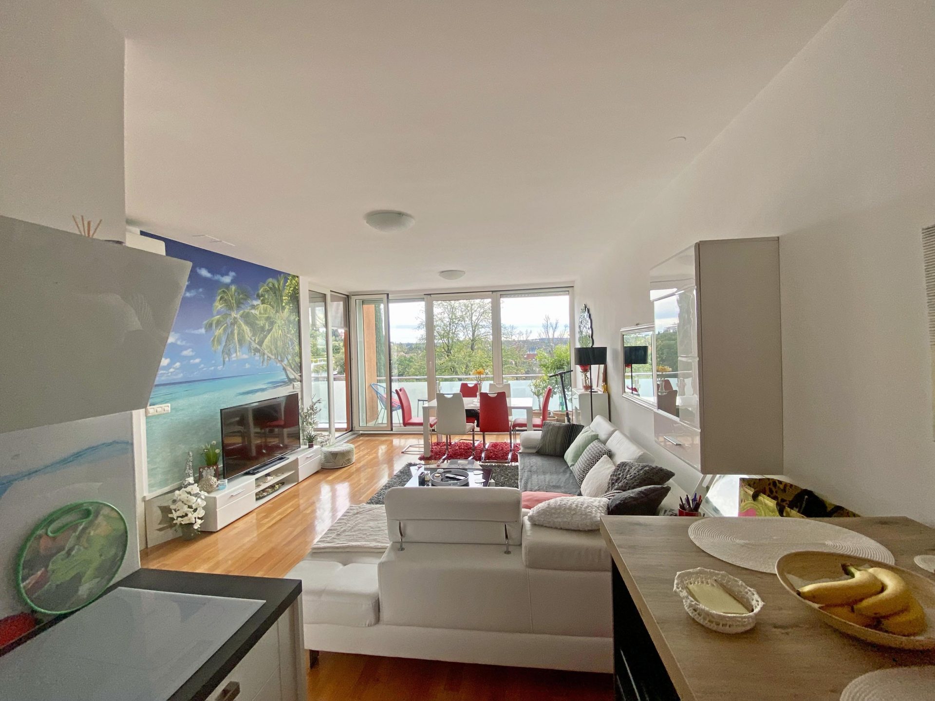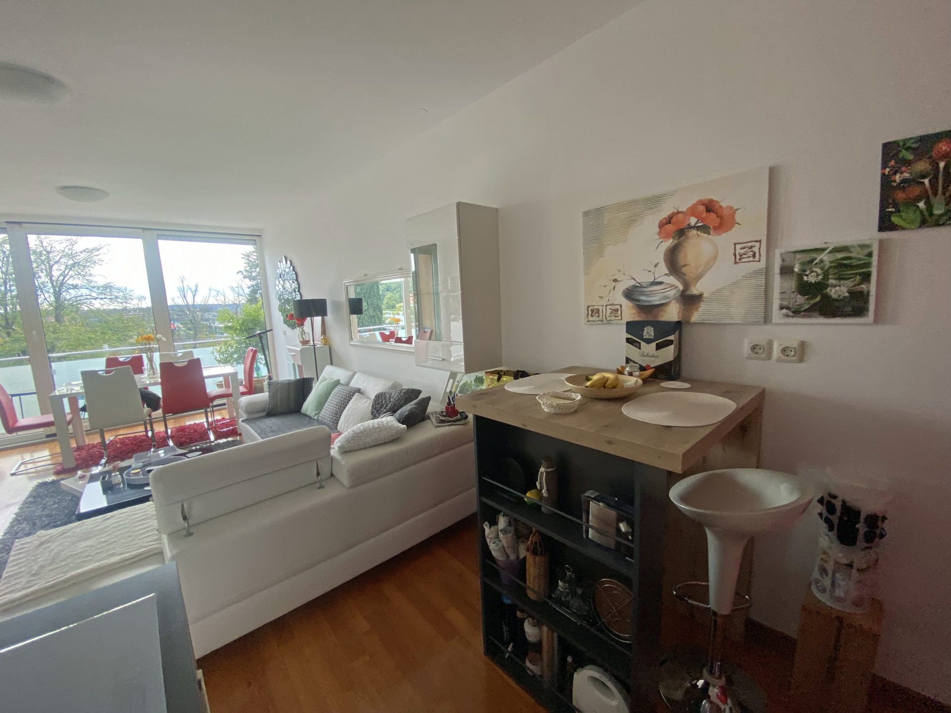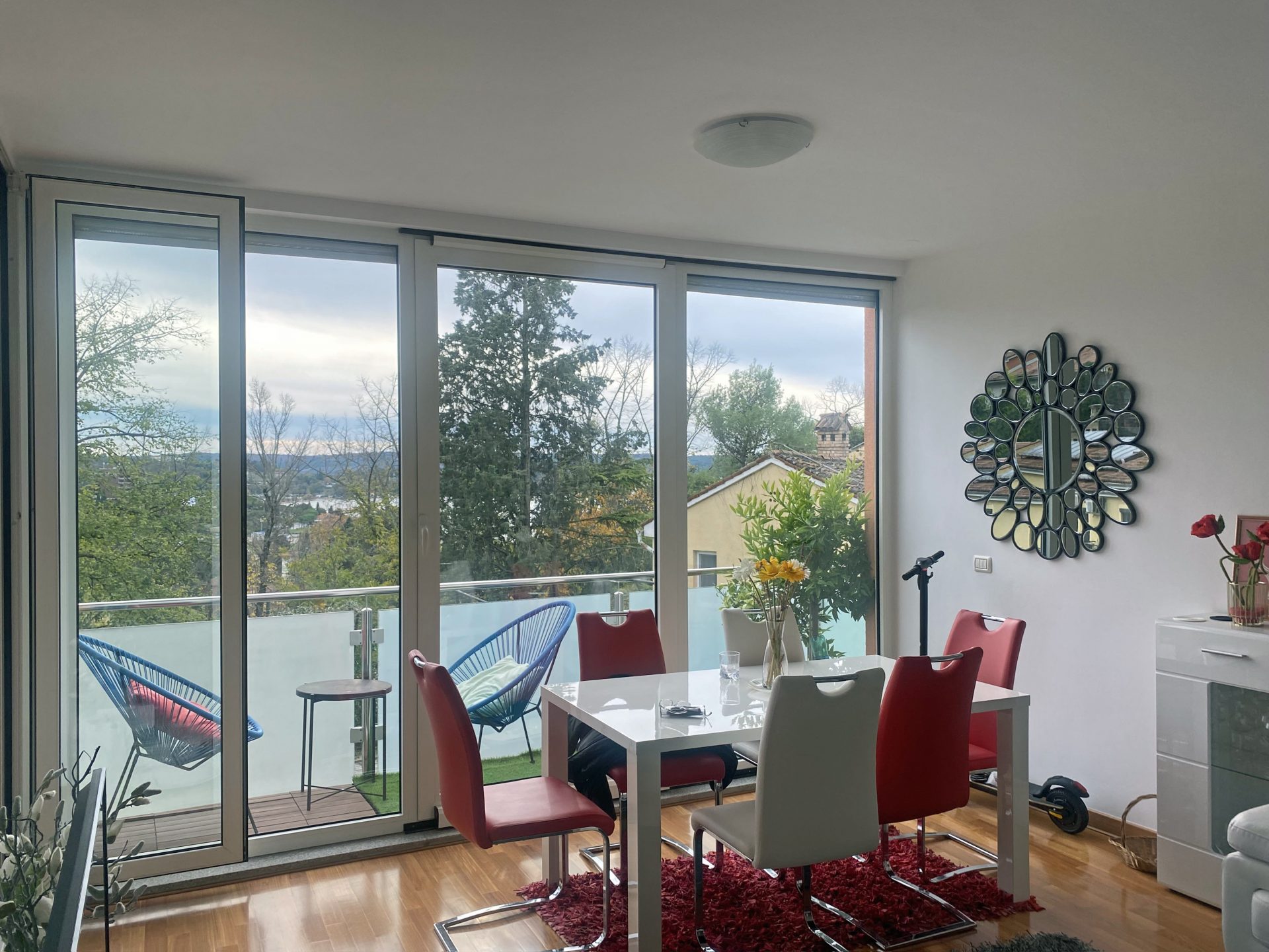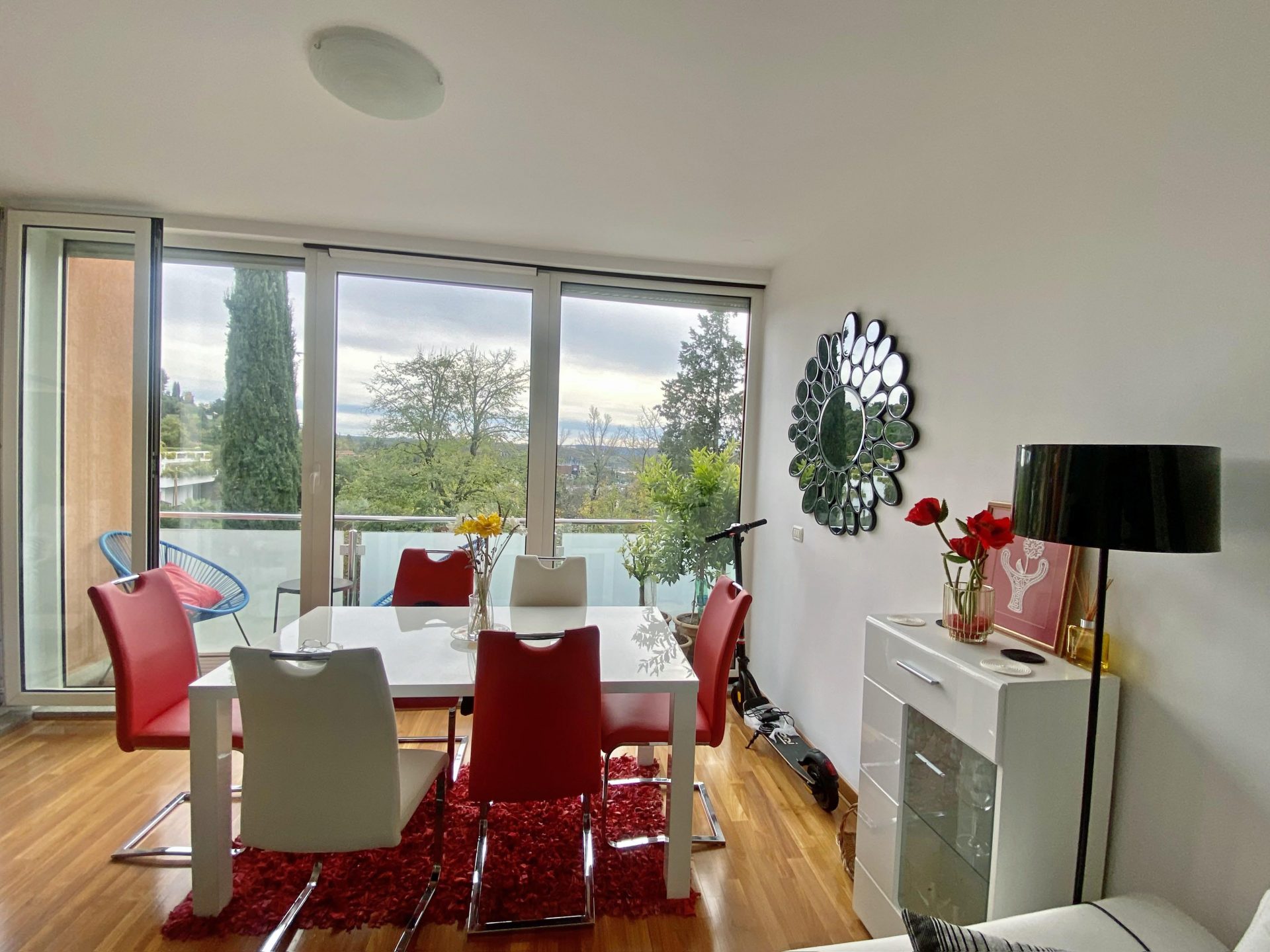 The apartment faces south.