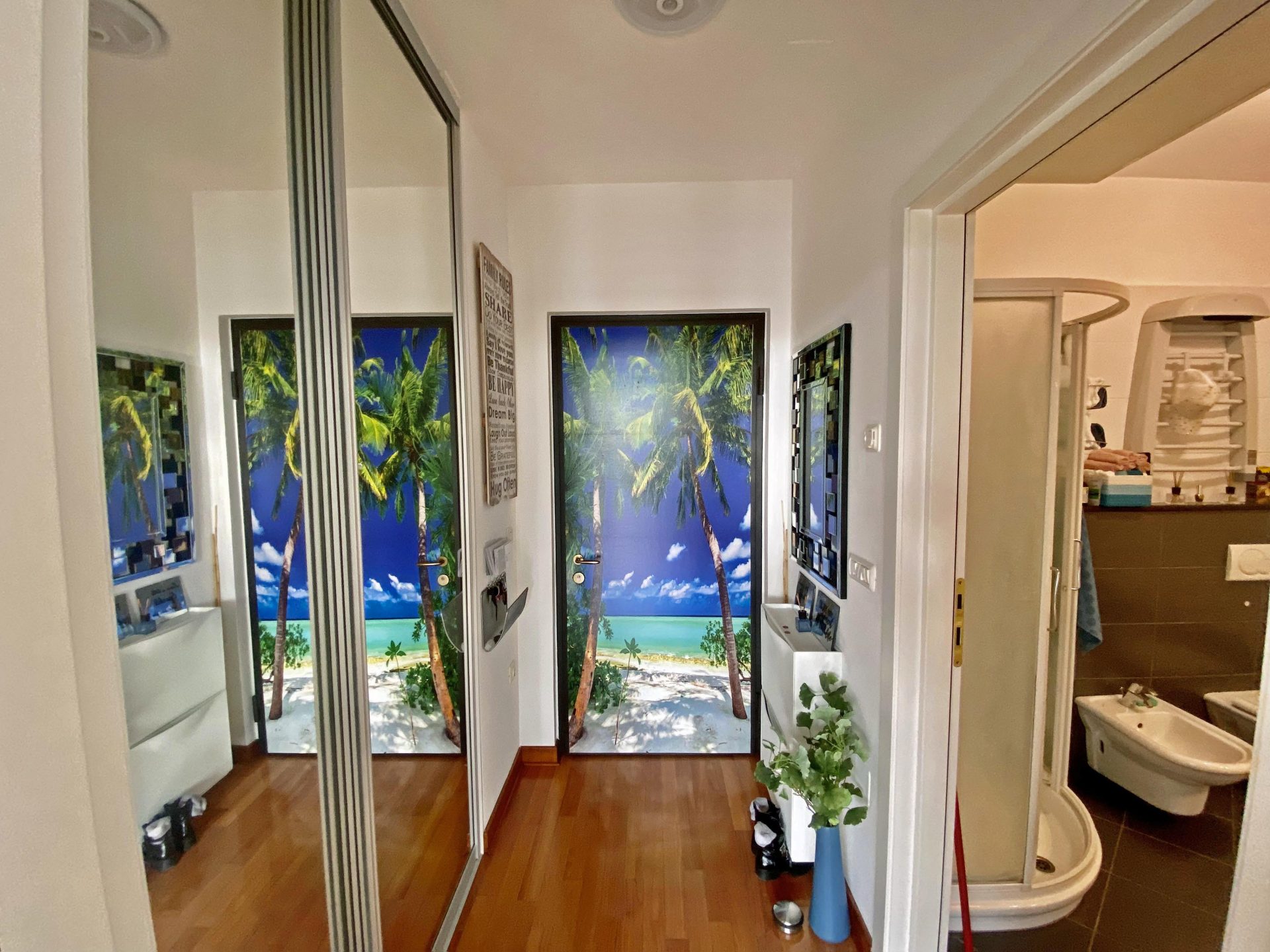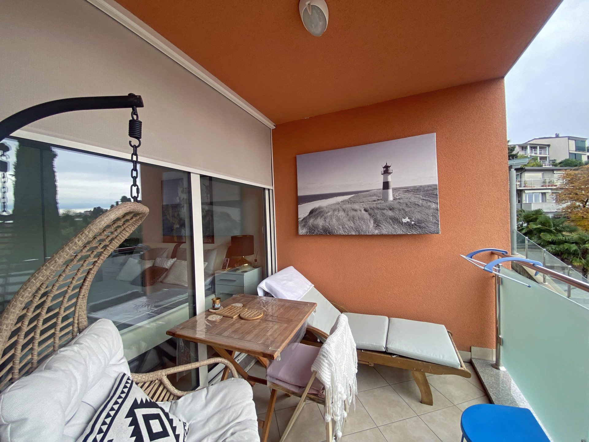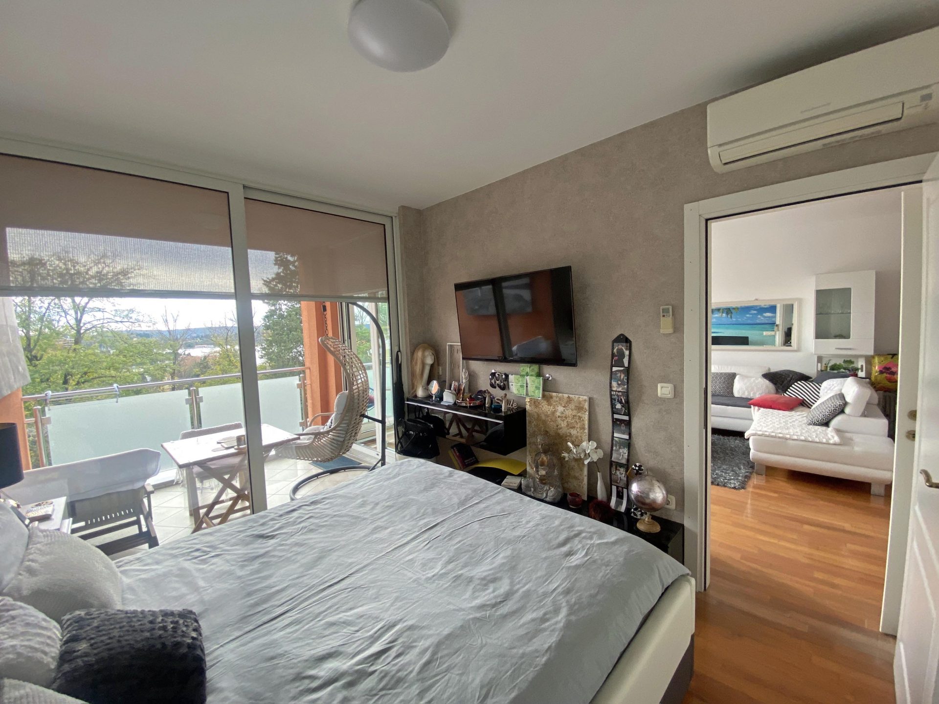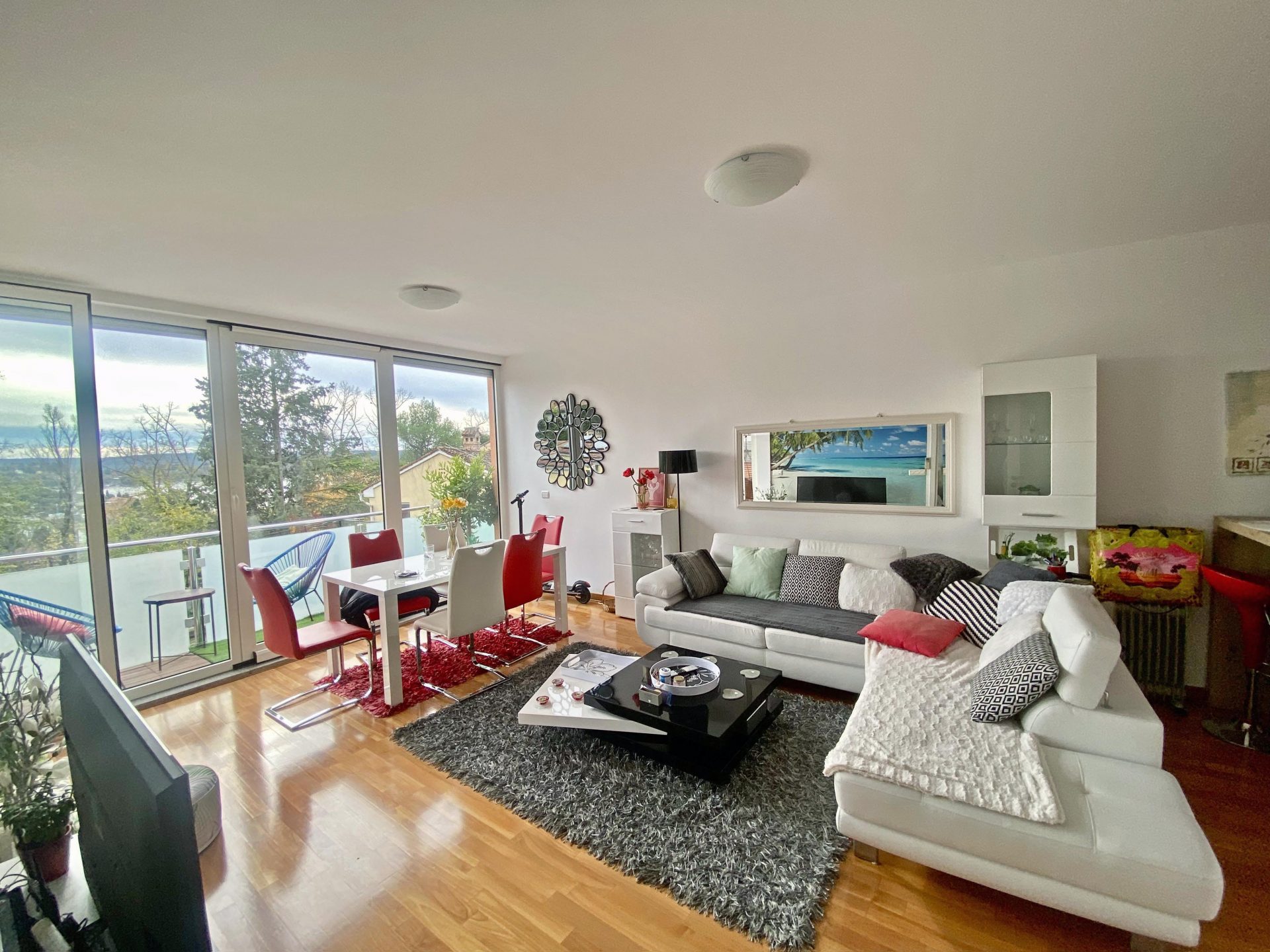 The apartment faces south.
