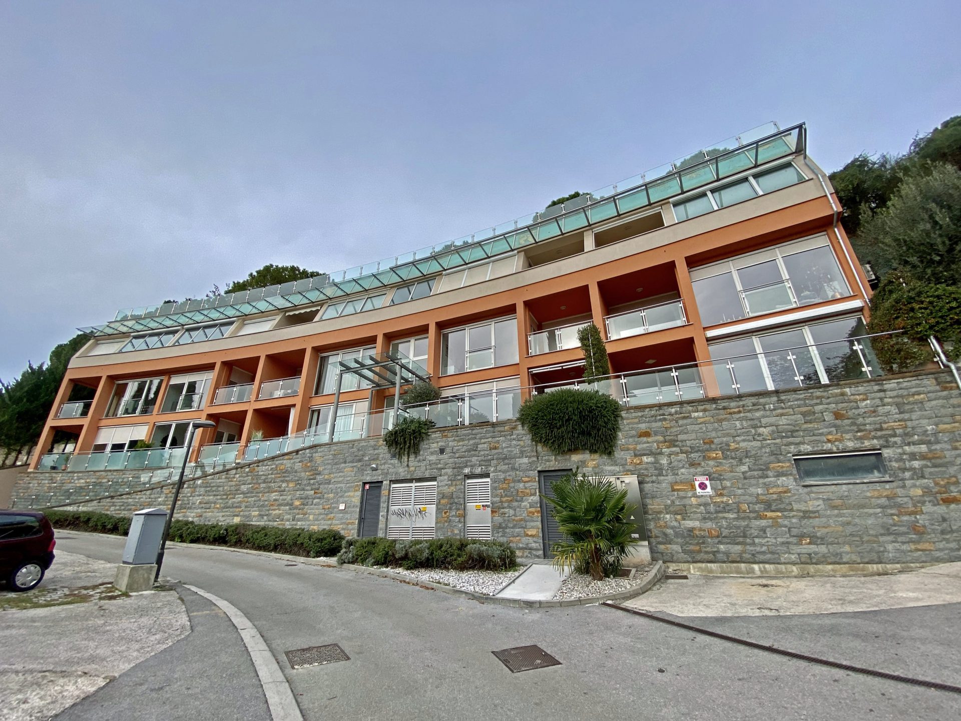 2 parking spaces on the top of the building, access from the main road.
