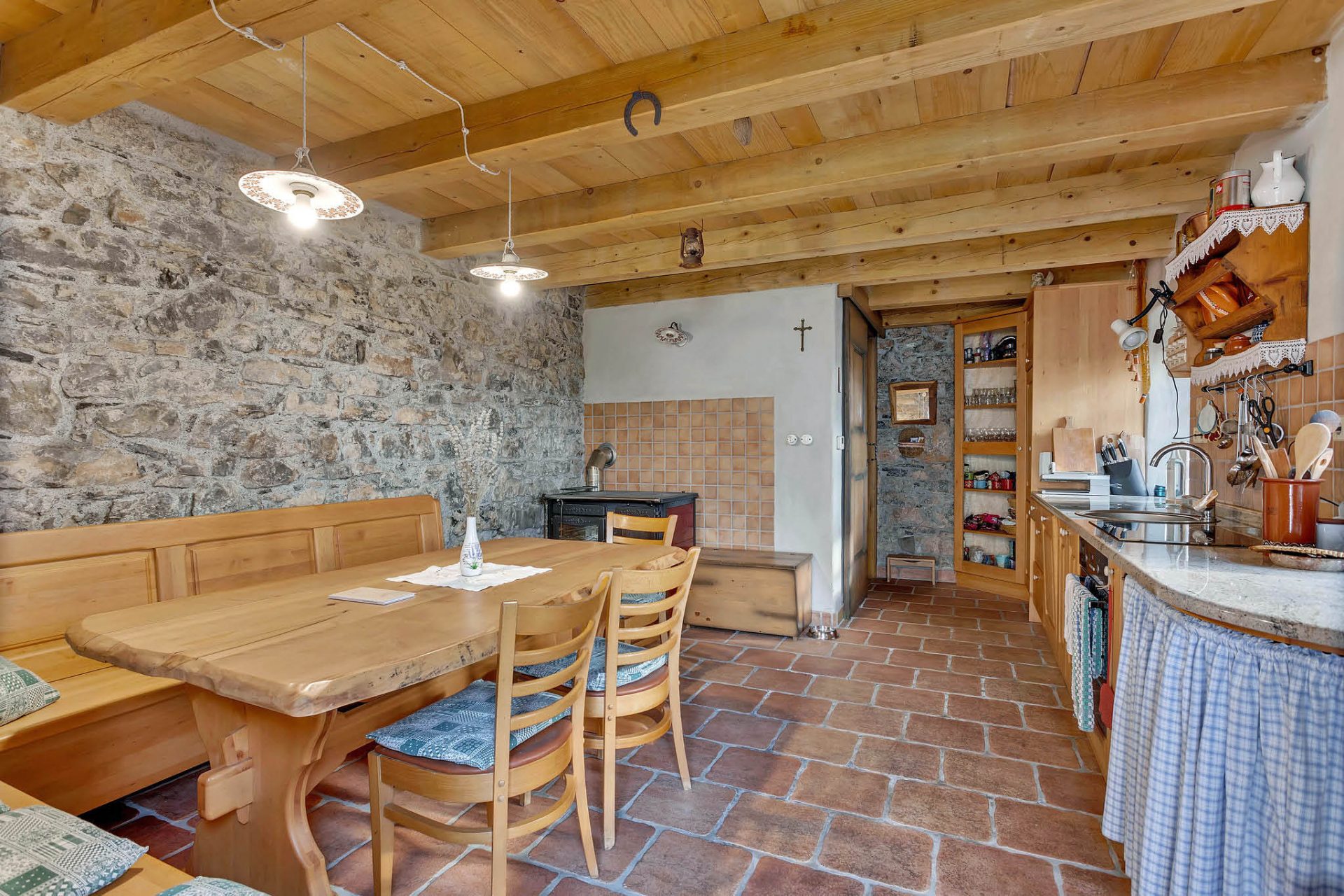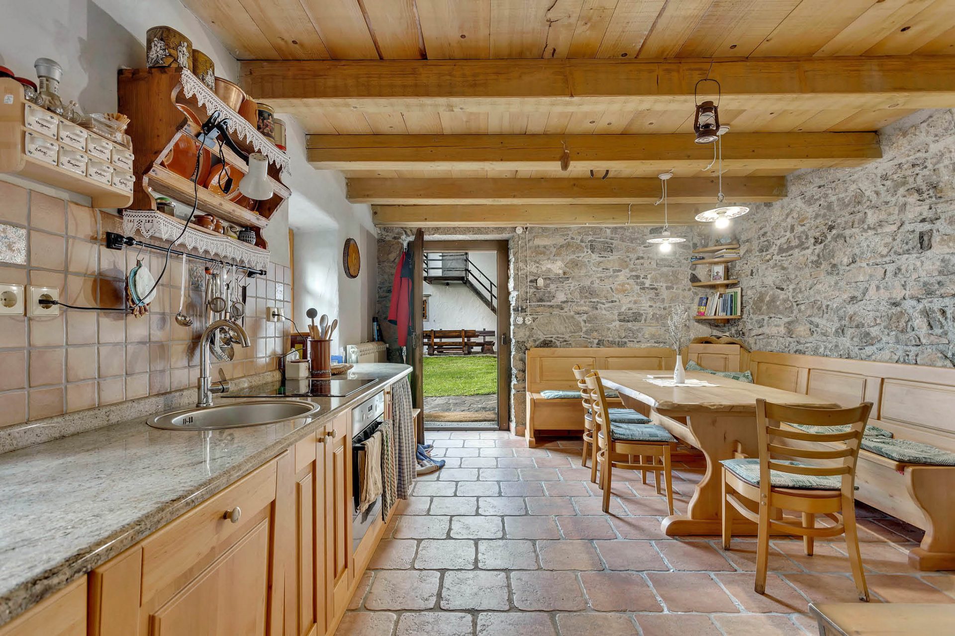 Ground floor consists of the main entrance, a large and classic kitchen, bright dining room area with typical Slovenian clay stove and two large windows, a master bedroom with clay stove and a modernized bathroom.