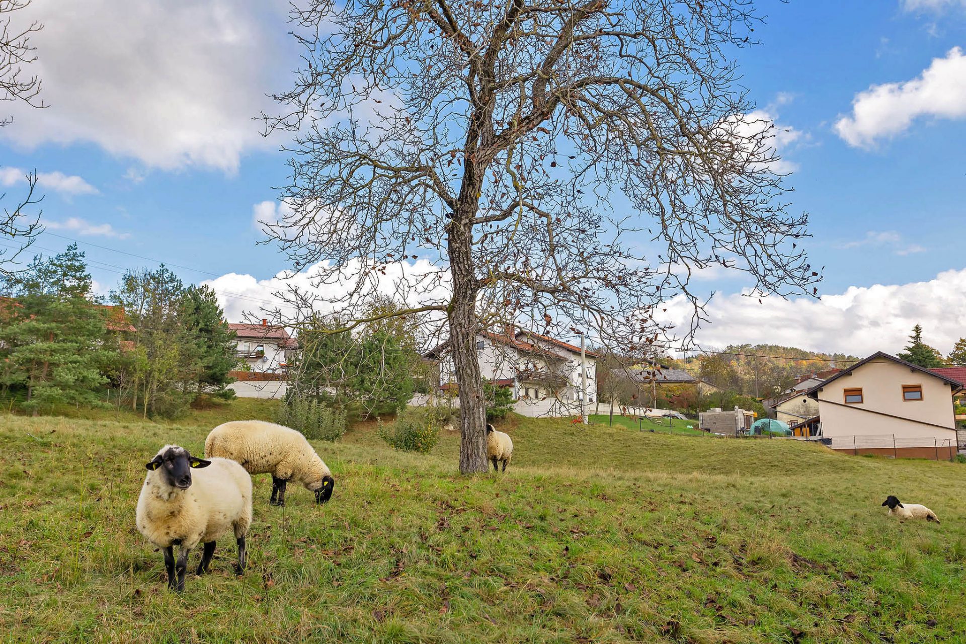 There is a nice large meadow outside, behind the houses. It is fenced, with some trees and a lovely view towards surrounding area.