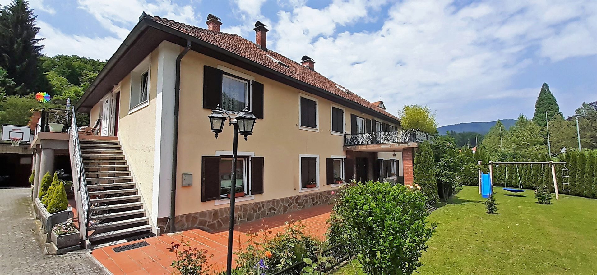 This large bourgeois house with a beautiful garden is located in a sunny location, in the city center and in close proximity to the renowned thermal spa, grand hotel, and medical center of Rogaška Slatina.