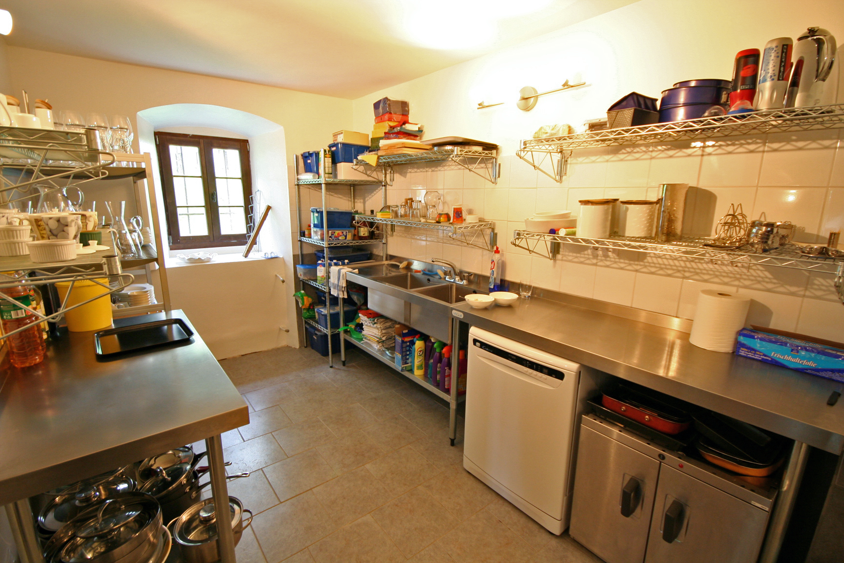 On the ground floor there is a seating area for guests. This room has a wonderful original carved wooden beam ceiling just one of many original features in this house. Also on this floor is a full commercial kitchen.